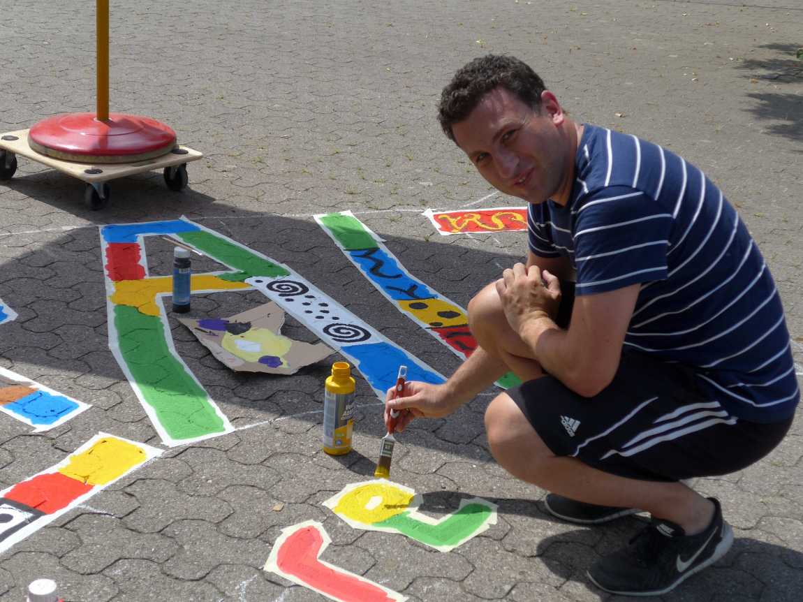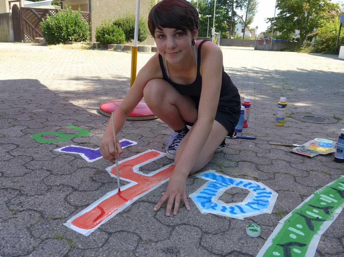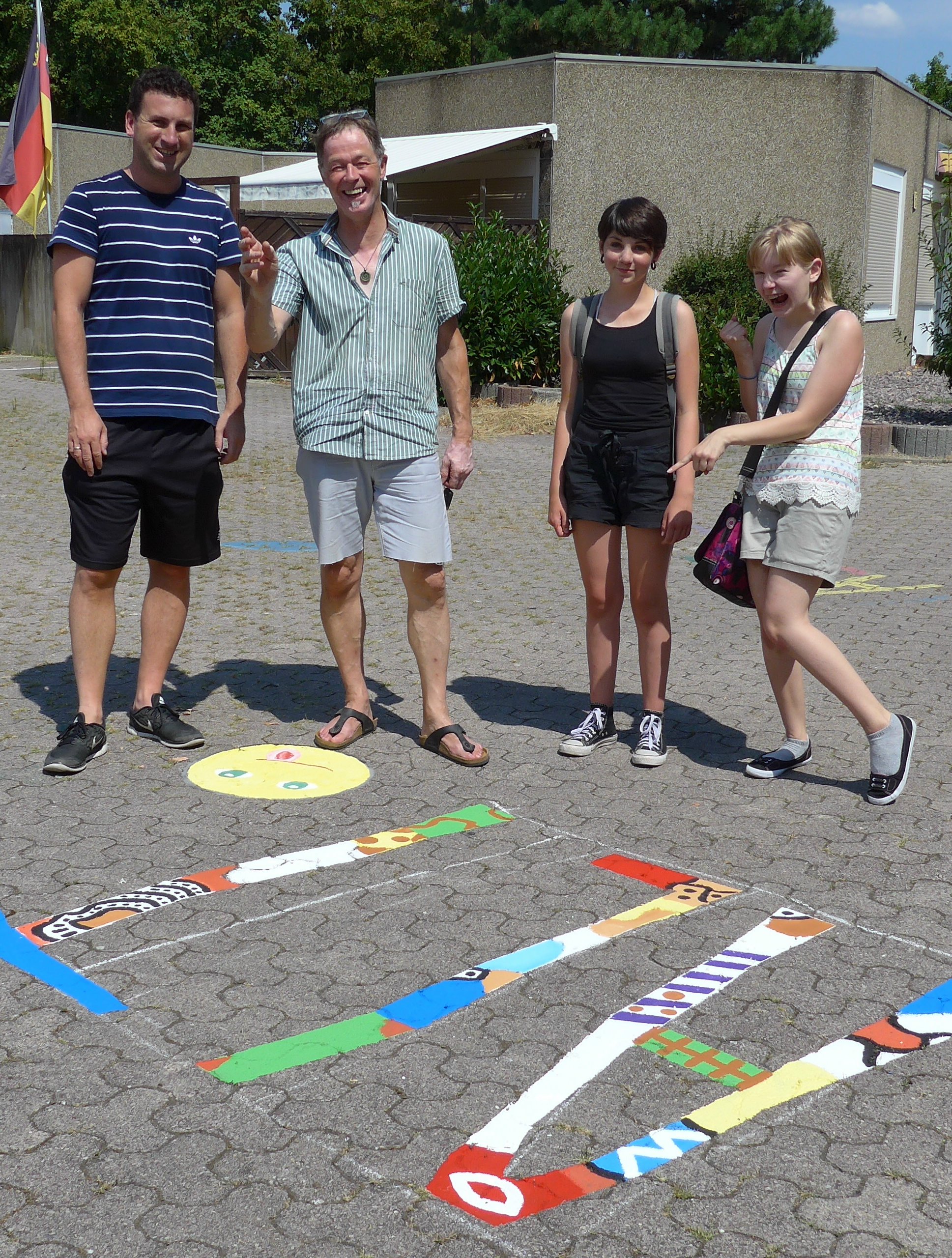 Das Schuljubiläum setzt bereits seine ersten Farbzeichen. Die weithin sichtbare Malaktion am Ende der Ferien zum anstehenden 25-jährigen Bestehen erfolgte an beiden Eingängen zur Schule. An der Aktion beteiligten sich Thomas Kirch, Alfons Otte, Hannah Gärtner und Evelin Weistand (beide 8a).