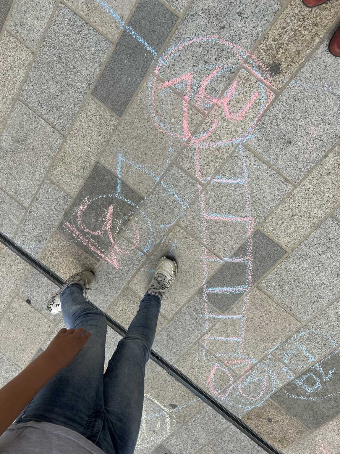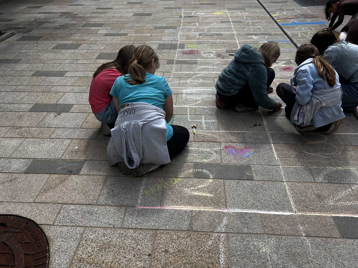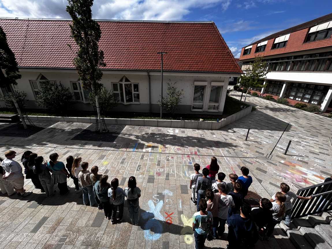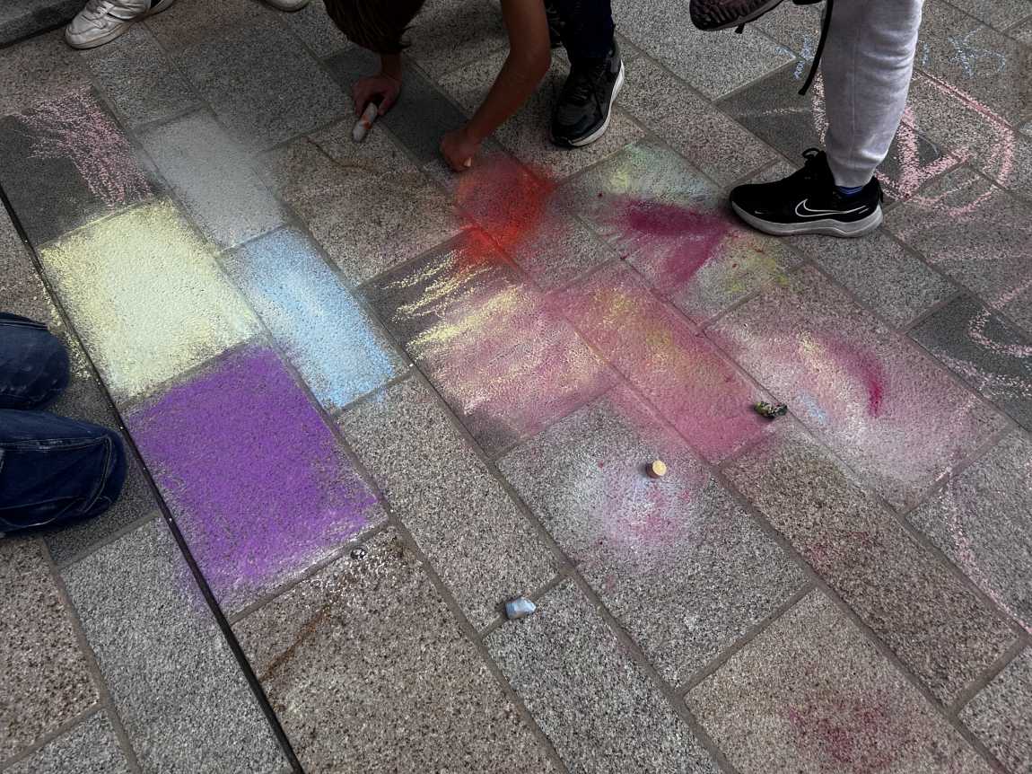 Die Schüler hatten die Aufgabe zwei lebensgroße Spielfelder für das morgige Fest aufzuzeichnen und zu gestalten.