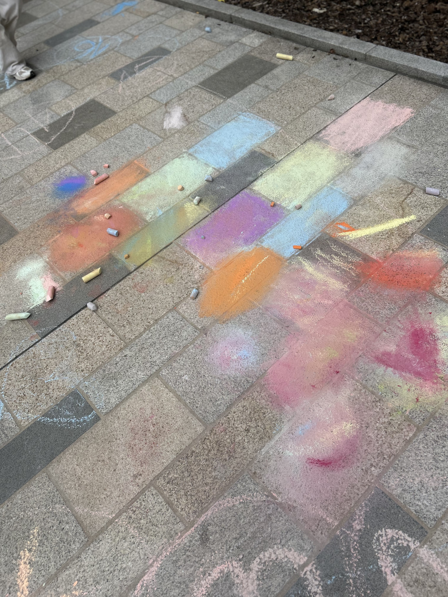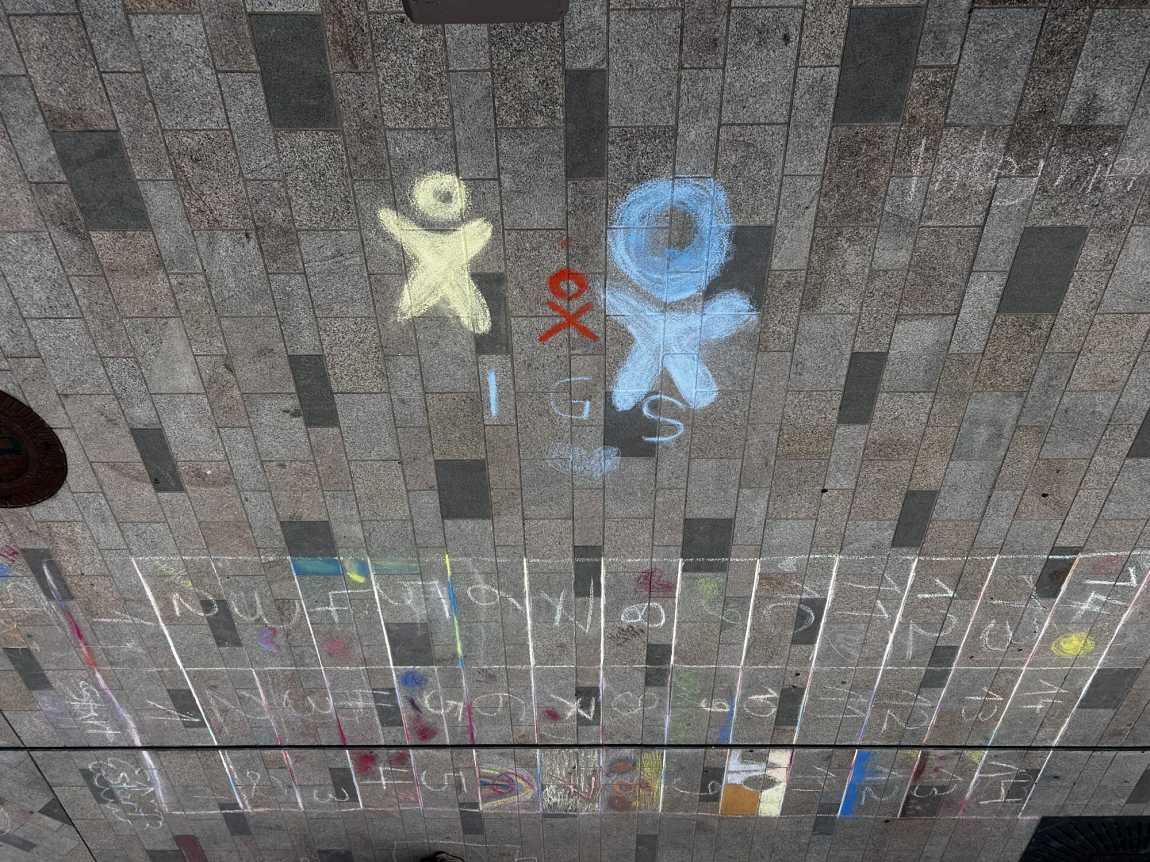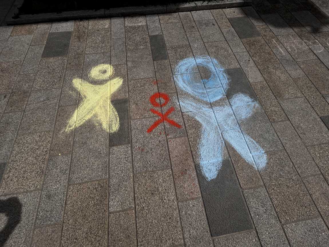 Die Schüler hatten die Aufgabe zwei lebensgroße Spielfelder für das morgige Fest aufzuzeichnen und zu gestalten.
