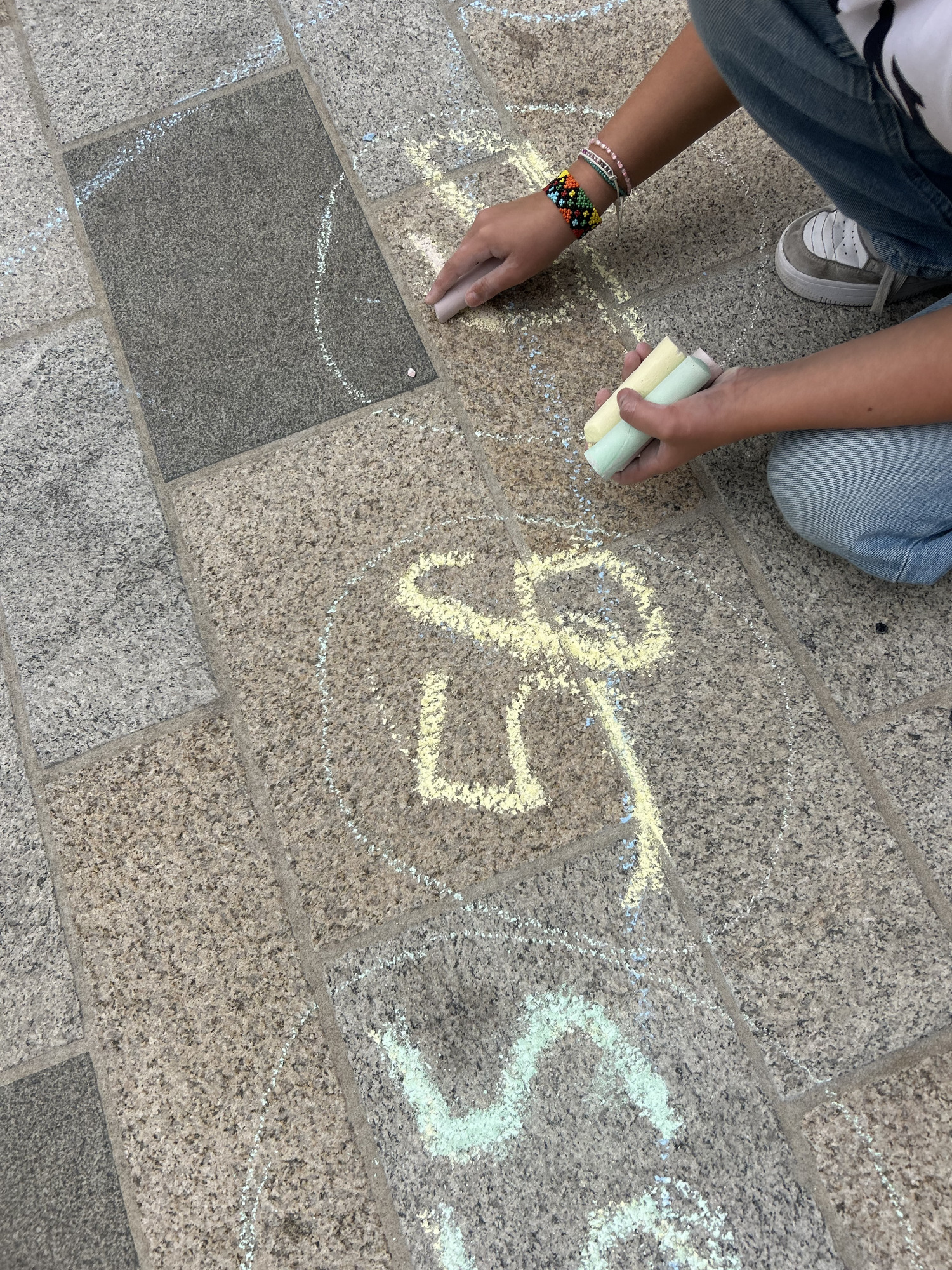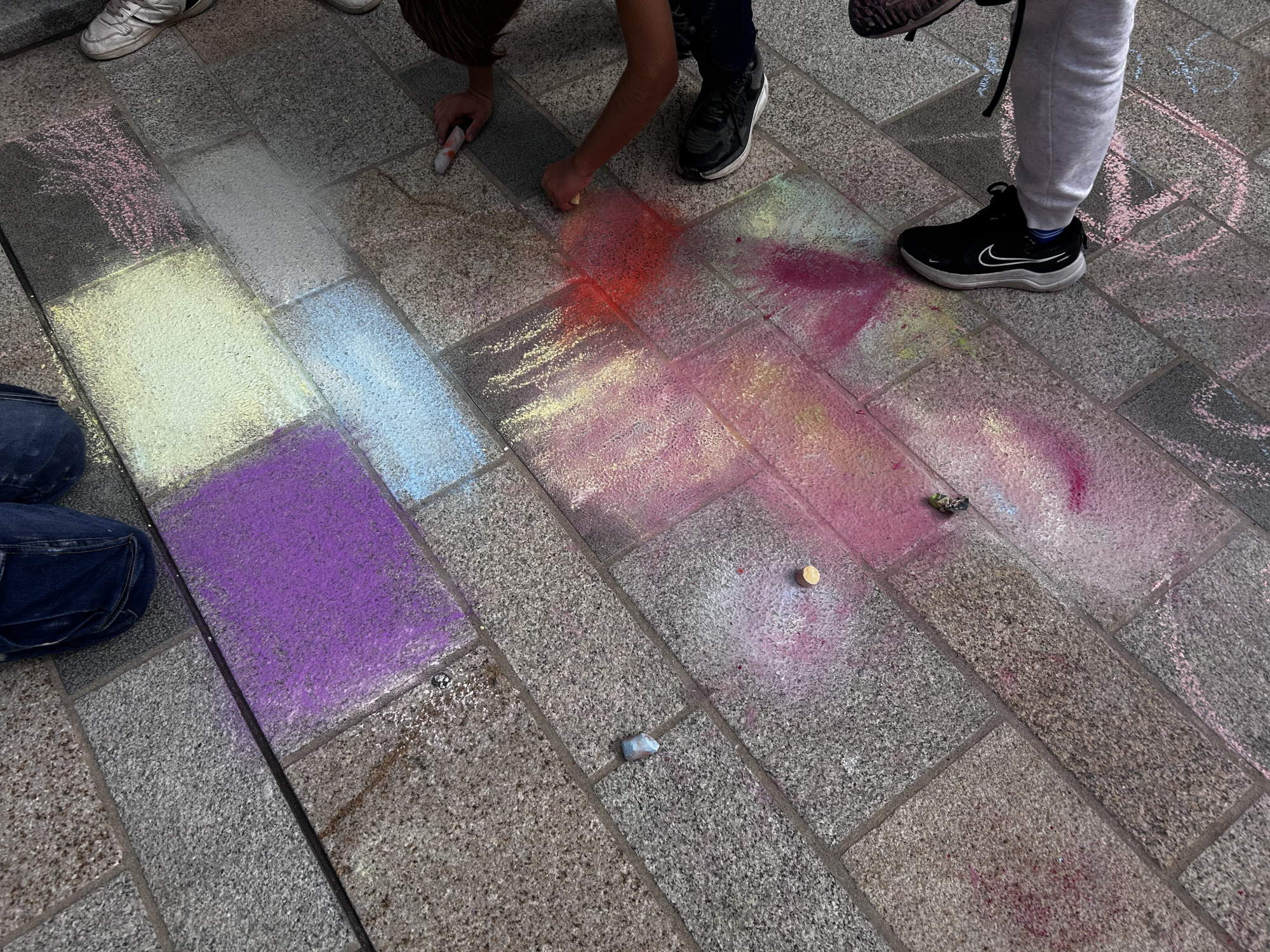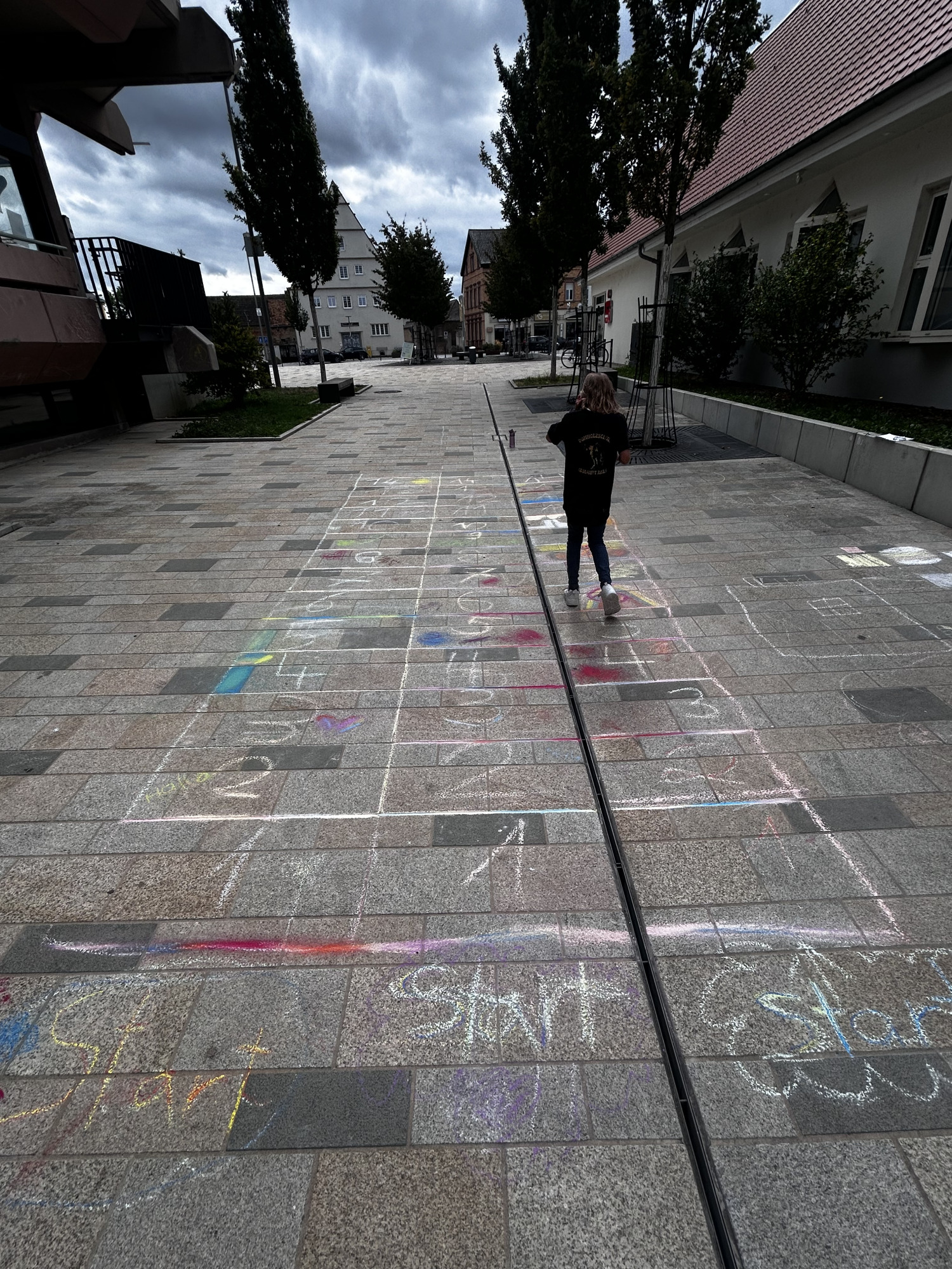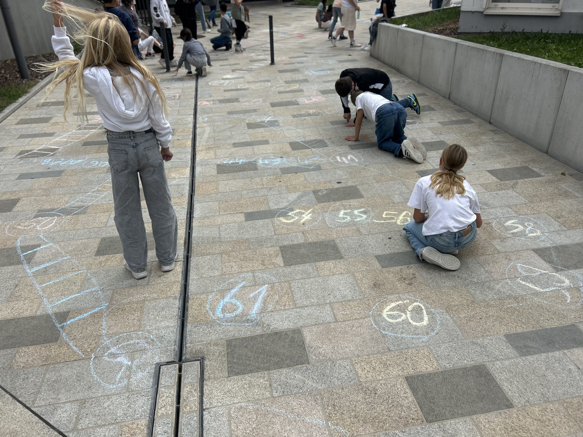 Die Schüler hatten die Aufgabe zwei lebensgroße Spielfelder für das morgige Fest aufzuzeichnen und zu gestalten.