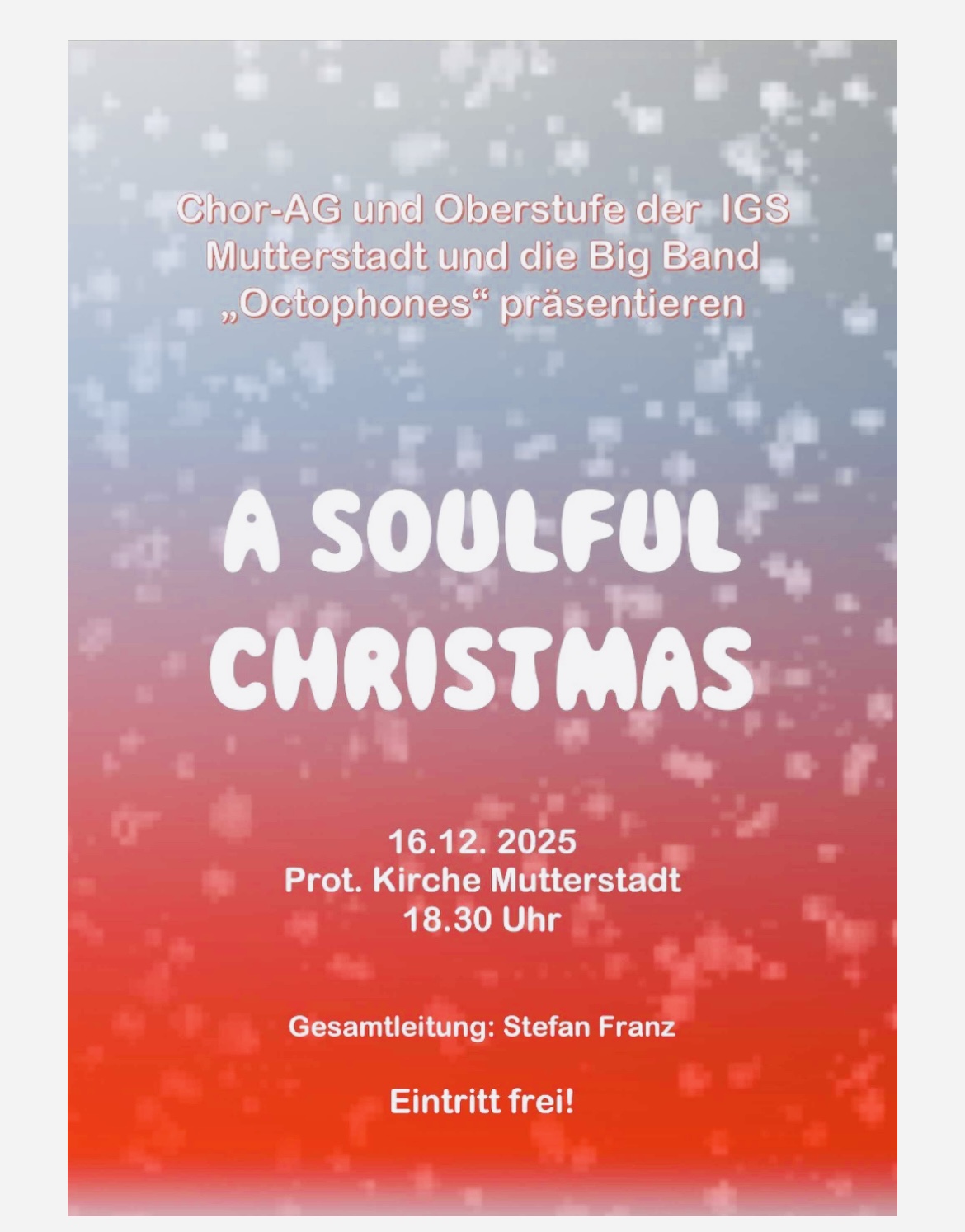 Ein herzlicher Dank gilt auch allen Mitwirkenden für diese wunderschöne Vorstellung an einem Dienstagabend, die vielen Zuhörerinnen und Zuhörern noch lange in Erinnerung bleiben wird. A Soulful Christmas hat einmal mehr gezeigt, wie verbindend Musik sein kann – besonders in der Vorweihnachtszeit.