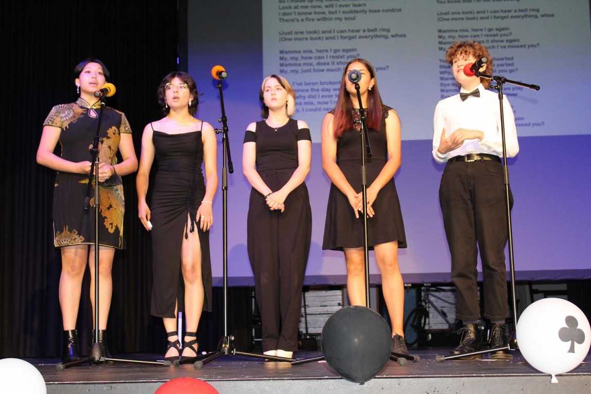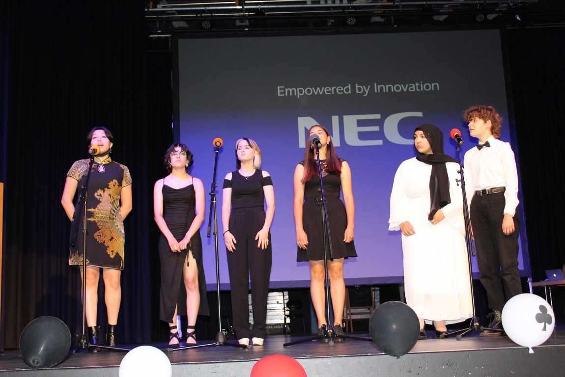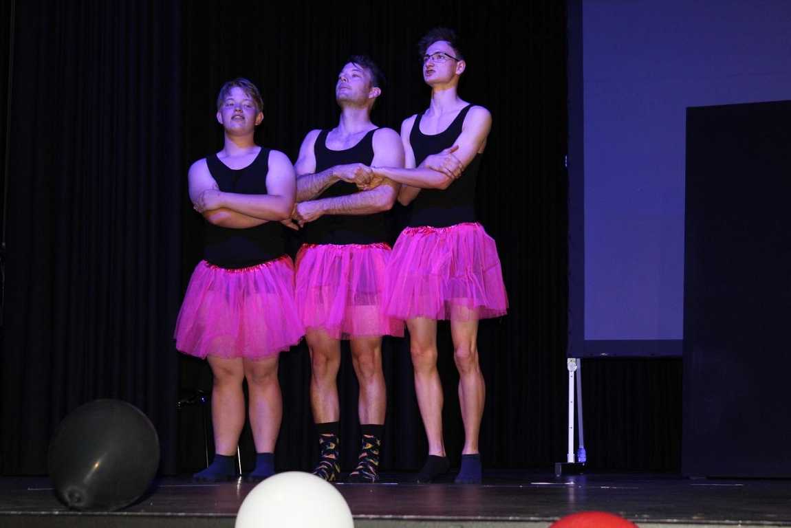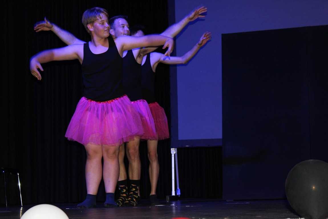 Das „Schule doch nicht so scheiße ist“ brachten die Schülerinnen der Klasse 9d in dem gleichnamigen Lied zum Ausdruck. Lena Müller begeisterte mit ihrem Sololied: „I lived“ und das nicht wegzudenkende Männerballett der 10er Schüler wurde tatkräftig durch Herrn Crossett unterstützt.