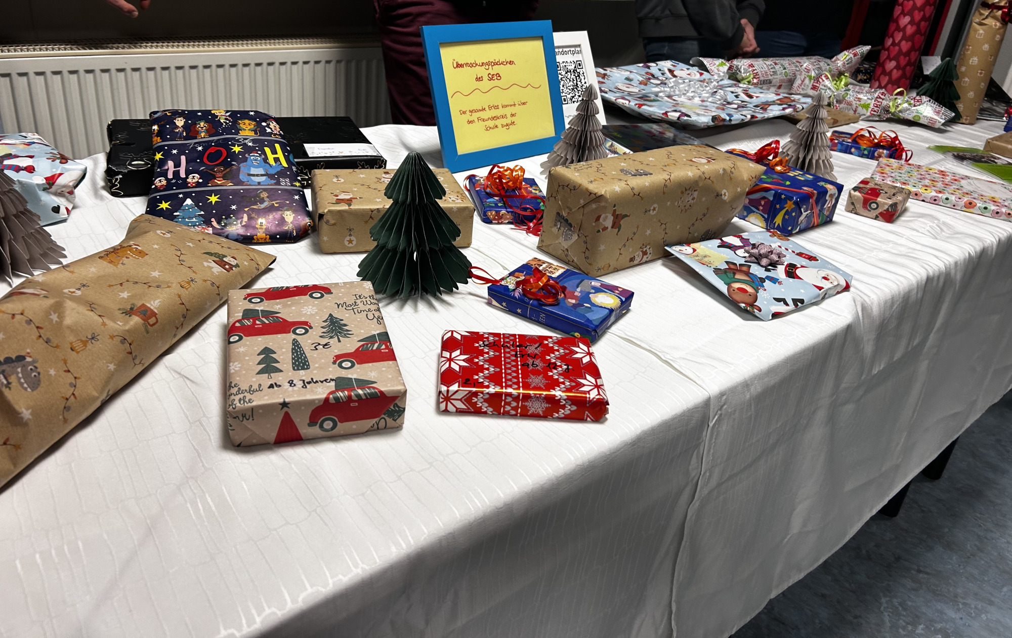 Für zusätzliche Unterstützung sorgten unser sehr agiler SSD (Schulsanitätsdienst), die Feuerwehr des Ortes, der SEB, die Schulbibliothek, sowie unser BioDieter, die Fairtraide Gemeinde Mutterstadt und die Lions Freunde Ludwigshafen, die den diesjährigen Weihnachtskalender anboten, dessen Erlös den Lions und dem Freundeskreis zukam.