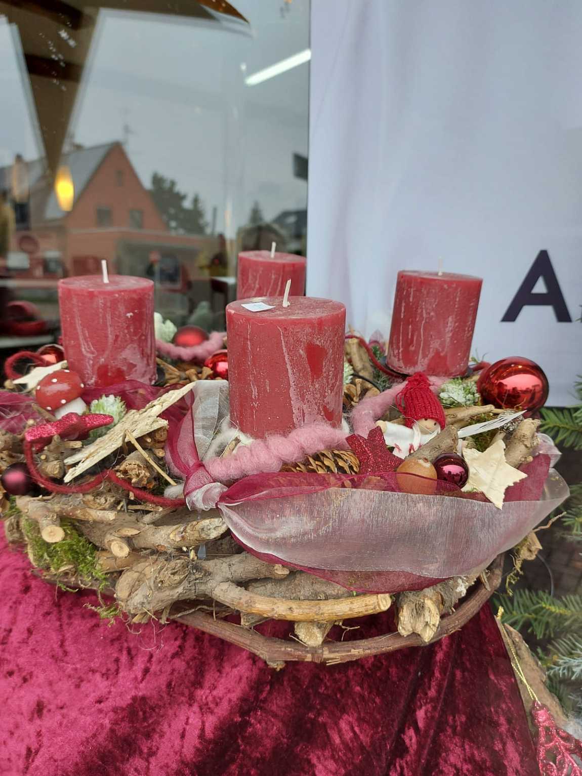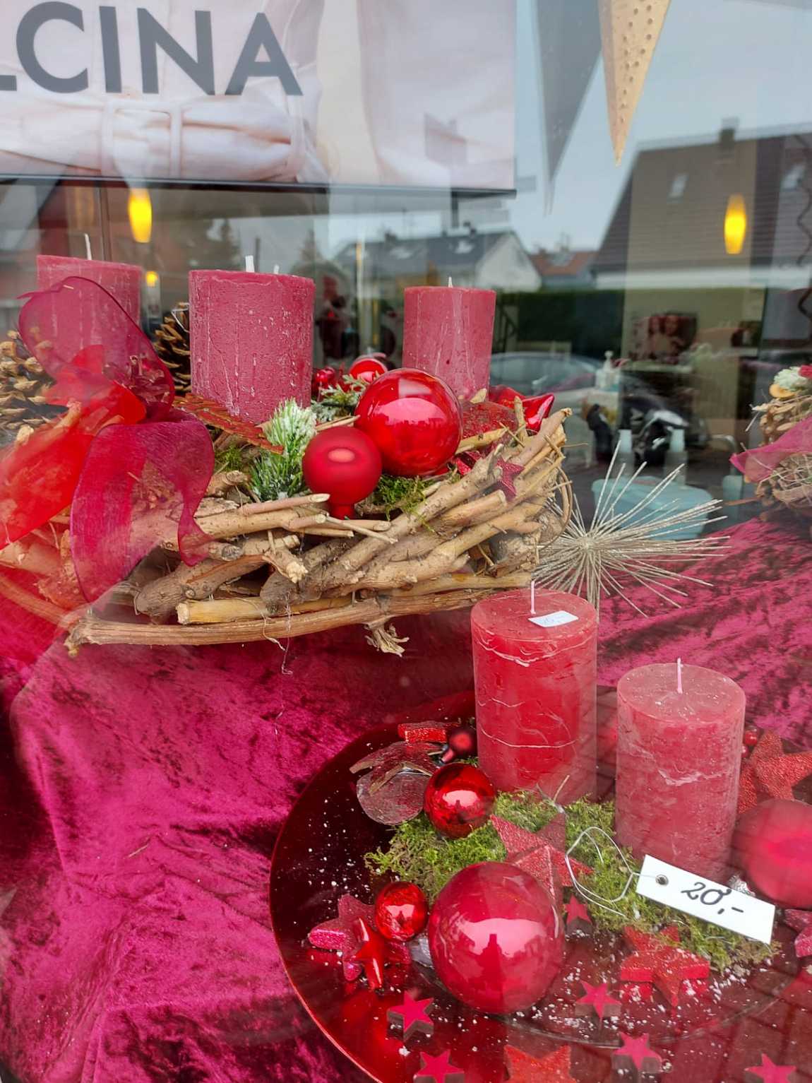 Sabrina Nigri hat freundlicher Weise ihr Schaufenster ihres Friseurgeschäftes „Stylingecke“ in der Herdersraße 19 in Limburgerhof zur Verfügung gestellt, um die Gestecke zu präsentieren. Dort können sie auch erworben werden. Dienstag, Mittwoch, Freitag von 8-18 Uhr, Donnerstag von 8-20 Uhr und Samstag von 8-13 Uhr.