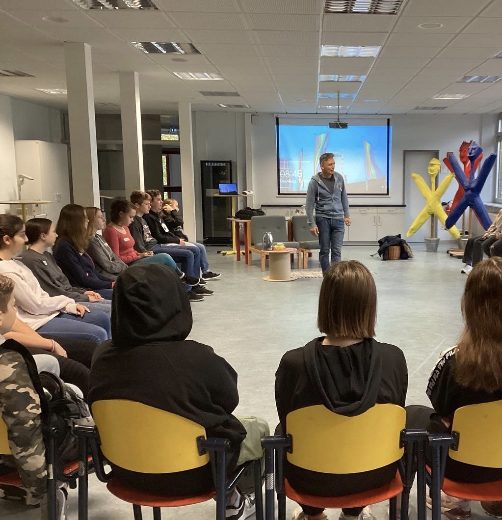 „…dann hat er mit uns darüber geredet, wie man am Besten herausfindet, ob das was ein Influencer sagt, wahr oder falsch ist, weil es den Leuten auf TikTok usw. häufig nur darum geht, Likes zu bekommen. Ob die Informationen richtig sind, kann man z.B. daran erkennen, dass die Informationen, die stimmen, häufig noch in allen möglichen Radiosendern, Videos oder im Fernsehen kommen. Dass er darüber gesprochen hat fand ich super, weil soviele fake news in die Öffentlichkeit kommen können.“ Lena Decker, 8a