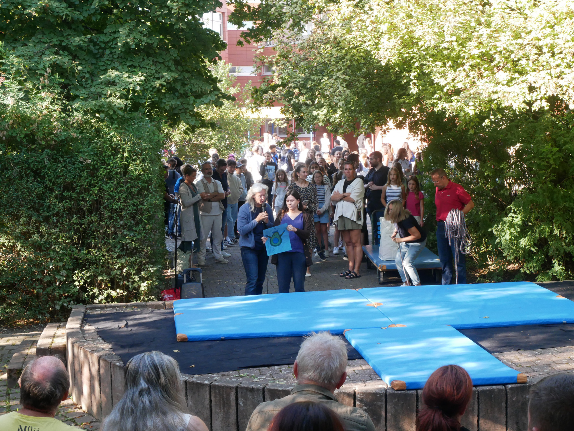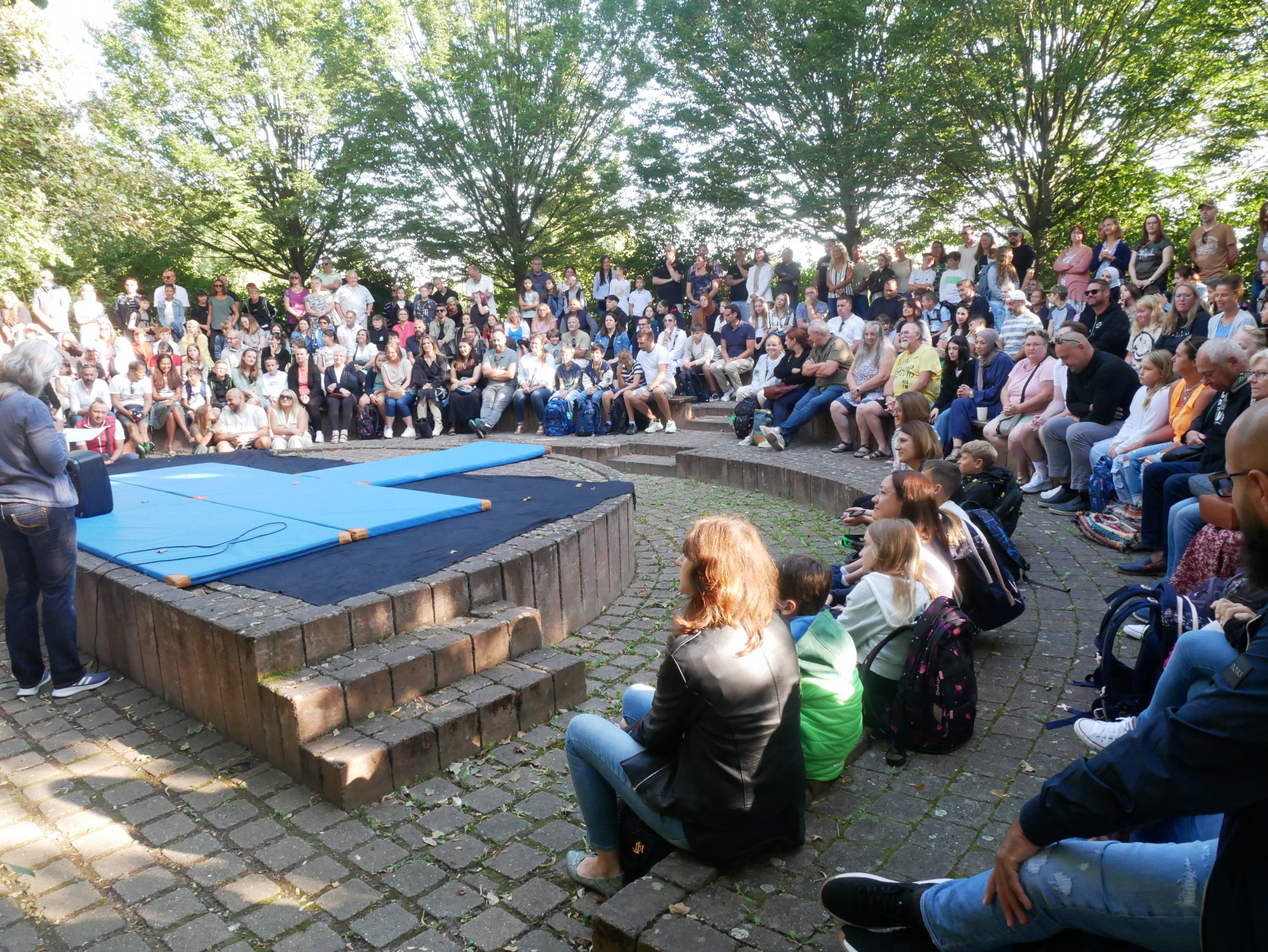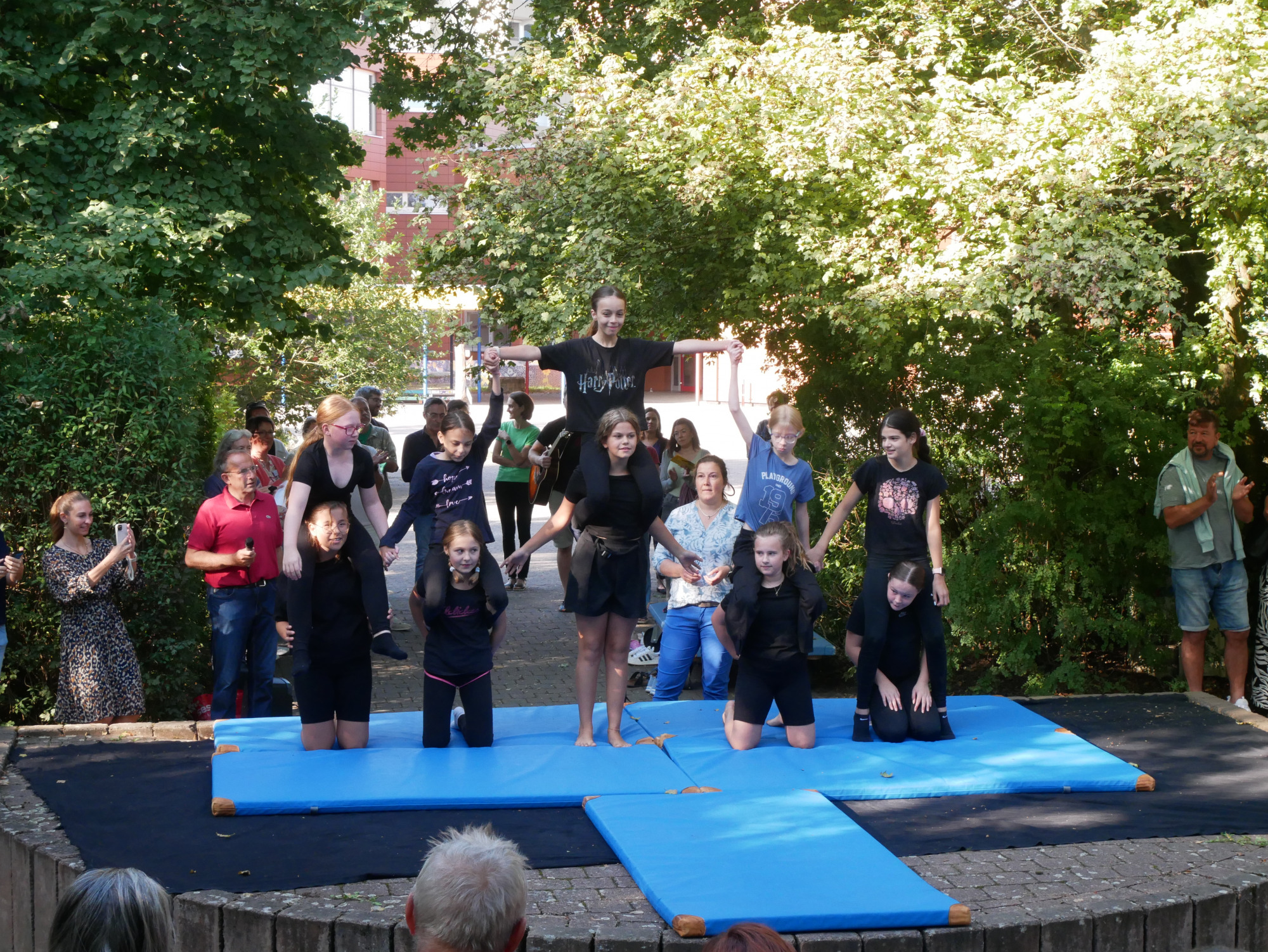 Herr Pellkofer und Frau Bub begrüßten die Schüler und ihre Familien. Durch das Programm leitete Frau Guntrum als kommissarische Stufenleiterin für den Jahrgang 5. So konnten sich nicht nur der Schulelternbeirat, die Schulsozialarbeiterin sowie der SEB vorstellen, sondern die Zuschauer bekamen auch noch ein beeindruckendes Programm der Akrobatik-Gruppe aus dem 6. Jahrgang dargeboten!