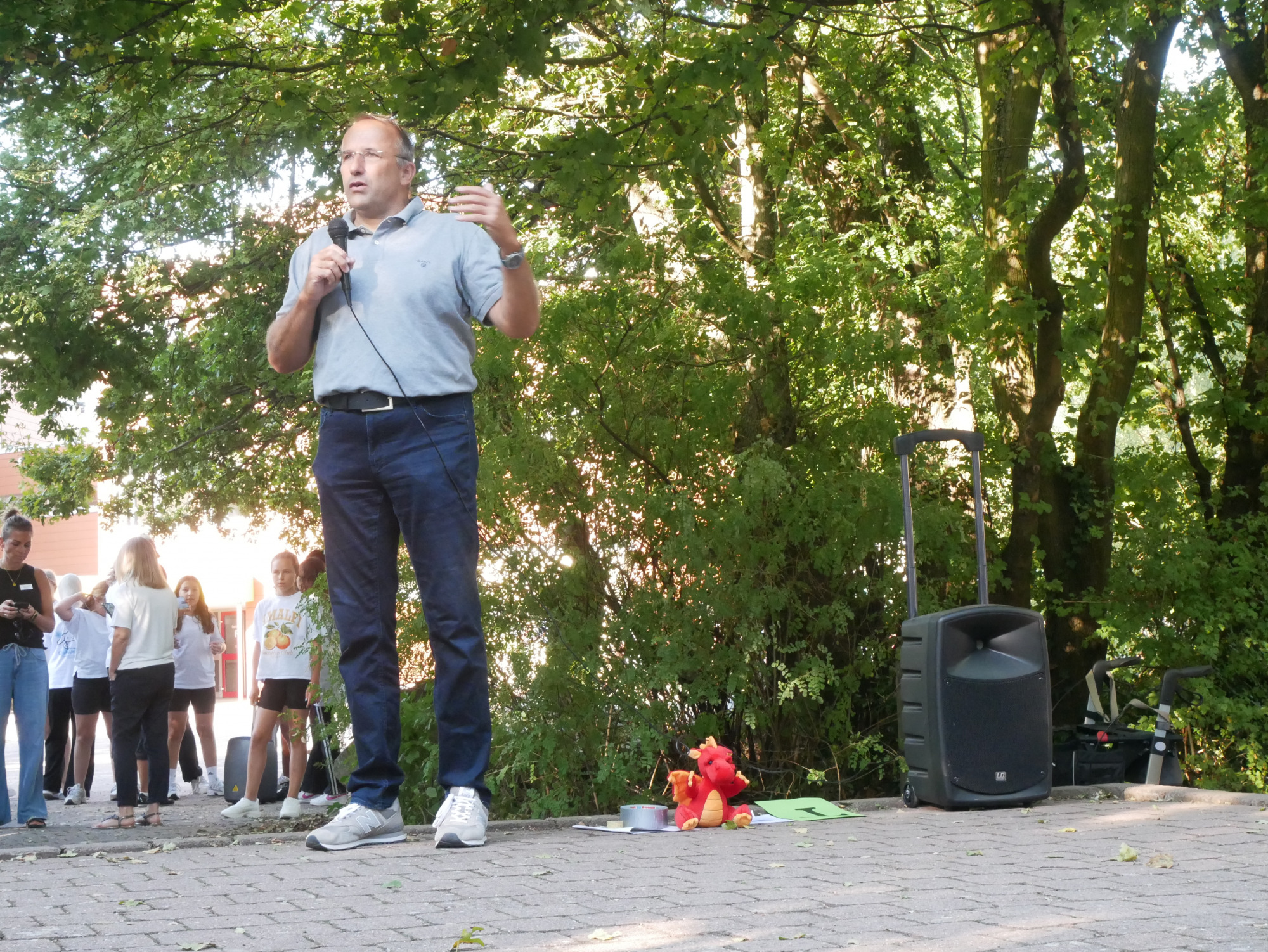 Daniel Drache mit seinem Team und 112 Schülern ist heute in Haus A eingezogen.