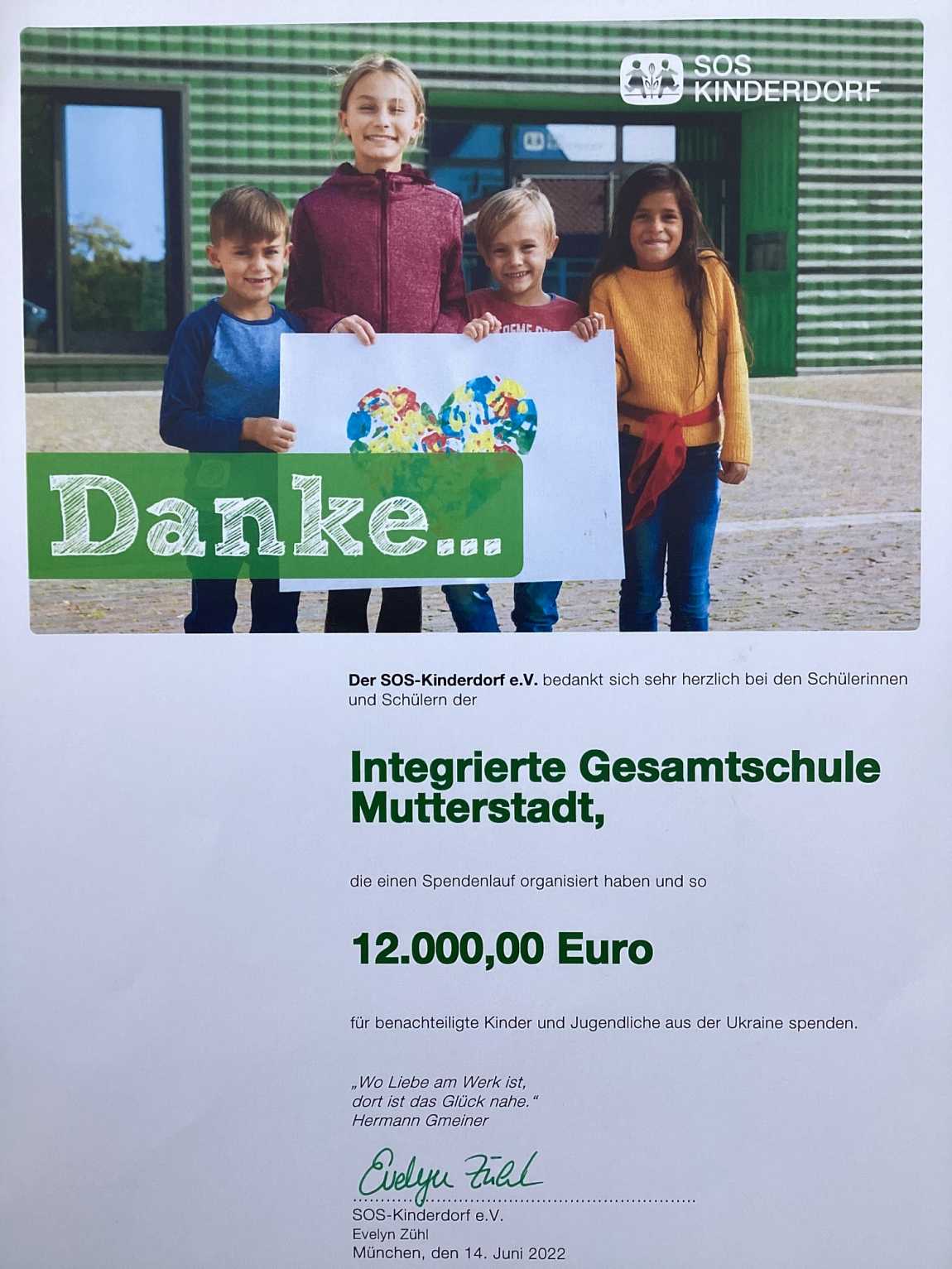 Die Rekordsumme von über 16.000 Euro brachte der Spendenlauf ein, den die IGS über mehrere Tage vor den Osterferien austrug. Der Erlös aus dem Rundenlauf erging mit 12.000 Euro an das SOS Kinderdorf Pfalz und mit 4000 Euro an das DRK.