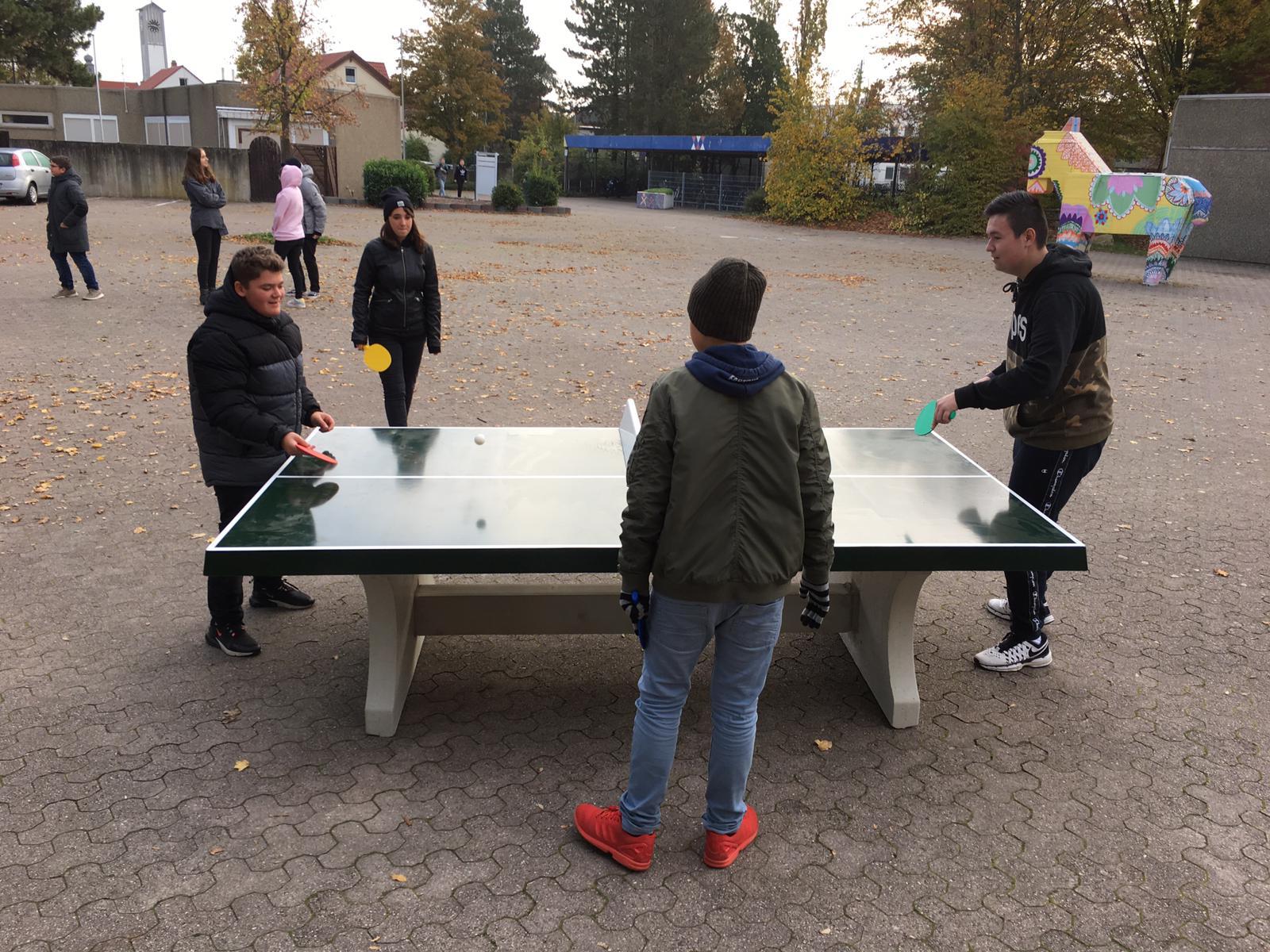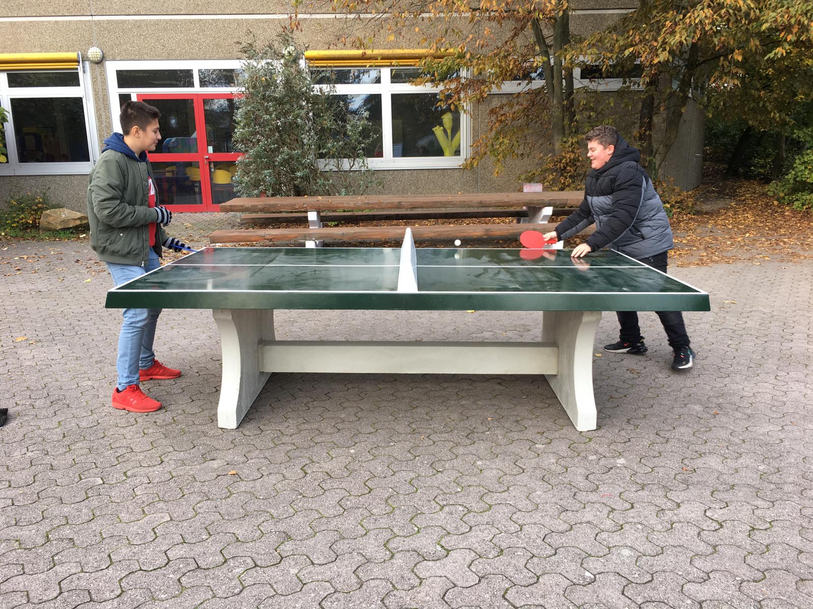 Die Schulgemeinschaft kann sich ab heute über zwei neue Tischtennsiplatten auf dem vorderen Schulhof freuen. Finanziert wurden diese vom Freundeskreis und der Kreisverwaltung.