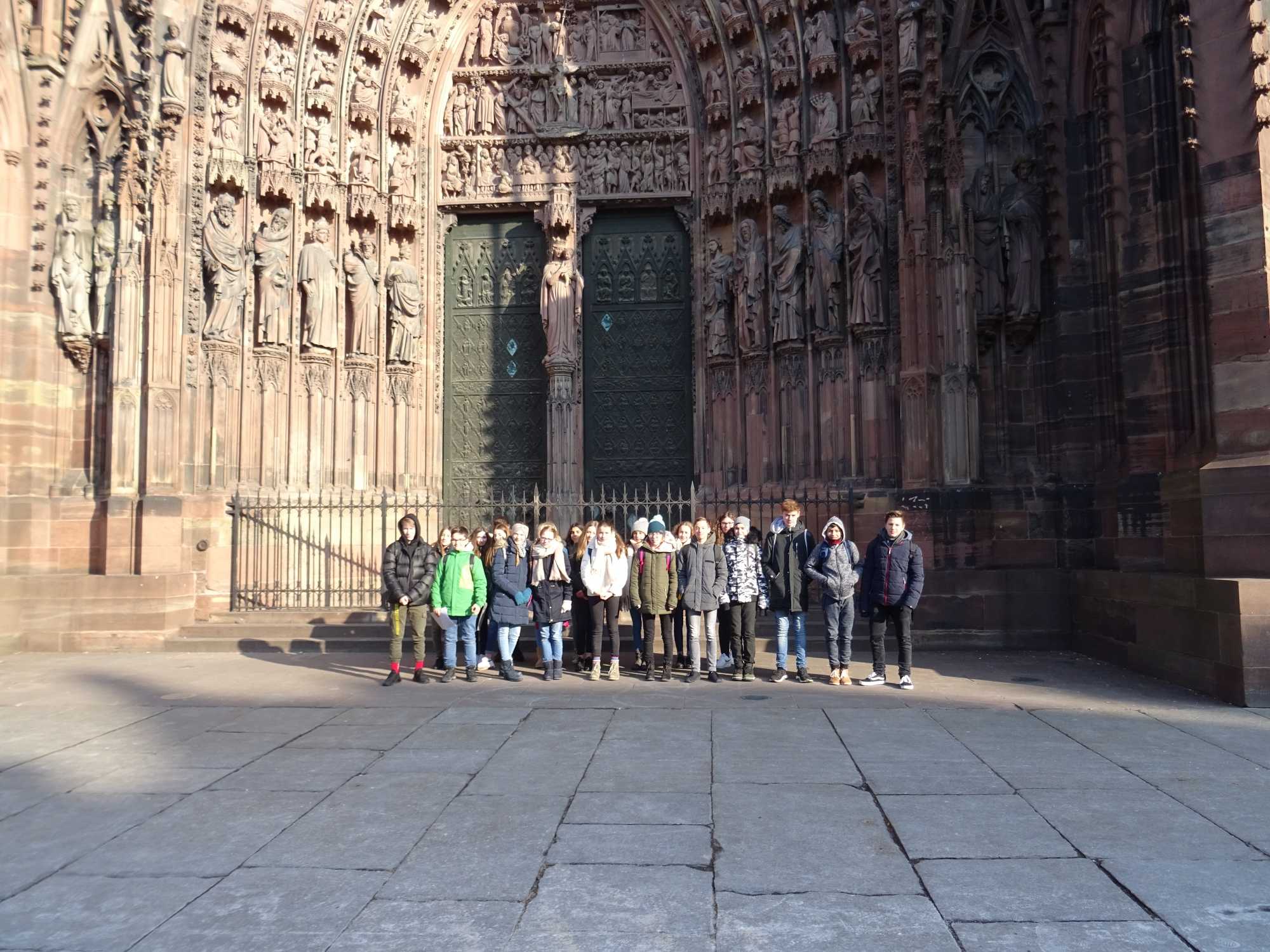 21 janvier 2019, 8 heures 38: Unser Zug startete früh am Morgen in Limburgerhof – wir Französisch-WPF-Schüler/-innen der 7. Klasse fuhren mit Frau Capalbo und Frau Opitz nach Straßburg. In Neustadt stiegen wir dann in den Zug nach Weißenburg (Wissembourg) um. Von Weißenburg ging es weiter zum Hauptbahnhof von Straßburg (Strasbourg).