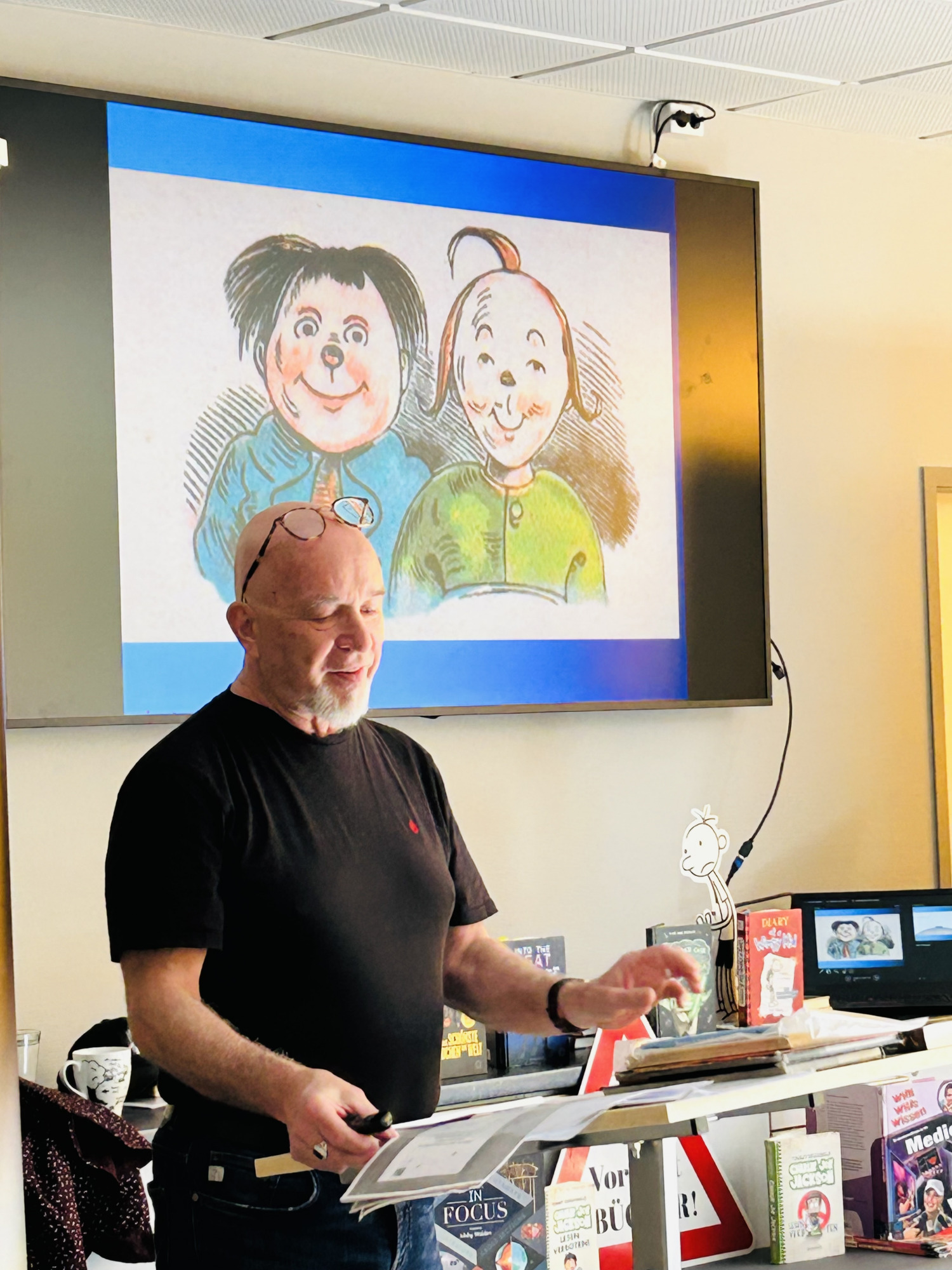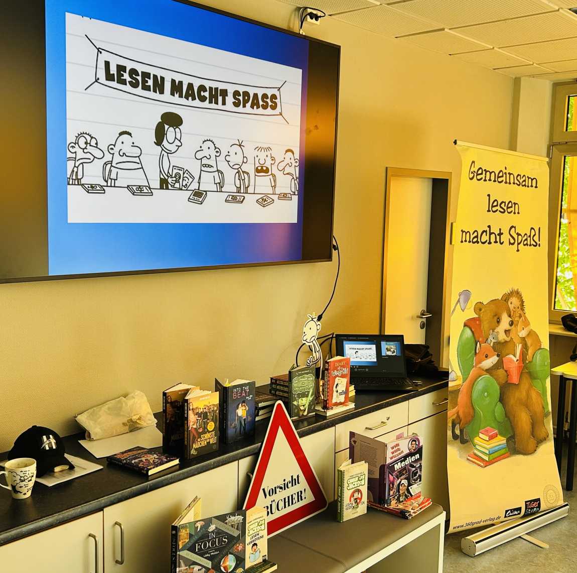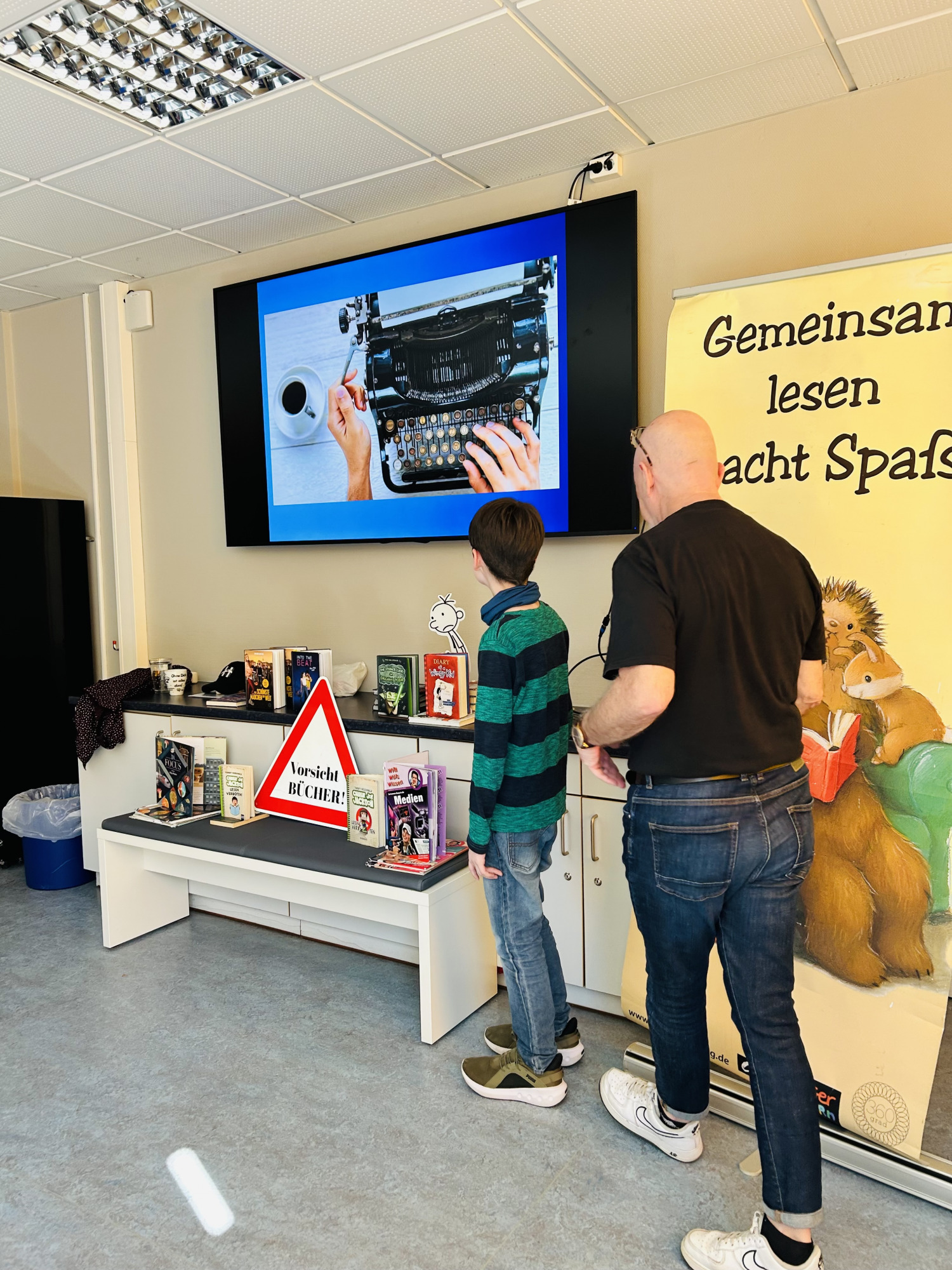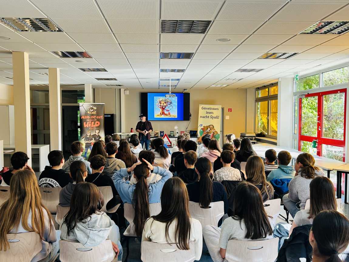 Außerdem erklärte er, wie Bücher entstehen, wie Autorinnen und Autoren arbeiten und wie aus Büchern Filme werden können. Mit vielen Bildern, spannenden Beispielen und humorvollen Geschichten begeisterte er alle Zuhörerinnen und Zuhörer.