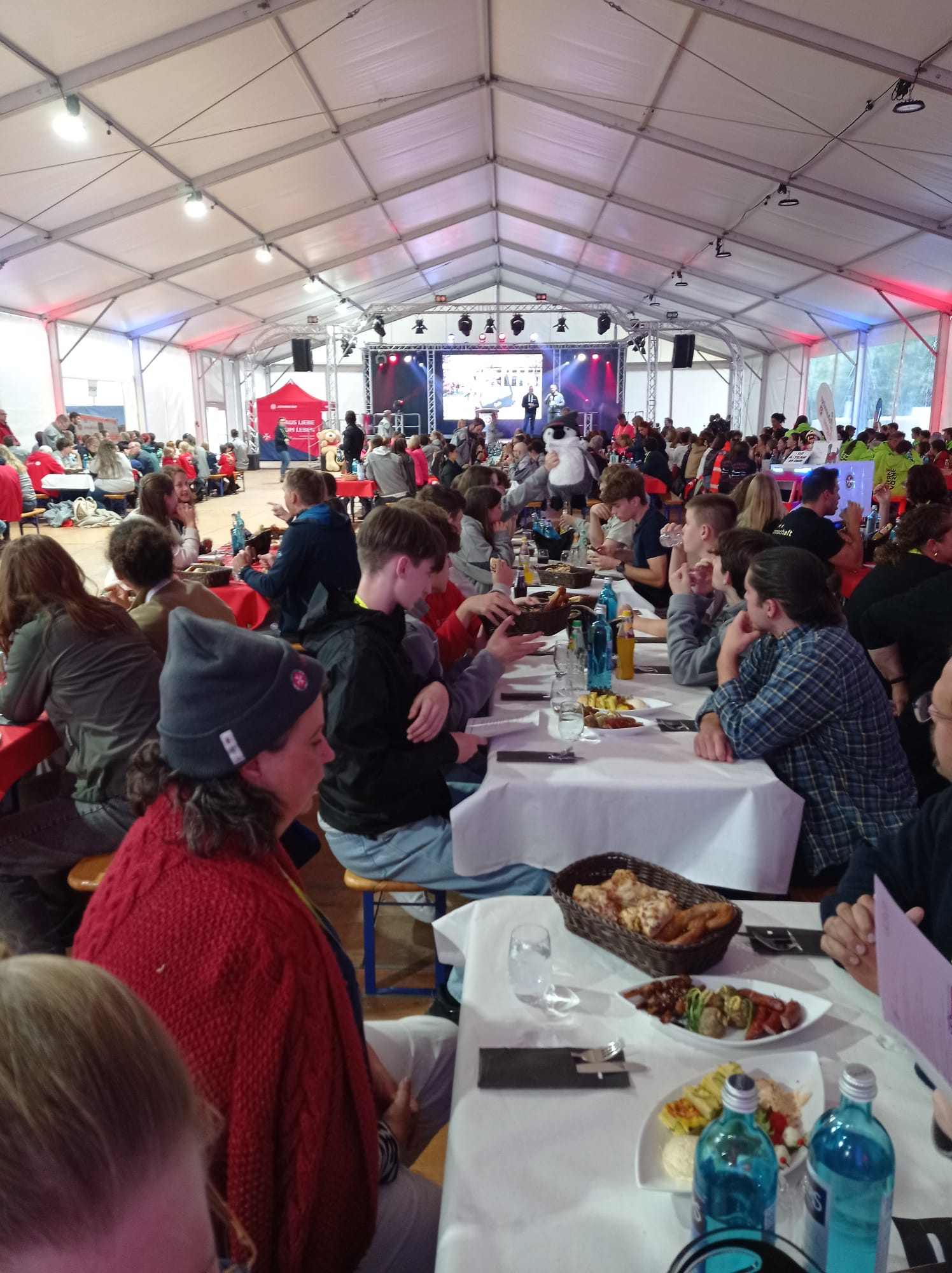 Die Unterkunft in einer nahegelegenen Schule, Vollverpflegung im großen Festzelt und Anreise waren für alle Teilnehmer frei!