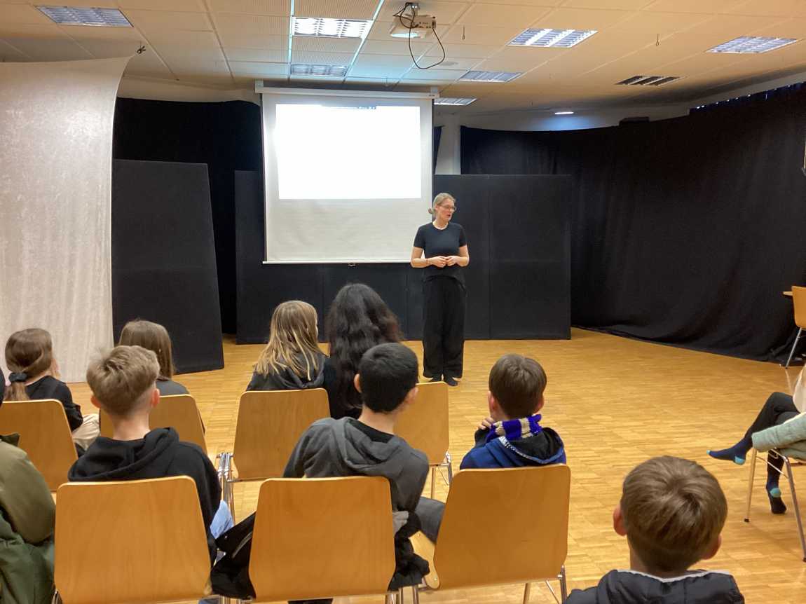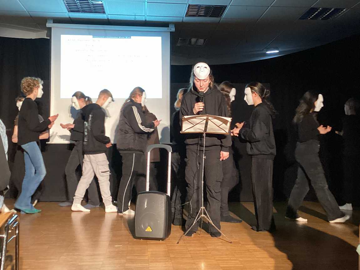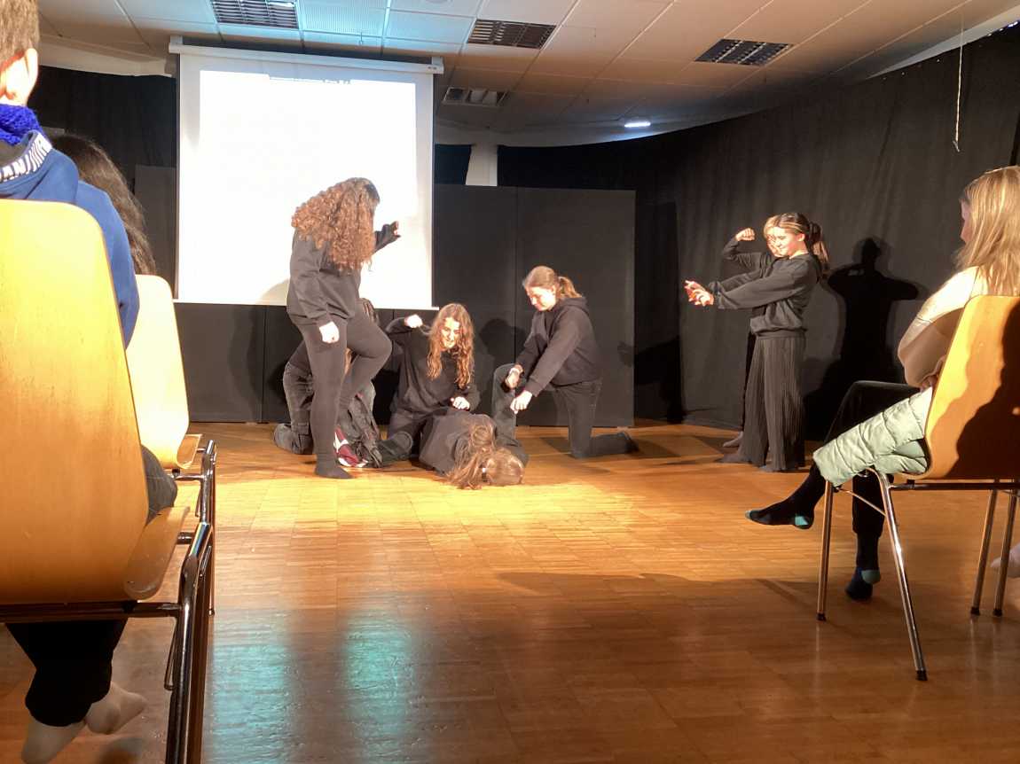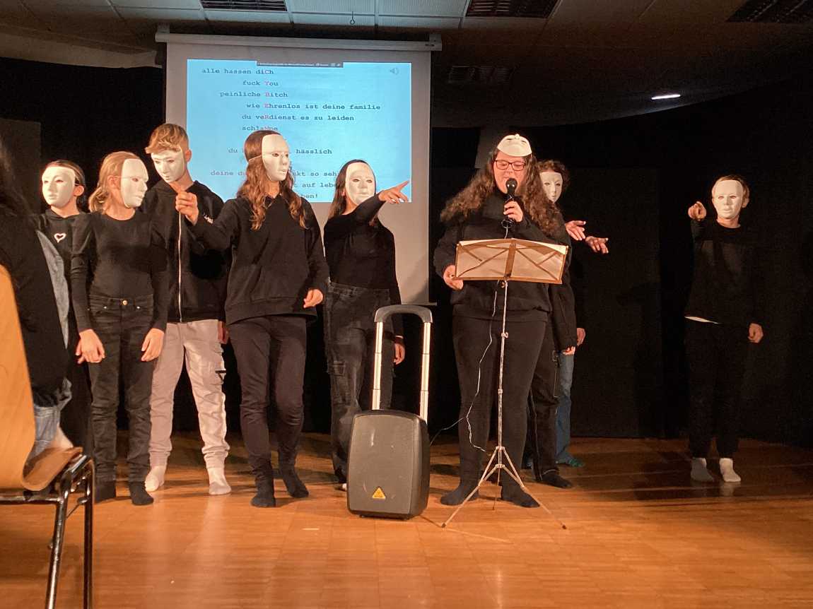 DS Jahrgang 7 hatte heute Prämiere mit ihrem Stück „Stop-Cybermobbing“ vor dem Jahrgang 5.