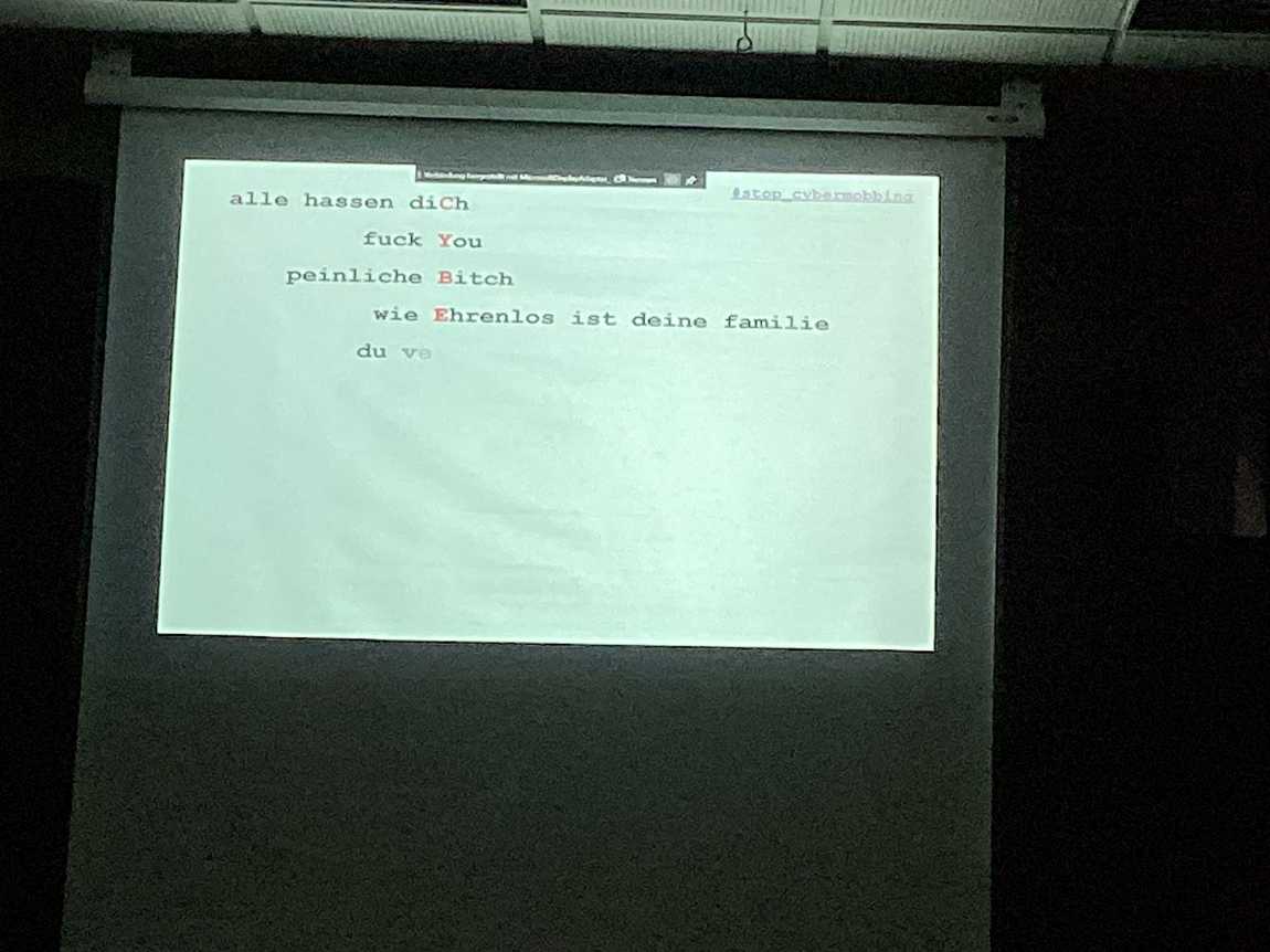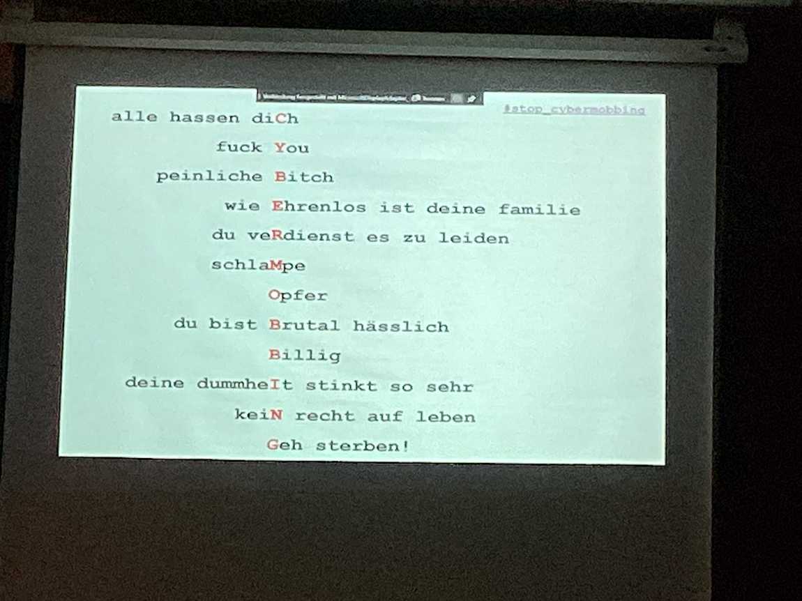 Das von der Fachlehrerin Mareike Herz selbst geschriebene Stück verdeutlicht die Angriffe die Menschen durch andere ausgesetzt sind, was dies mit einer Person macht und zeigt aber auch Unterstützungsmöglichkeiten in Form der Vertrauenslehrer, Stufenleitern, Schulsozialarbeit und Tutoren auf.