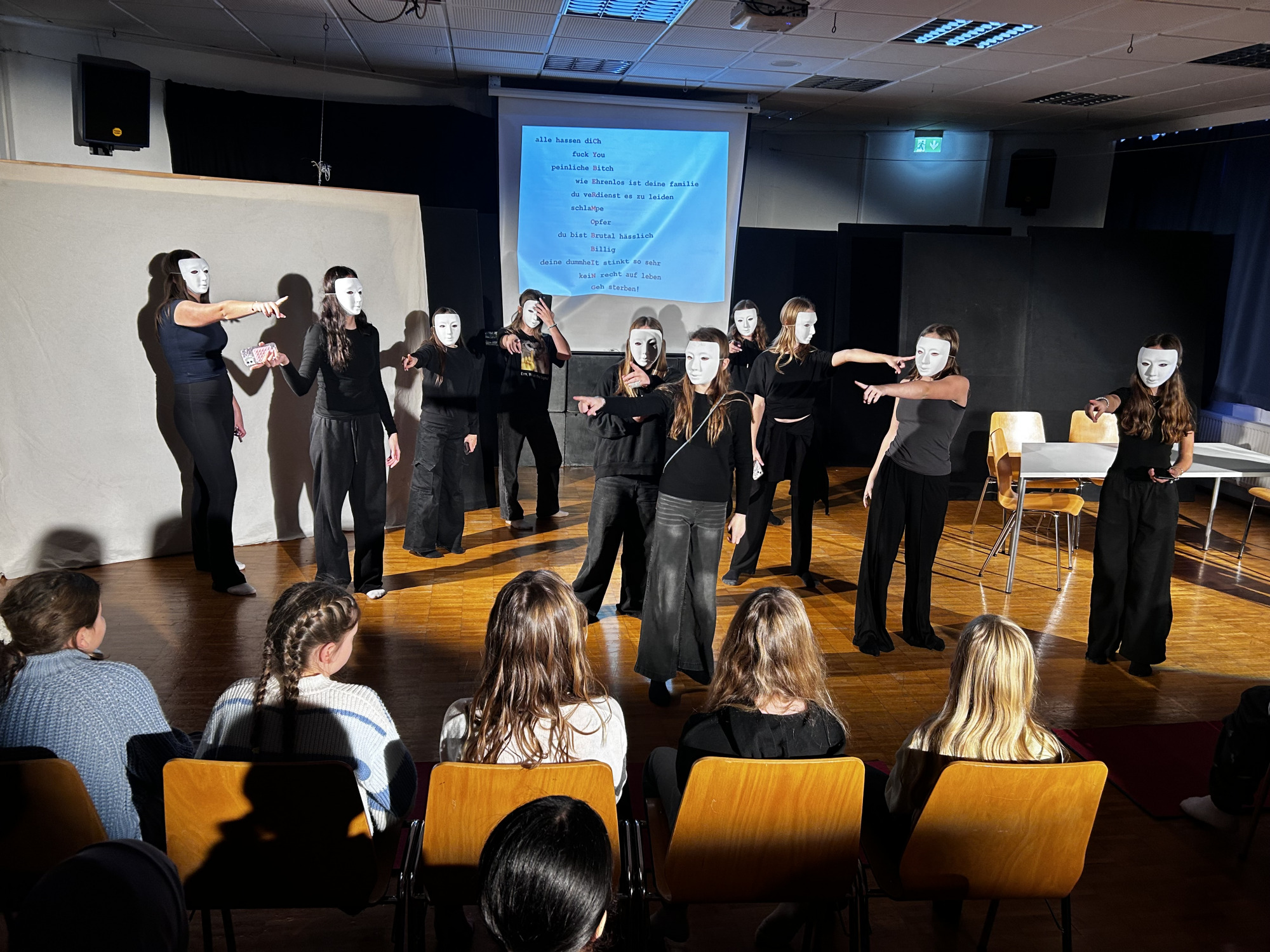Die jetzigen 7. KlässlerInnen haben das Stück selbst in ähnlicher Form als 5. KlässlerInnen vor 2 Jahren gesehen und freuen sich riesig, so nun ebenfalls einen präventiven Beitrag gegen Cybermobbing leisten zu können – gerade in einer Welt, in der digitale Medien unseren Alltag prägen.