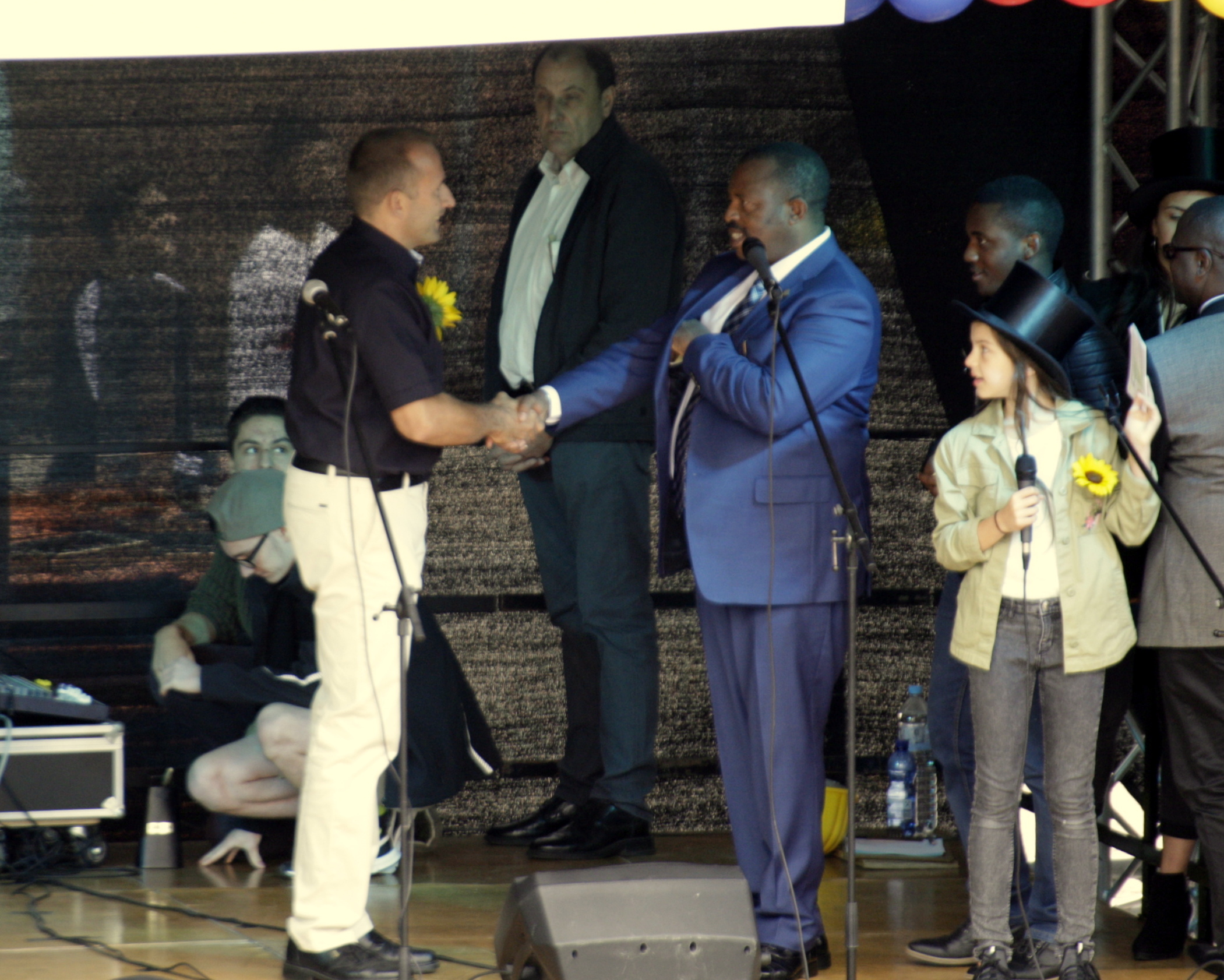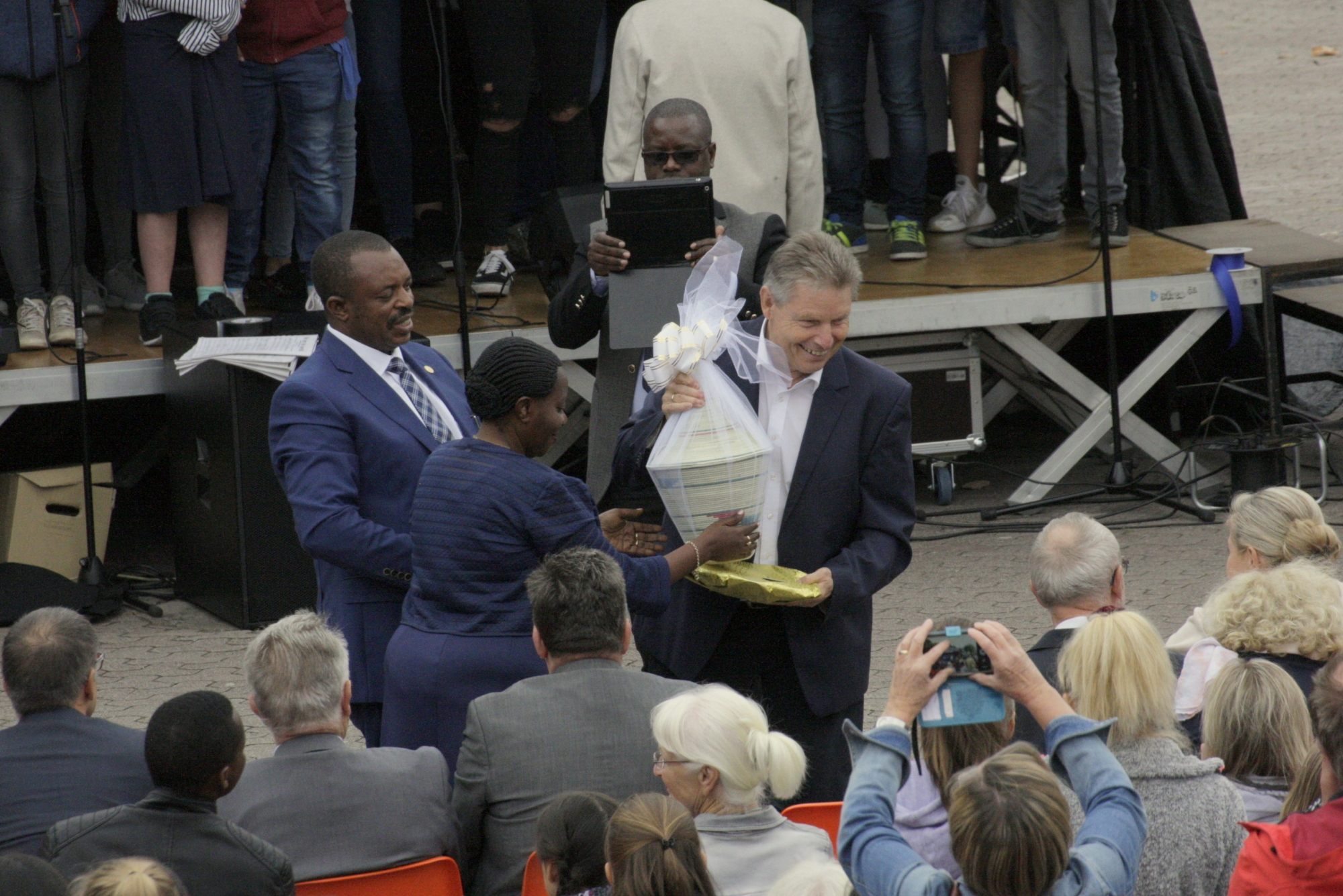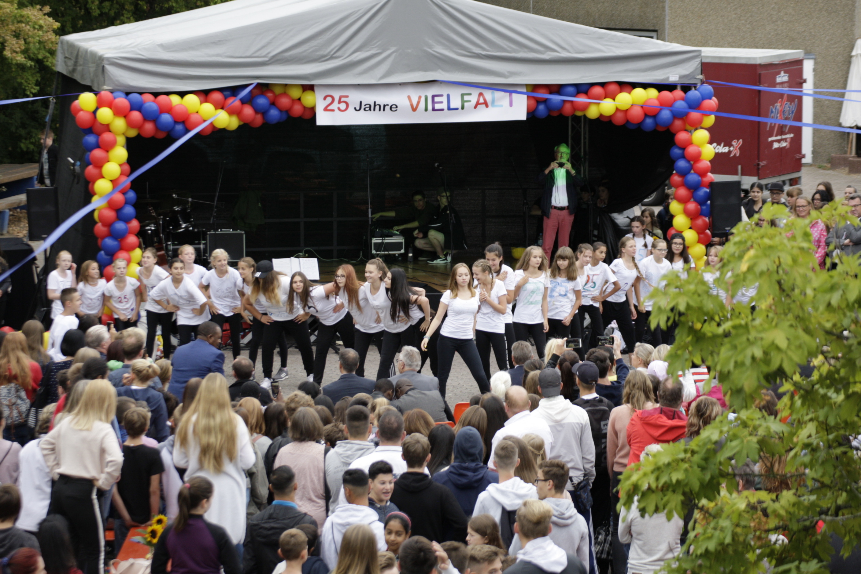 Das erste Projekt – Hip-Hop – stellt sich vor der Bühne auf, den Schülern steht die Aufregung ins Gesicht geschrieben. Musik ertönt und sie fangen an, vergessen alles um sich herum und konzentrieren sich nur noch auf ihre Tanzschritte. Danach betritt unser Direktor Herr Pellkofer die Bühne, mit ihm zwei Schülerinnen, sie eröffnen das Schulfest mit einer Danksagung und der Begrüßung der geladenen Gäste. Wenig später übergeben sie das Wort an den Direktor unserer Partnerschule in Ruanda, welcher eine rührende Rede über die Zusammenarbeit der beiden Schulen hält und berichtet, wie stolz er auf diese Partnerschaft ist, die er gerne aufrechterhalten möchte. Danach folgt eine Aufführung des Chor-Projektes, unterbrochen von einer kurzen Rede des Bürgermeisters der Gemeinde Mutterstadt, Herrn Schneider. Es folgen zwei Reden, eine von Landrat Herrn Körner und des SEB-Vorsitzenden Herrn Kany.