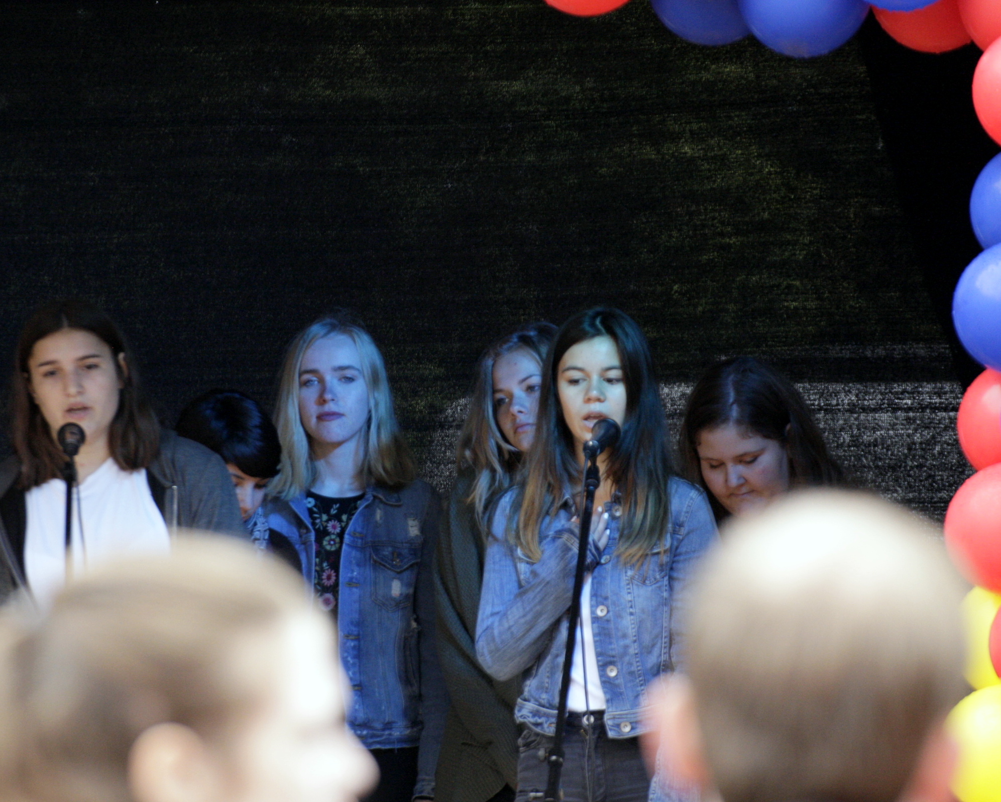 Am Samstag, 25. August, war es soweit: der Tag, auf den wir Schüler eine Woche lang (und die Lehrer wahrscheinlich noch länger) in ihren Projekten hingearbeitet haben. Egal ob Tanzen, Singen, Kämpfen oder Schreiben, wir haben hart an uns und unseren Ergebnissen gearbeitet. Jeder ist aufgeregt, die Stimmung ist angespannt, überall sitzen Menschen: Familien, Freunde, Bekannte und Unbekannte.