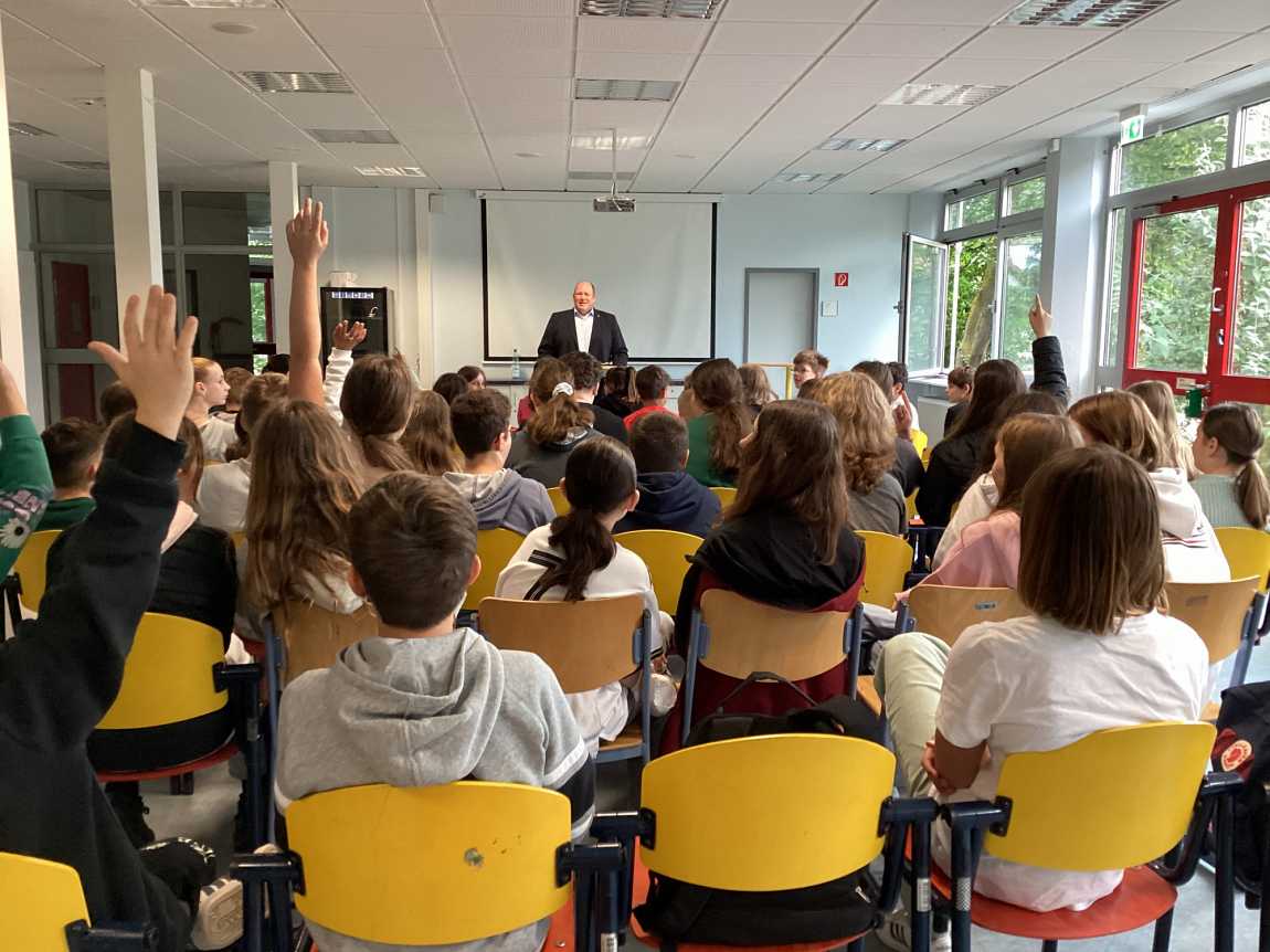 Zum heutigen Demokratietag im Jhg. 6 besuchte uns der amtierende Mutterstadter Bürgermeister Herr Thorsten Leva.