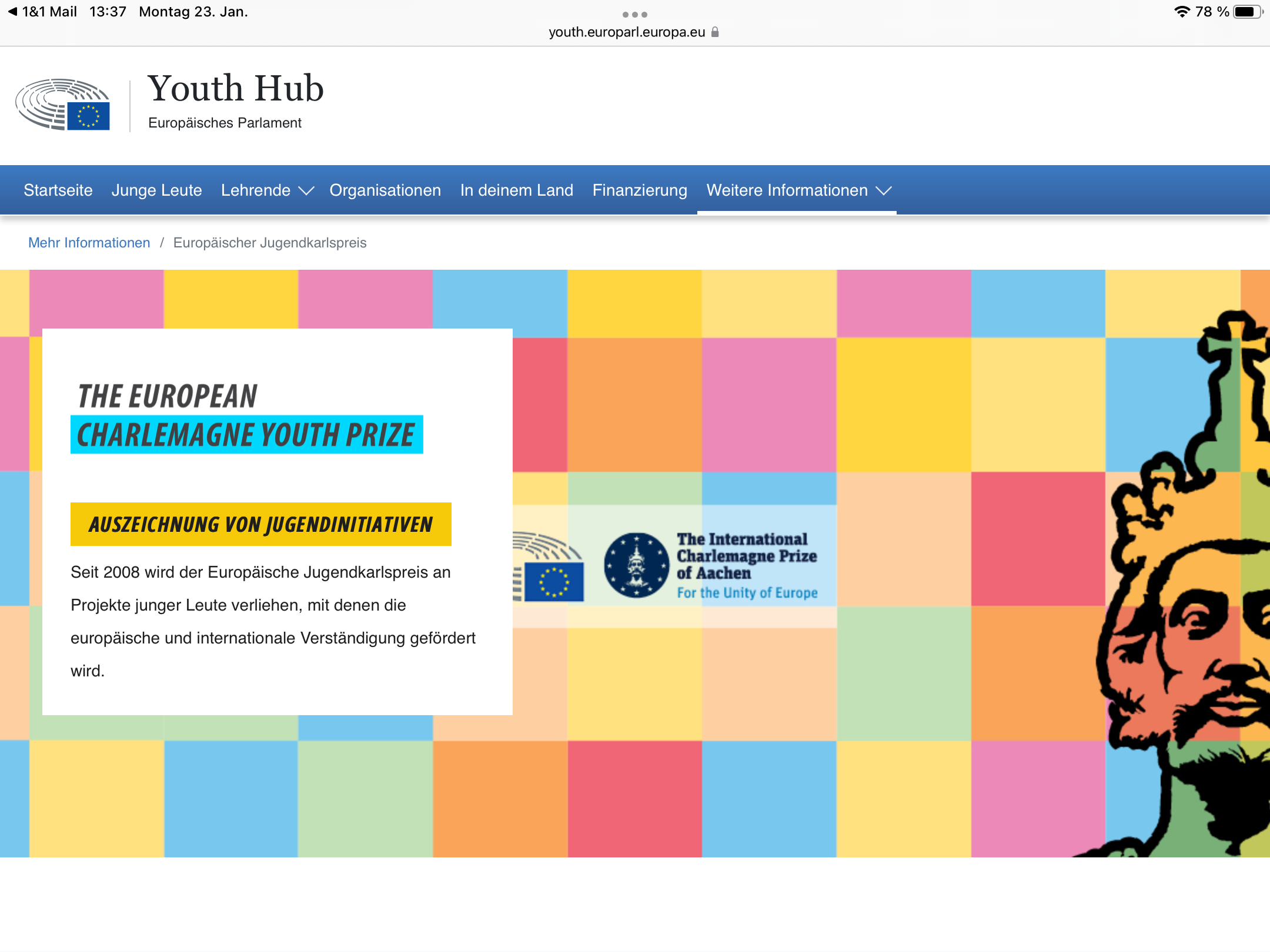 Der Europäische Karlspreis für die Jugend – für alle sehr engagierten jungen Europäer