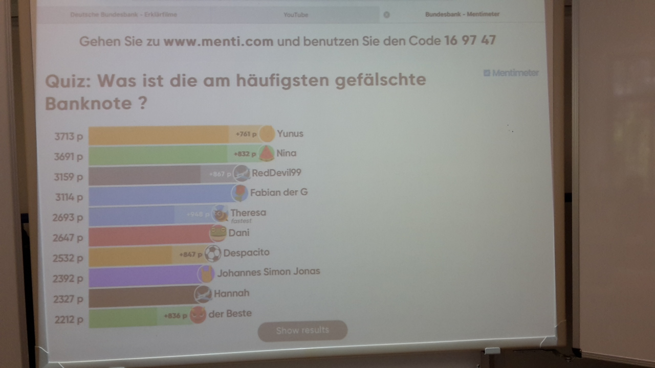 Am Montag, dem 04. Juni 2018, kam Frau Ferrara von der Bundeszentralbank zu Besuch in den 11-er LK und GK Sozialkunde. Was sich zunächst nach einem langweiligen Vormittag anhörte, entpuppte sich als interessante und informative Veranstaltung.