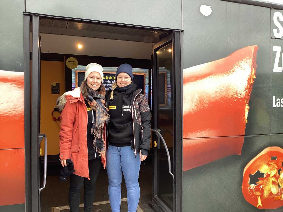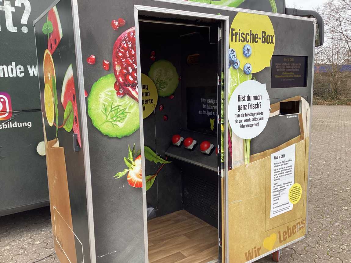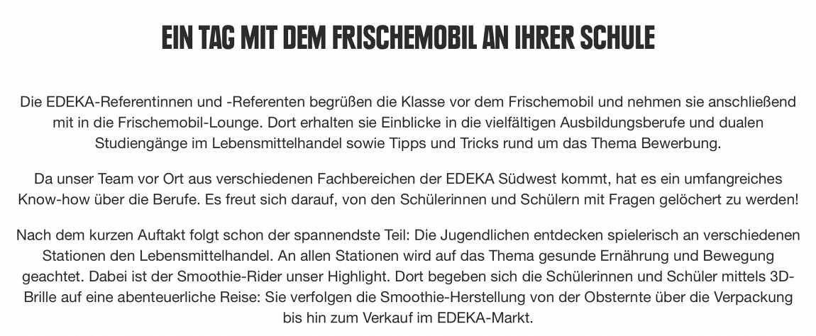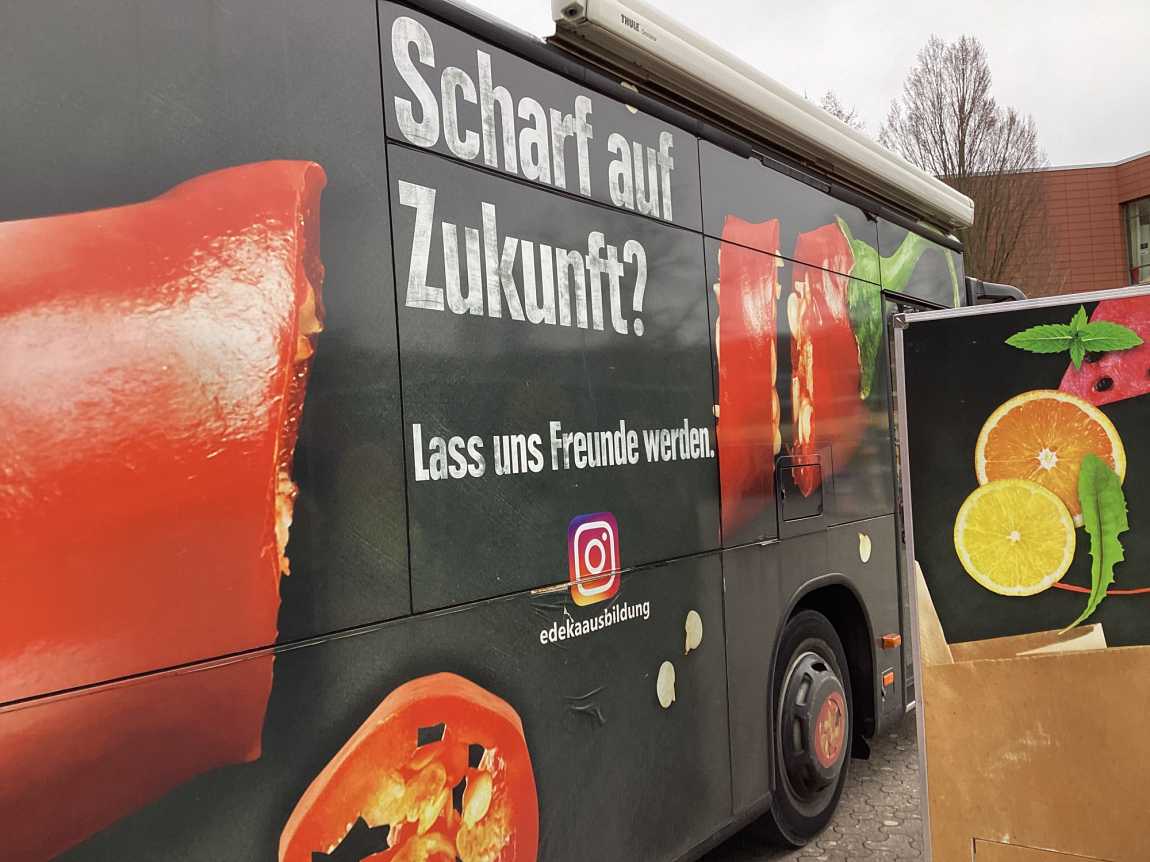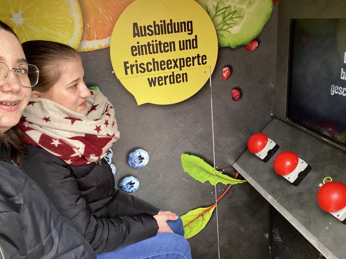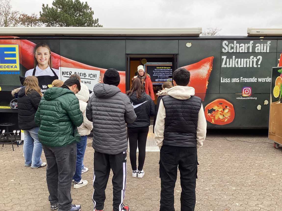 Die EWG-Gruppen der Jahrgänge 7-10 konnten sich im EDEKA-Frischemobil an anschaulichen Stationen und im persönlichen Gespräch ausführlich über den Einzelhandel informieren.