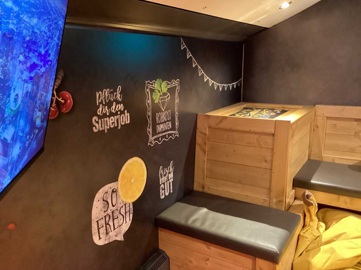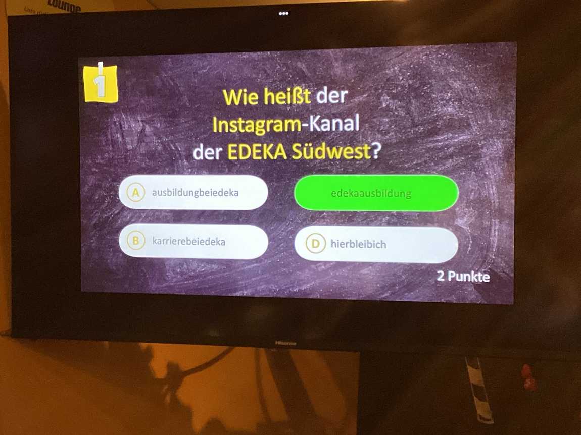 Zunächst ging es in die Loungeecke. In einem informativen Spiel konnte man einen Einblick in die über 30 Ausbildungsmöglichkeiten bei EDEKA erhalten