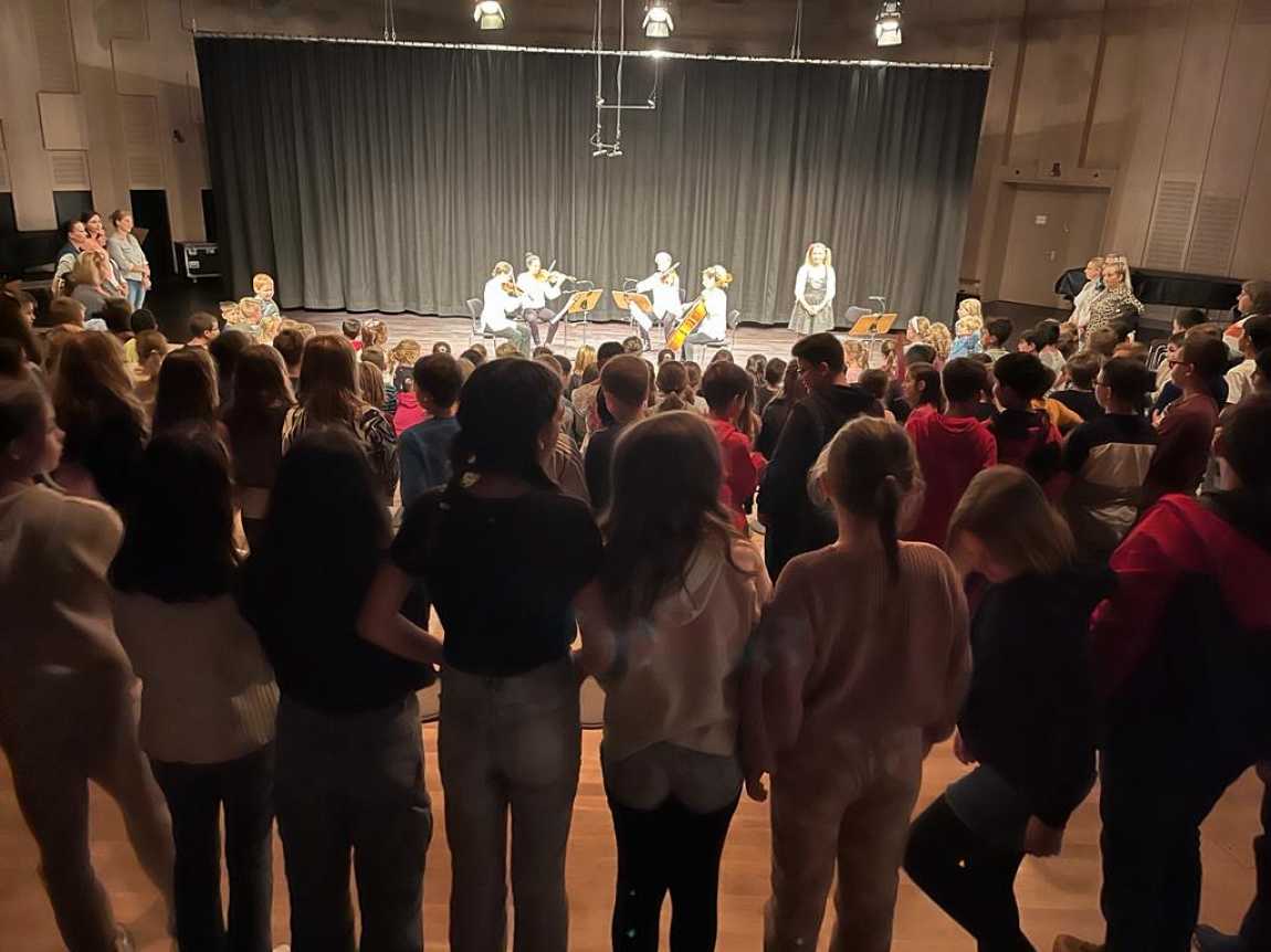 Unter diesem Motto begaben sich sich die 4 5. Klassen am 11. und 12. 10. auf Spurensuche in die Staatsphilharmonie Ludwigshafen. 4 Streichinstrumente, alle Mitglieder des Quartetts, stellten ihre Lebensgeschichte vor, die italienische 1. Geige, die russische 2. Geige, die spanische Bratsche und die deutsche Cellistin erzählten von ihrer musikalischen Zusammenarbeit. Nach der Aufgabenverteilung im Quartett hat jedes Instrument seine besondere Rolle geschildert, sie es als Melodieinstrument oder Bassinstrument. Die Schüler/innen der IGS lauschten gespannt der Moderatorin Ilona Schulz, selbst ausgebildete Schauspielerin und Musikerin. Die live gespielten Musikbeispiele von Haydn, Mozart, Mendelssohn-Bartholdy luden zum Entspannen und Nachdenken ein. Nebenbei erfuhren die Kinder, dass die deutsche Nationalhymne ebenfalls von einem von Haydn komponierten Streichquartett abstammt. Für alle Schüler war es ein Konzerterlebnis, das sicher bleibende Eindrücke hinterlassen hat.