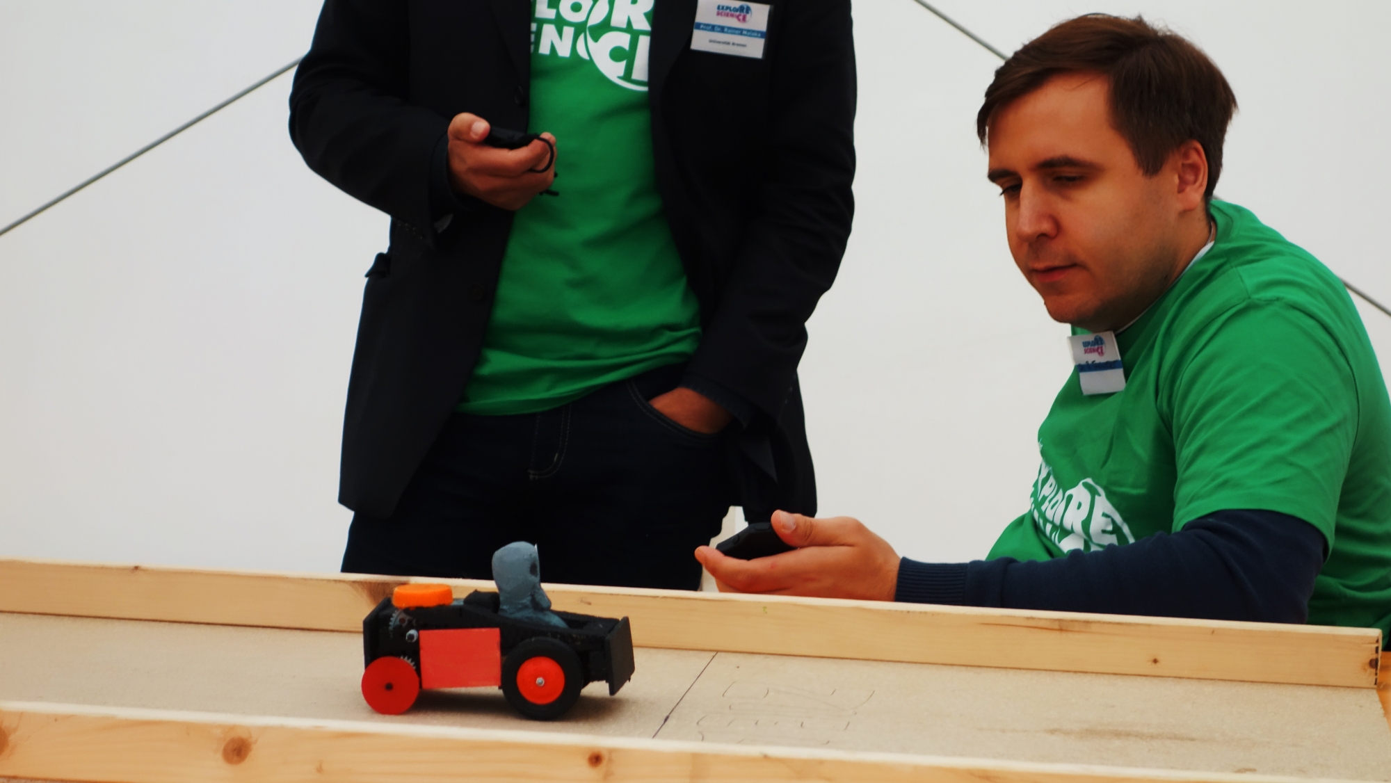 Beim Wettbewerb „Alienrennen“ war die Aufgabe, einen Alienrenner zu bauen, welcher ohne Verwendung elektronischer Bauteile eine waagerechte Strecke von einem Meter in möglichst genau zwölf Sekunden zurücklegt. Bewertungskriterien sind die Möglichst exakte Einhaltung der vorgegebenen Zeit von zwölf Sekunden und die Reproduzierbarkeit der Zeit bei drei Durchgängen.