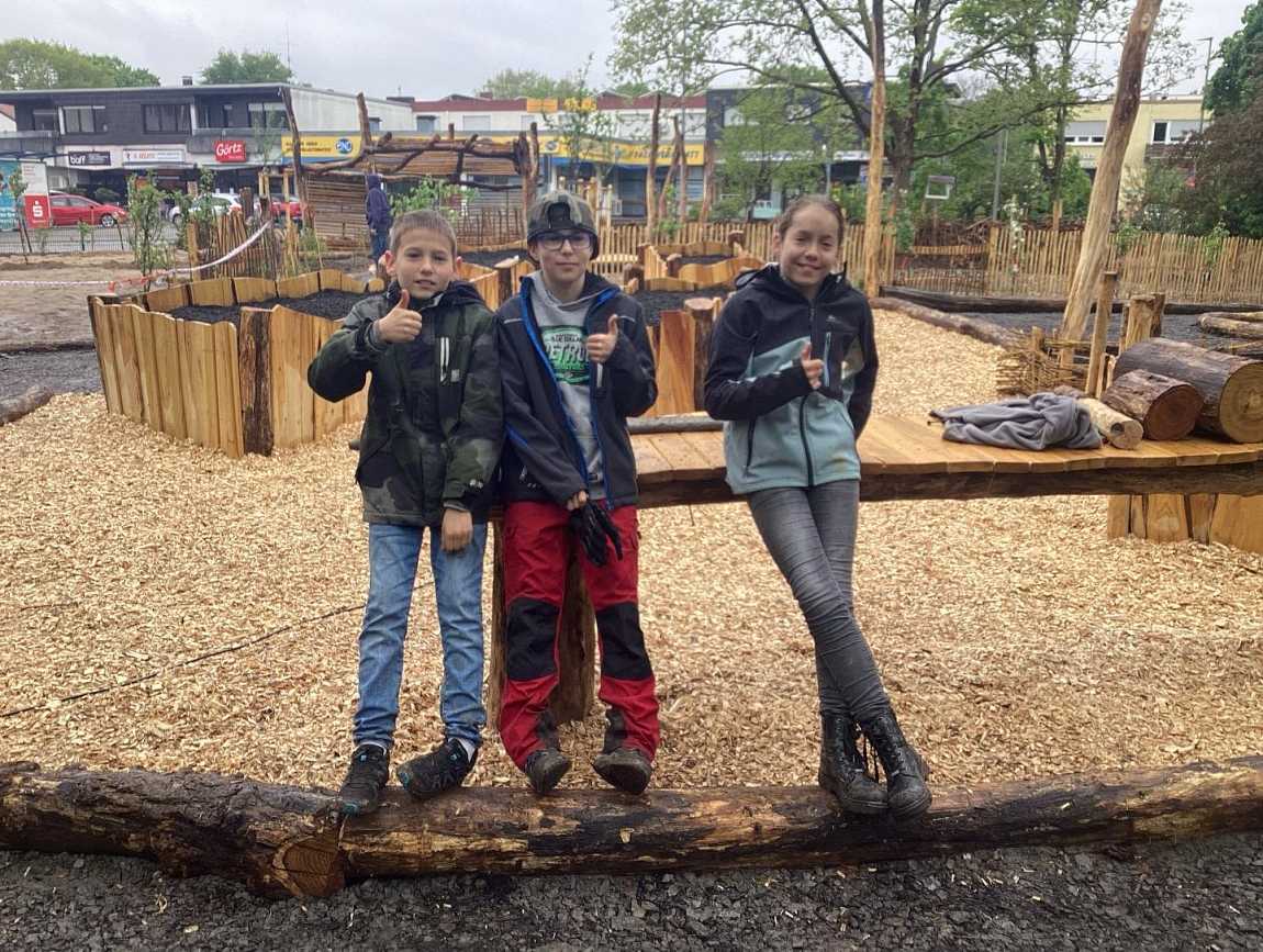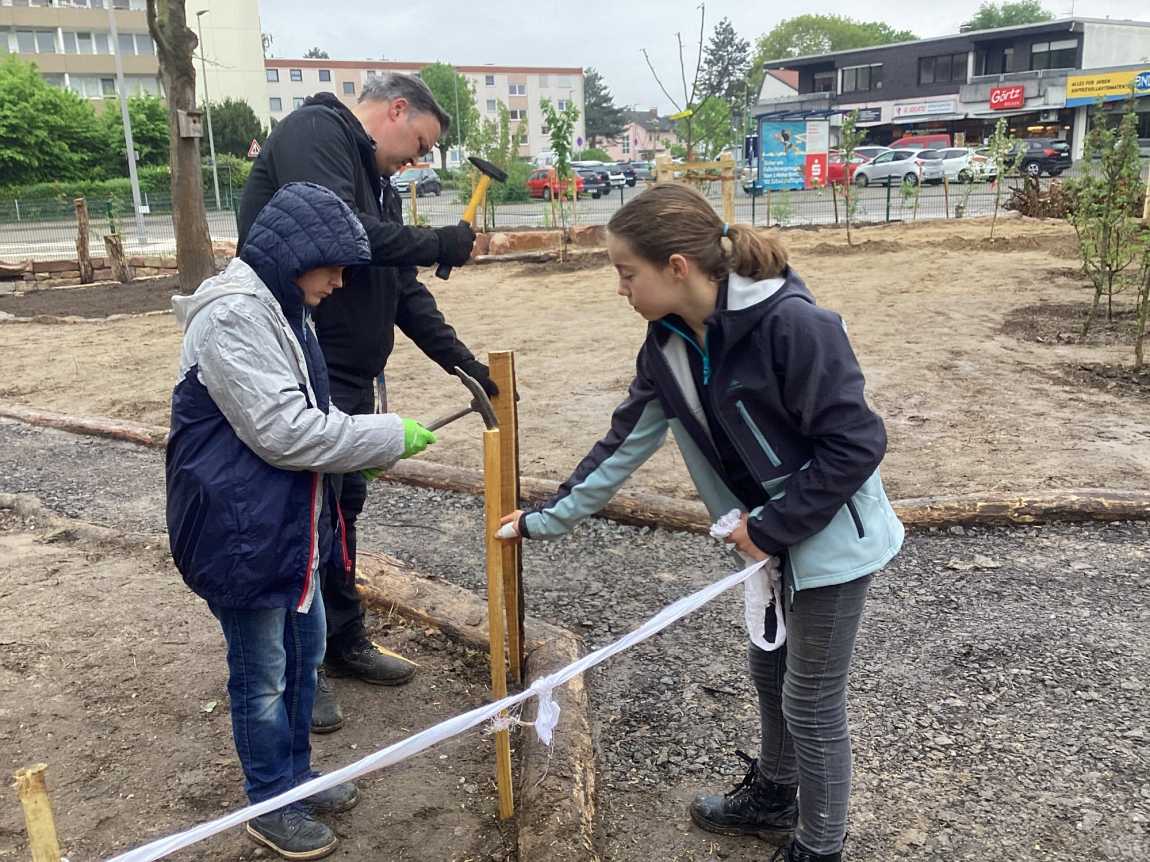 „Das Projekt ist gut, der Wunsch ist nun den Garten für den Draußenunterricht zu nutzen aber auch während der Pausen; allerdings besteht die Gefahr dass der Garten dann nicht mehr ganz so schön aussieht; daher der Wunsch die Gartenanlage respektvoll zu behandeln.“