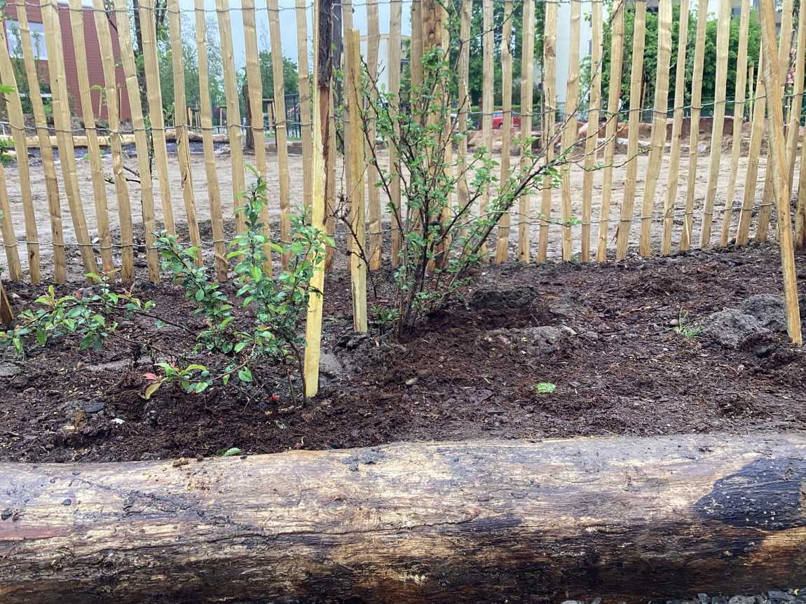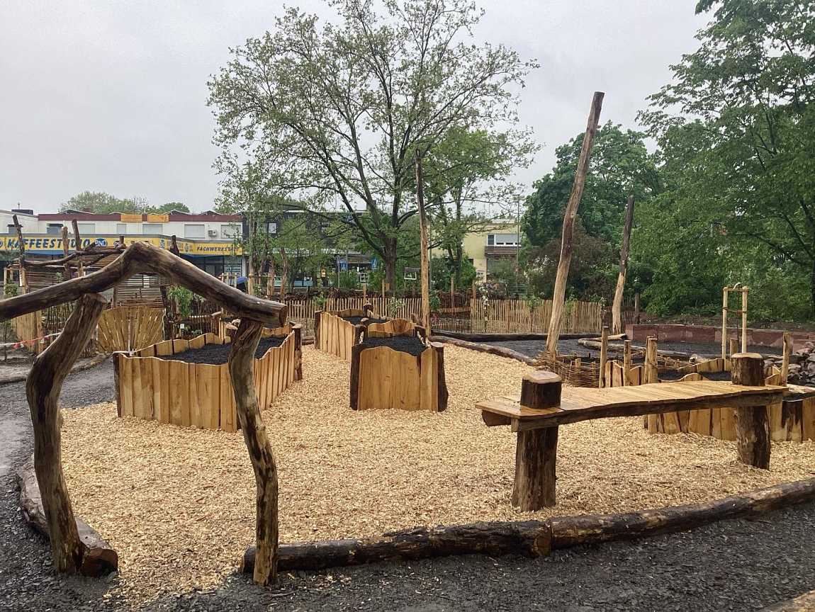 Auf dem Weg zur Stufe 2 der Zertifizierung zur BNE Schule ist das Schulgartenprojekt ein Meilenstein. Wo vorher Flächen versiegelt waren, das Wort Nachhaltigkeit noch kleingeschrieben wurde und die Insekten nur Unterschlupf in ihrem Hotel fanden, gibt es heute Benjeshecken für Kleinsäuger und Insekten, bienenfreundliche Aussaaten; Wege aus Schotterrasen, an Stelle versiegelter Wege und Betonplatten. Es wurden nur einheimische Hölzer verpflanzt, gesponsert von der Fielmannstiftung. Plastik und Beton findet man nicht.