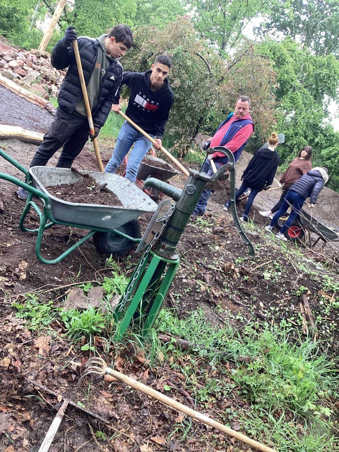 Diese Begeisterung für das Projekt ist auch auf die Kolleg*innen und Schüler*innen übergesprungen vor allen in den letzten Wochen. Es wurde täglich klassenweise geschufftet und geschwitzt. Naturspur gab an, was zu tun war und die Schüler*innen packten zu!