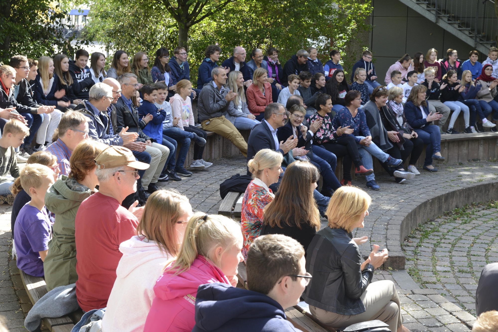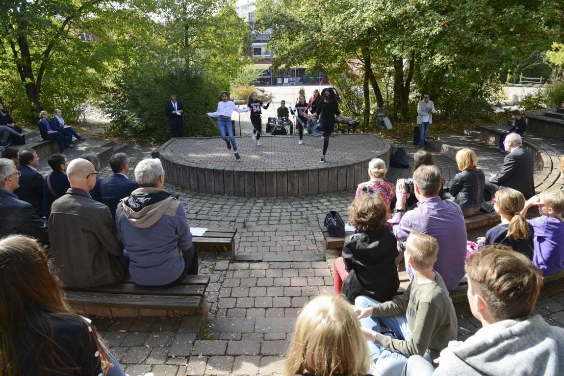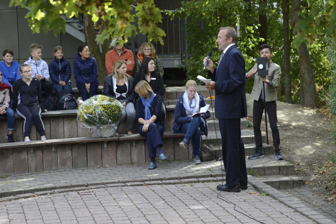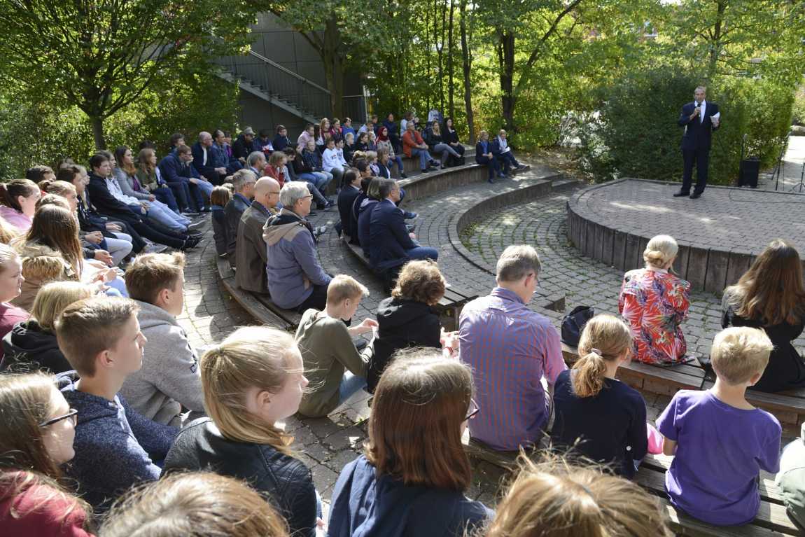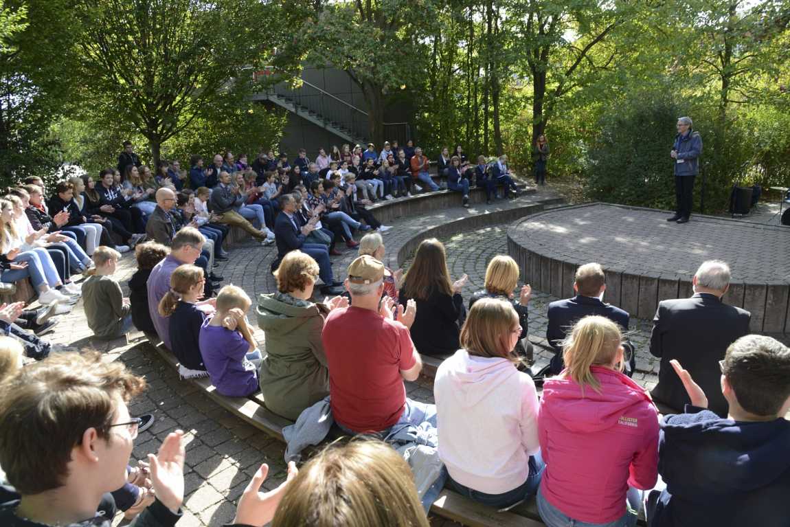 Am Mittwoch, dem 26. September 2018, wurde in einer kleinen Feierstunde unser neues Schulhofgelände offiziell eröffnet. In einem mehrere Jahre dauernden Projekt wurde gemeinsam von Eltern, Kollegen/innen, Schüler/innen und Schulleitung das Schulhofgelände neu gestaltet. Alle Beteiligten zogen gemeinsam an einem Strang und unterstützten sich gegenseitig.