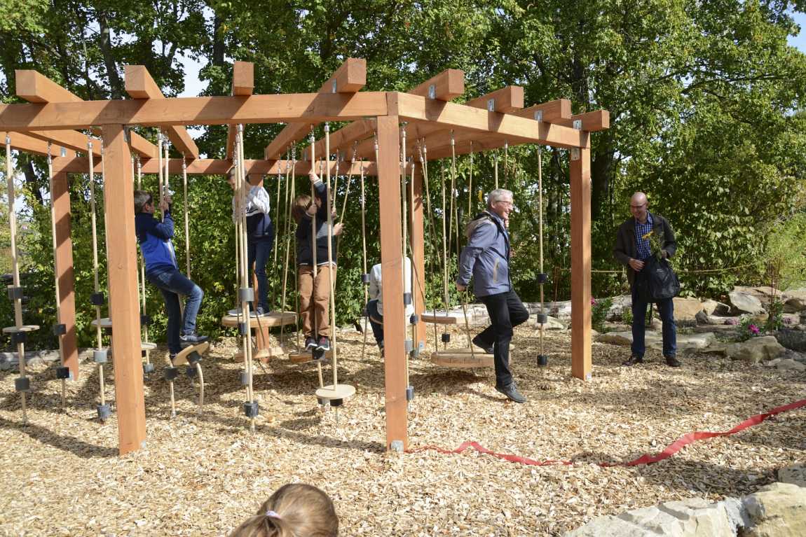 In dieser Zeit entwickelte sich aus einem betonierten Schulhof ein naturnaher und attraktiver Pausenhof, der zum einen zu sportlichen Aktivitäten einlädt, und zum anderen auch der Entspannung dient. Neue Kletterwände und -anlagen stehen nun zum Hangeln und Klettern zur Verfügung. Auch Möglichkeiten zur Entspannung in Form von Hängematten und gemütlichen Sitzecken wurden eingerichtet. Der neue Schulhof erstrahlt nun so in neuem Glanz und trägt zum Wohlfühlen der Lernenden in der Schule bei. Ab sofort steht das neugestaltete Areal allen Schüler/innen in vollem Umfang zur Verfügung! Lebenswelt Schule wird hier greifbar und erlebbar!
