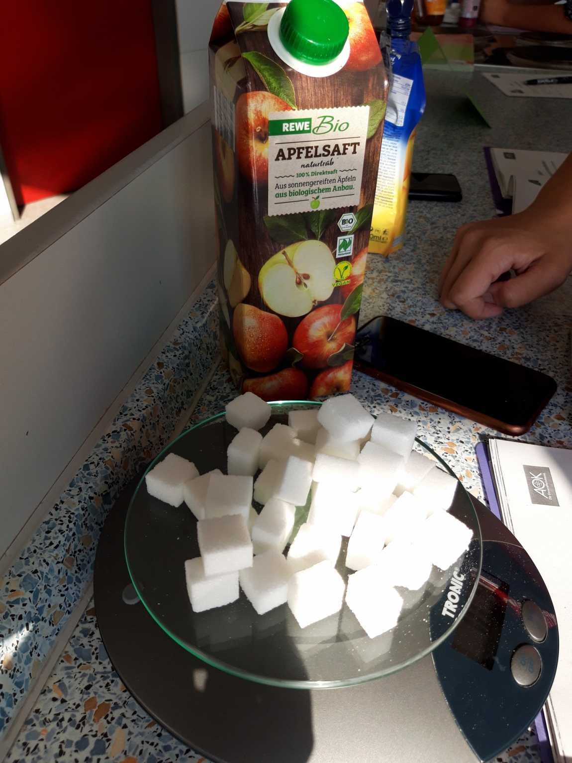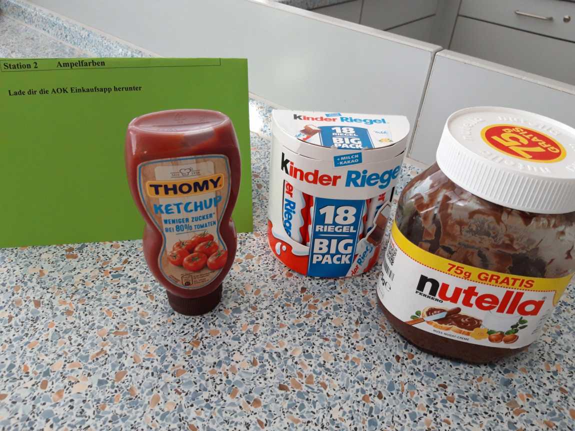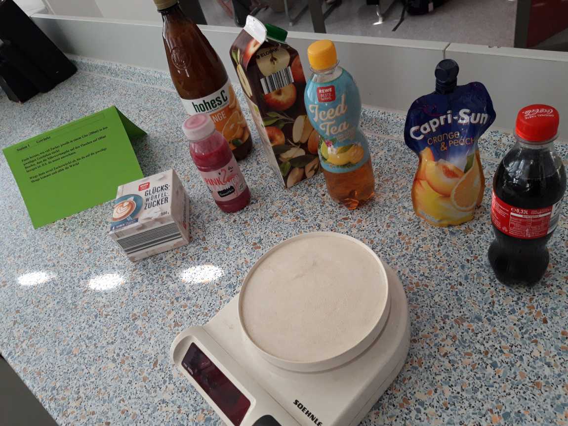 Stationen waren u.a. ein Getränke-Check mit der Fragestellung: „Wieviel Zucker enthalten verschiedene Getränke? Was sind gesunde Durstlöscher?“.