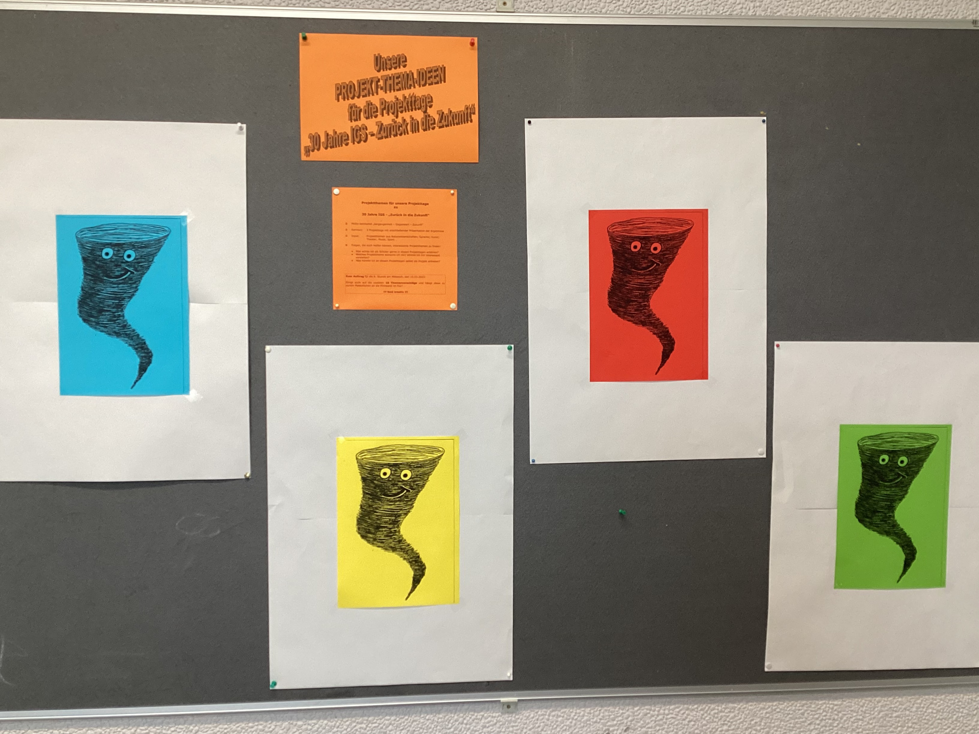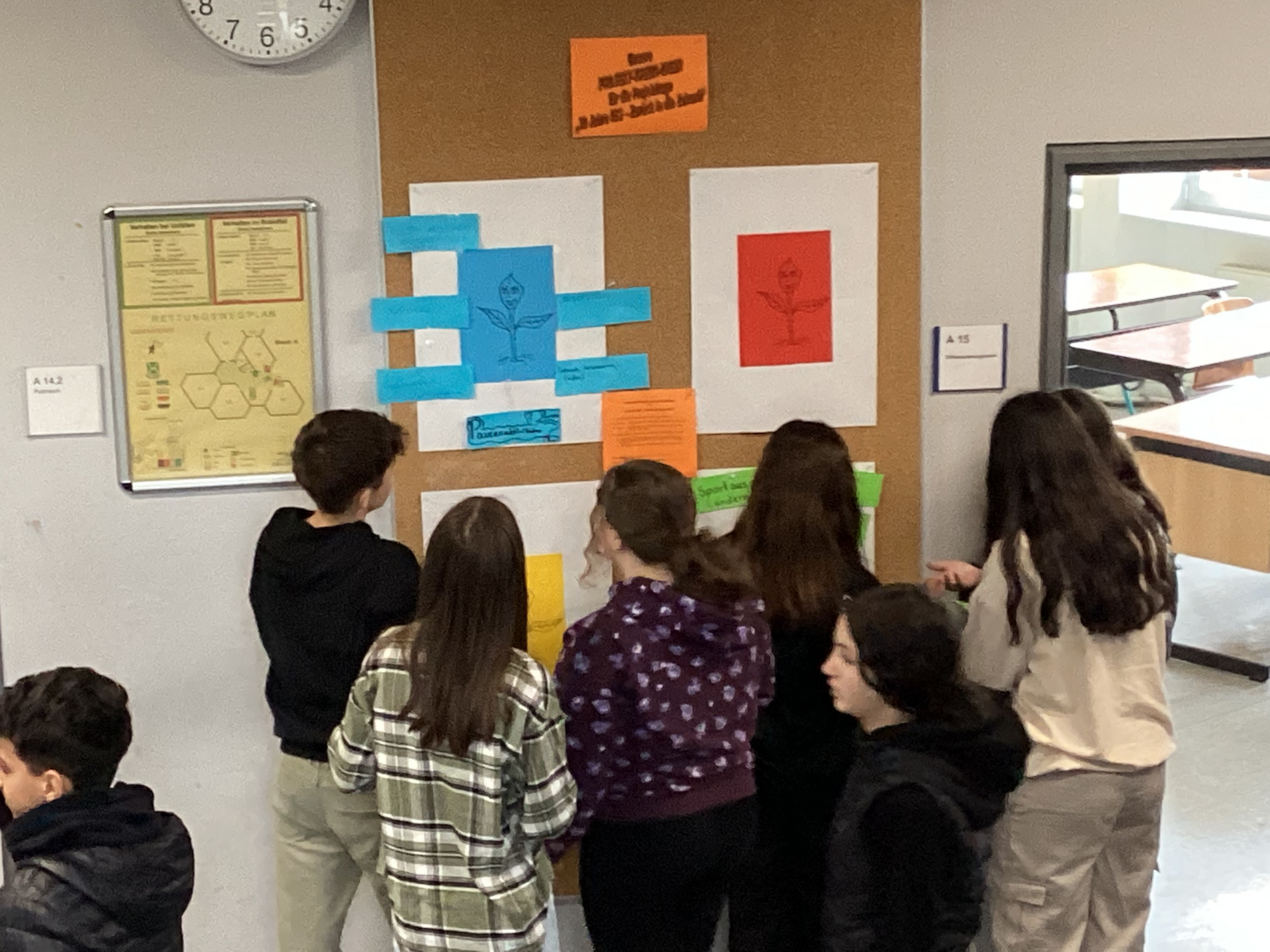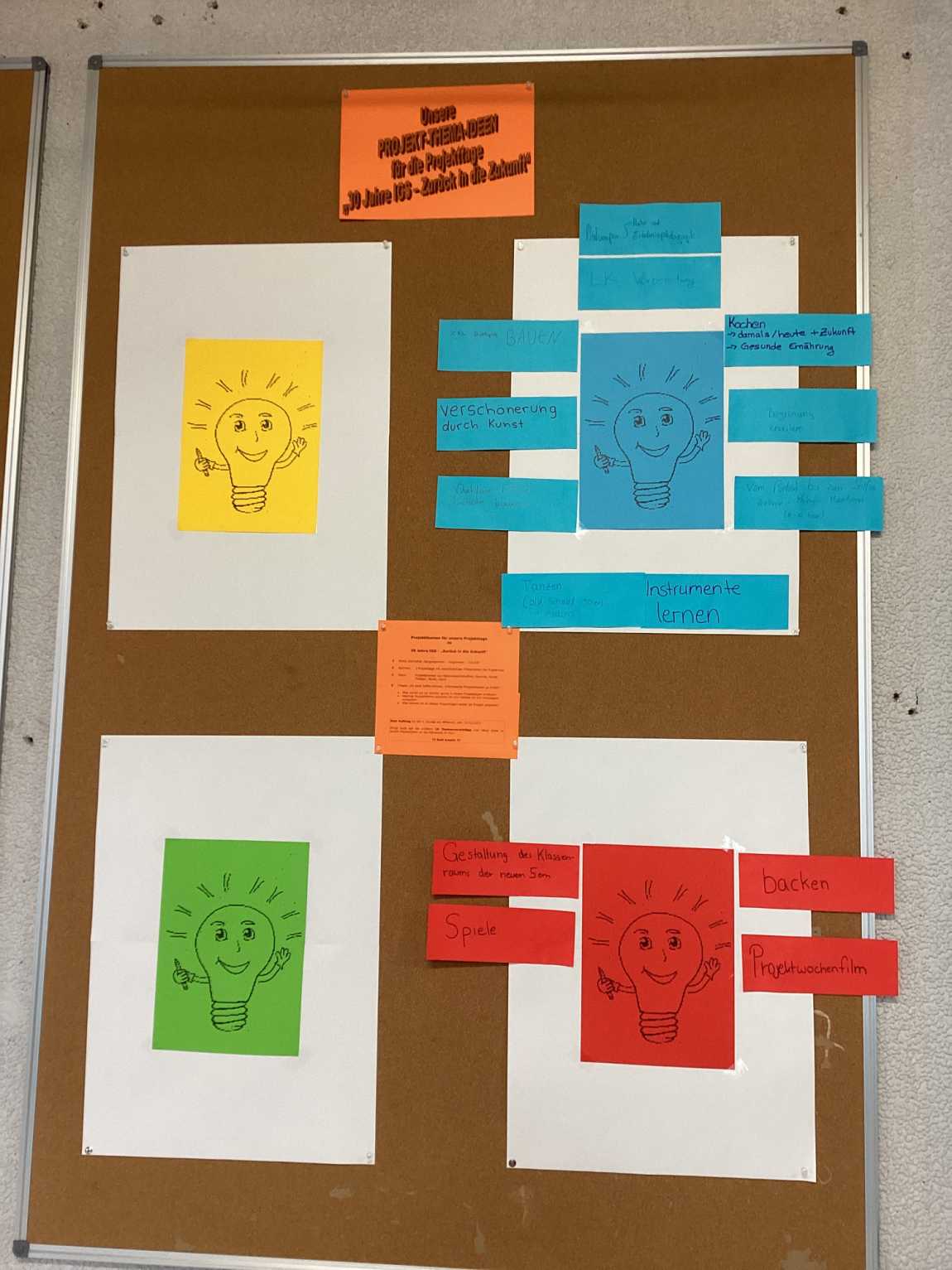 Die SchülerInnen wurden von ihm mit den Anregungen im Kopf in ihre Klassen entlassen, um dort gemeinsame Ideen zu sammeln und als Projektvorschläge an den Jahrgangspinwänden festzuhalten.