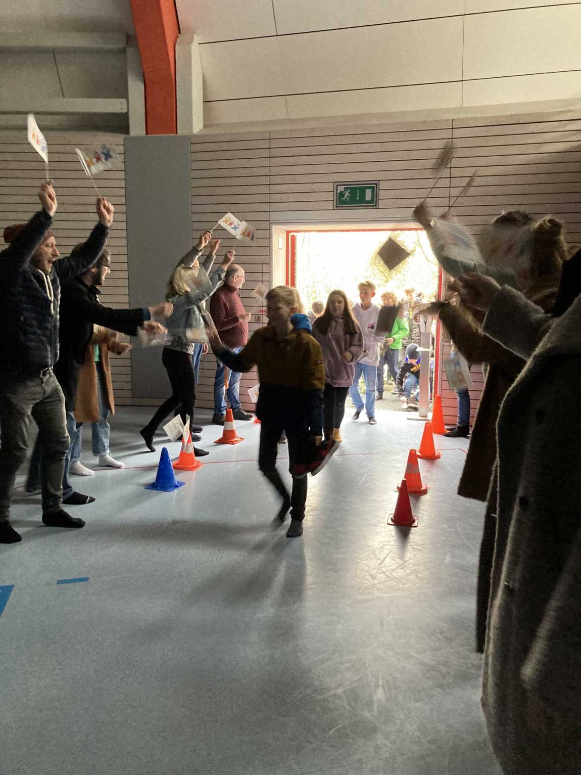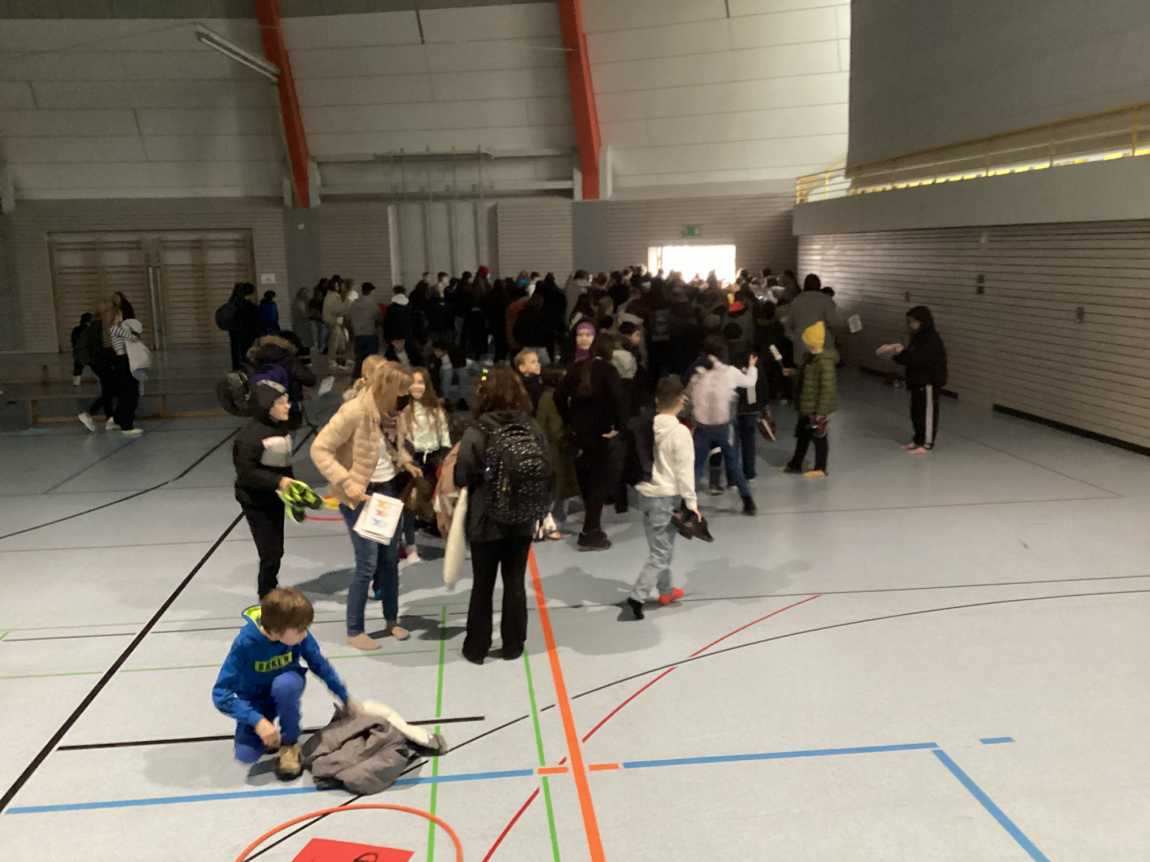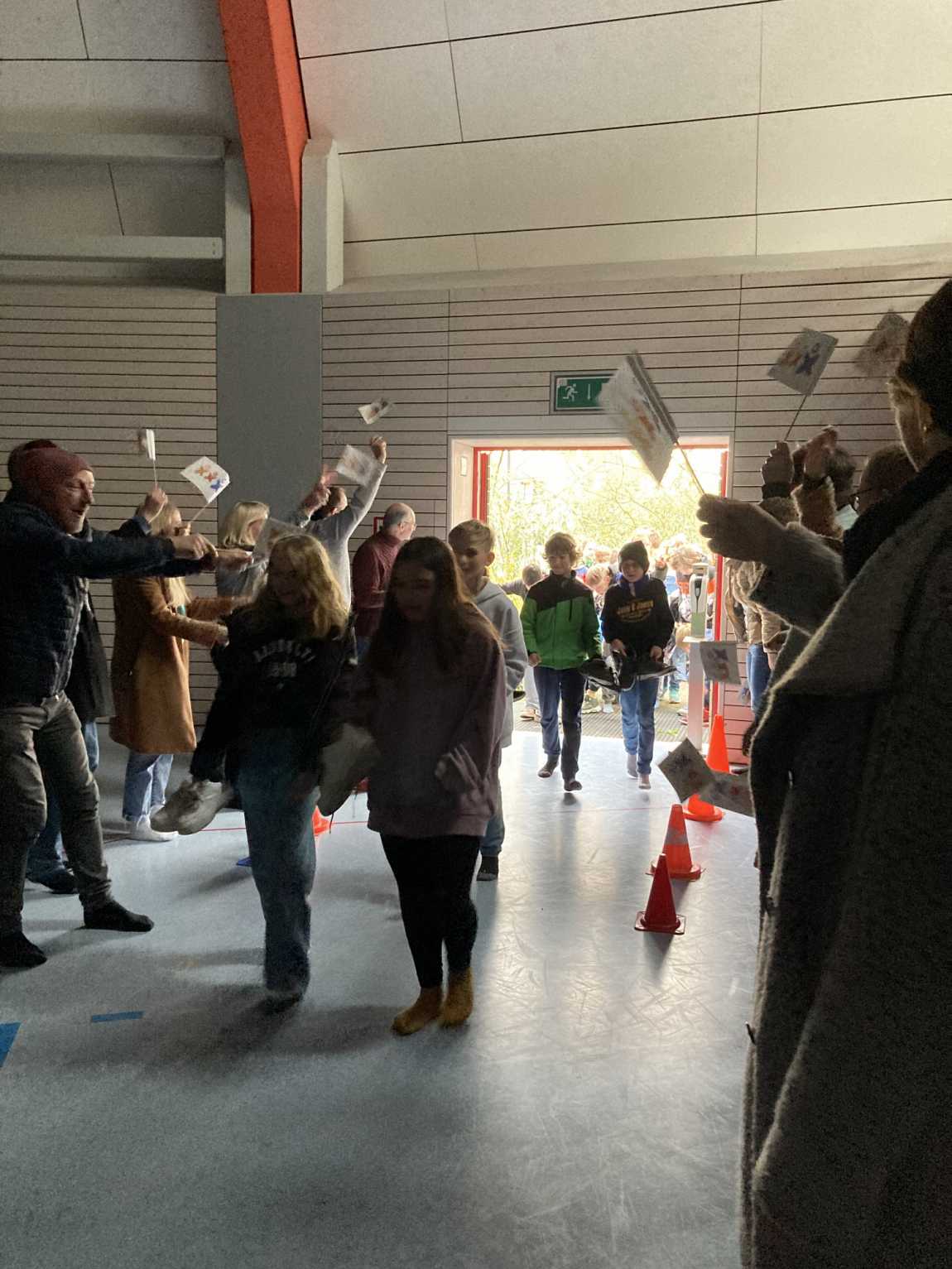 …klappt der Einzug…die KlassensprecherInnen sollten ihre Klasse vom Aufstellungsort in die Sporthalle begleiten, denn dort warteten die TutorInnen mit IGS Fähnchen und Applaus im Spalier um ihre Klassen zu empfangen und auf den weiteren Ablauf einzustimmen.
