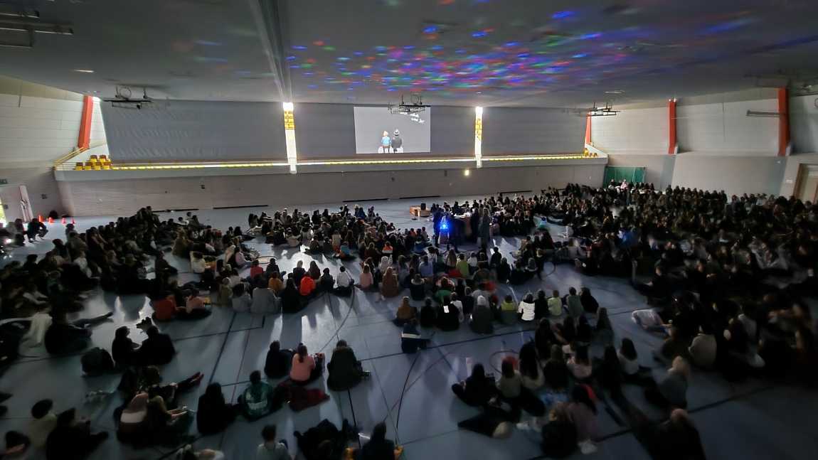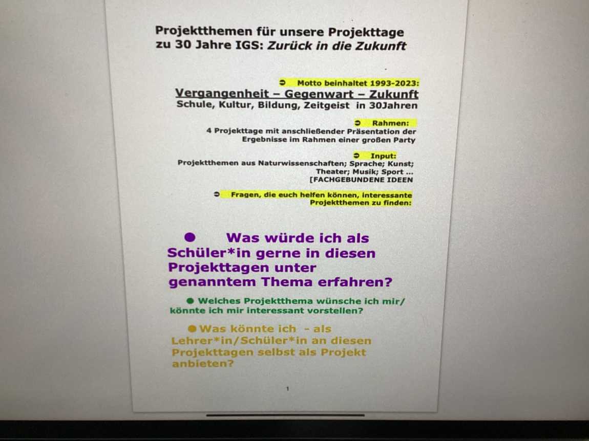 Wir sind glücklich unsere lang angestrebte Schulvollversammlung heute durchführen zu können und gleichzeitig den Startschuss für die Projektplanung „30 Jahre IGS“ zu geben.