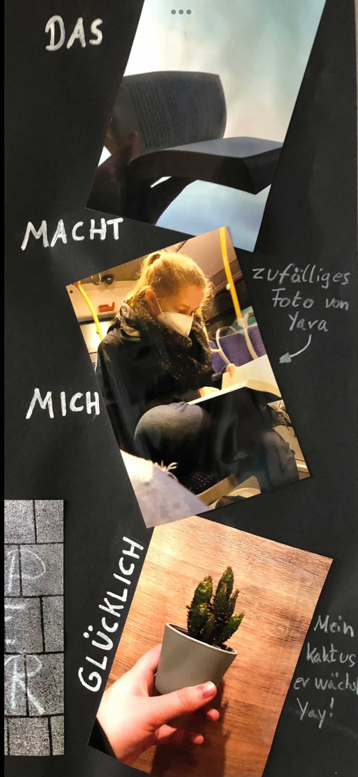 Wie erlebe ich meinen Schulweg? Was ist meine größte Angst? Wo fühle ich mich geborgen? Was beschäftigt mich momentan? usw. Mit diesen und weiteren Fragen sowie mit ihrem Handy im Gepäck haben sich die DS-Schüler*innen des Jahrgangs 9 auf eine ganz persönliche Fotoreise begeben, um ihren Alltag zu dokumentieren.