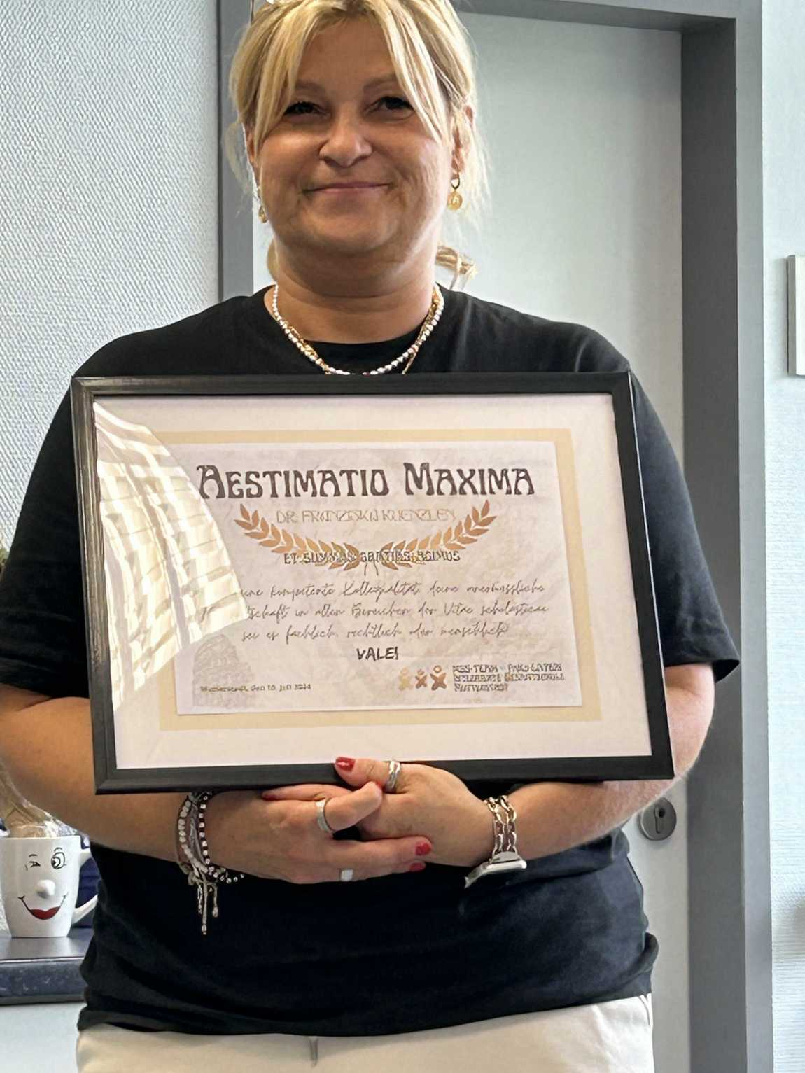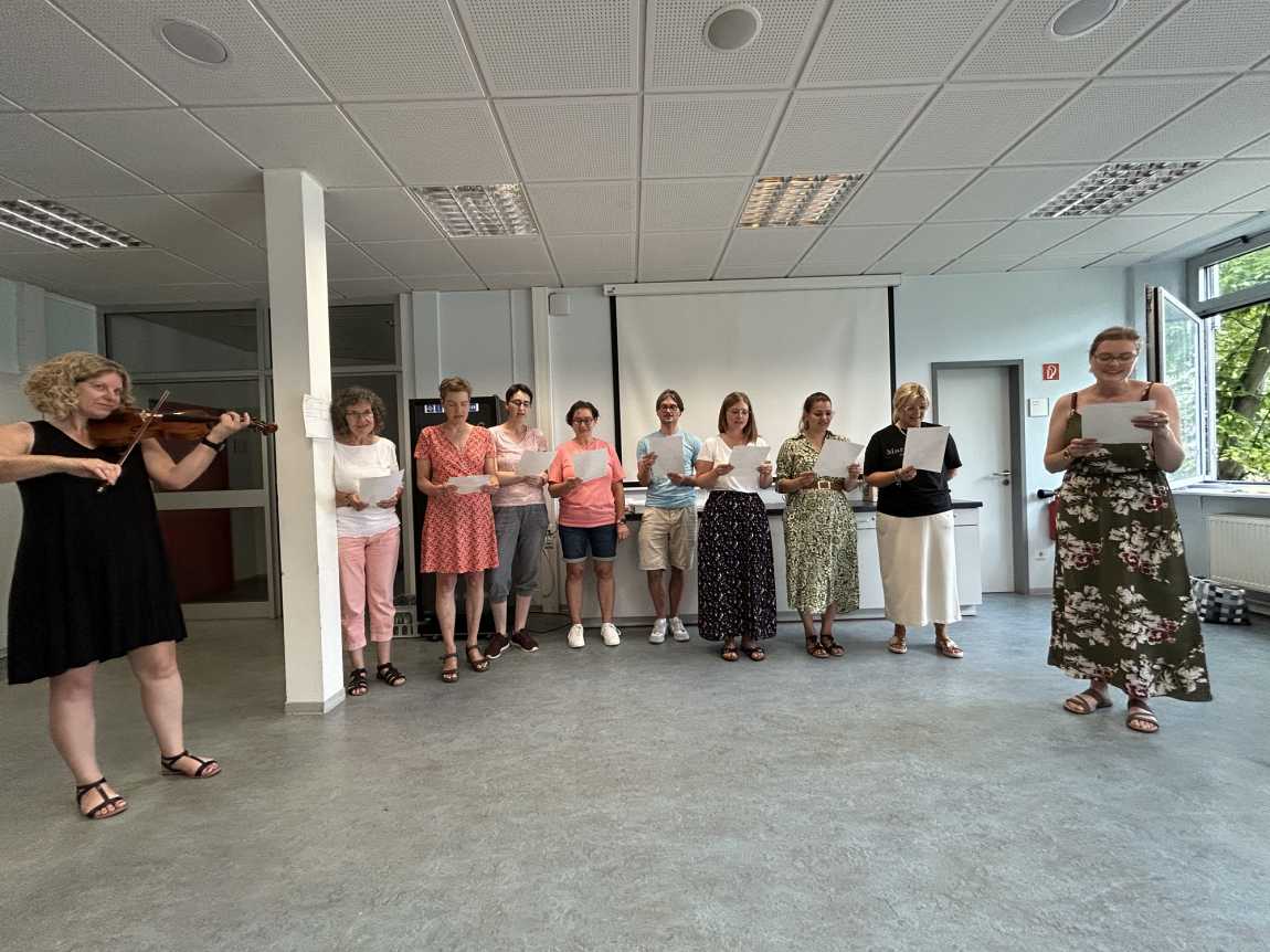 Dann ging es mit den Verabschiedungen weiter. Liebgewonnene und verdiente Kollegen und Kollegin verlassen uns, um an anderen Schulen zu unterrichten. Die Gründe hierzu sind vielfältig, so zieht es Frau Küenzlen nach 17 Jahren an der IGS nach Speyer an das Gymnasium, um dort in der Oberstufe Latein zu unterrichten und auch um Ihren Studenten im Studienseminar gerecht zu werden.