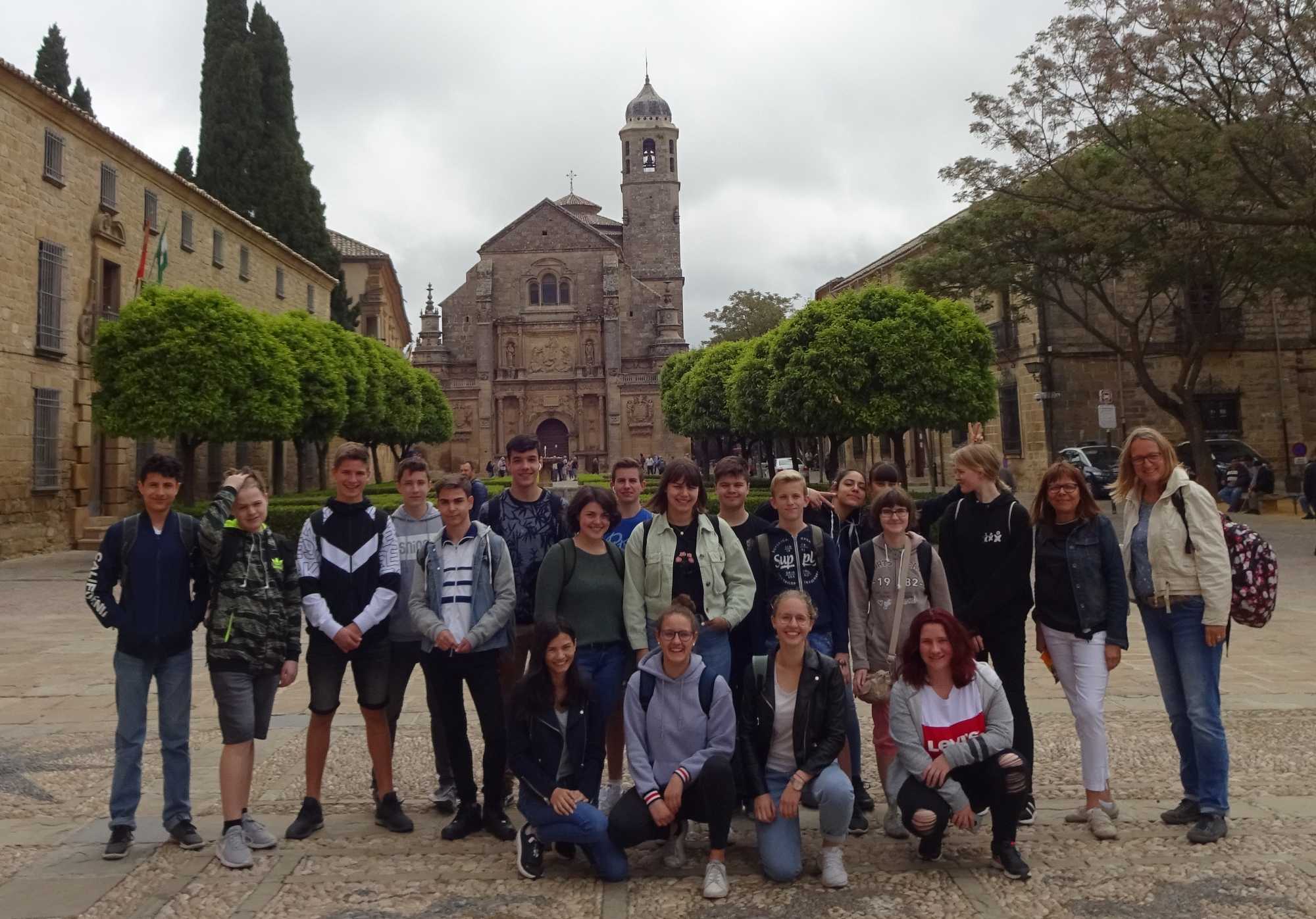 Nach langem Warten und Zählen von Tagen war die Zeit für uns deutsche Schüler gekommen, in die spanische Kultur einzutauchen, unsere Partner/innen endlich wieder zu sehen und mit ihnen das spanische Leben kennenzulernen. Wir waren gespannt auf die gemeinsame Zeit, die uns erwartete, und traten am 7. Mai 2019 unsere Reise an. Diese lief allerdings weniger spannend ab und zog sich fast über den gesamten Tag. Bis wir endlich in Úbeda angekommen waren, sprich ca. 12 Stunden später, wurden wir auch schon herzlich von unseren Gastfamilien und Austauschpartnern willkommen geheißen. Das Wiedersehen war so herzlich, dass es die lange und anstrengende Reise schnell vergessen ließ. Danach hieß es „Hola! España!“ und es ging entweder zu Fuß oder mit dem Auto in die Häuser und Wohnungen der Spanier. Der restliche Tag wurde ganz unterschiedlich abgeschlossen: Die einen trafen sich zum Eis essen und erkundeten die Stadt; andere blieben drinnen und hielten ein Nickerchen oder schauten einen Film. Jedenfalls ist wichtig anzumerken, dass es – egal wie der Tag noch verbracht wurde – sehr spät ins Bett ging, denn die Spanier sind sehr offen und locker, was die Zubettgeh-Zeit und das vorherige Nachtleben betrifft. An diese Veränderung haben wir uns aber sehr schnell angepasst.