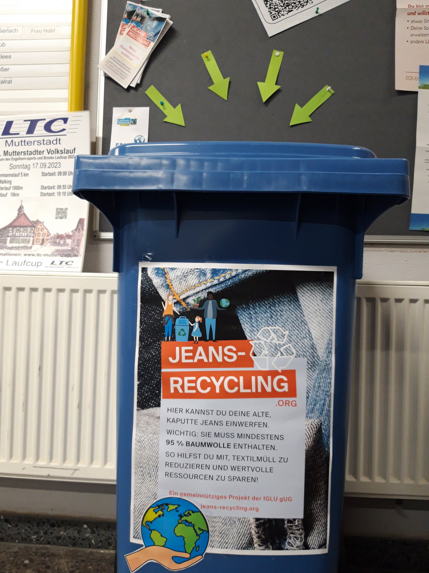„die Textilbranche ist die zweitschmutzigste weltweit. Besonders Jeans haben eine sehr schlechte Ökobilanz. Aufgrund ihres hohen Baumwollanteils ist die Jeans ein Recycling-Star! Das IGLU hat 2020 ein Pilotprojekt „Jeans-Recycling“ gestartet und Sammelstellen für Jeans eingerichtet. So wurden bisher rund 150t CO2 Emissionen eingespart. Hier die Erfolge im Detail www.jeans-recycling.org.“