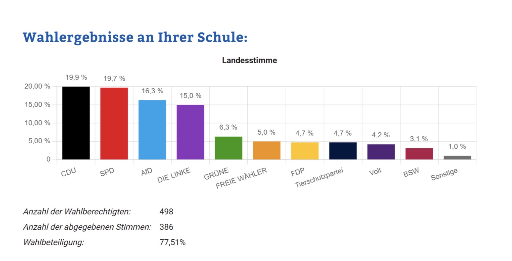 Die Juniorwahl war damit ein wichtiger Beitrag zur politischen Bildung und stärkt das Bewusstsein für Demokratie und Verantwortung.