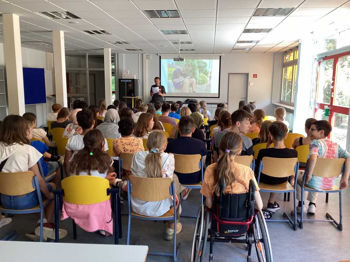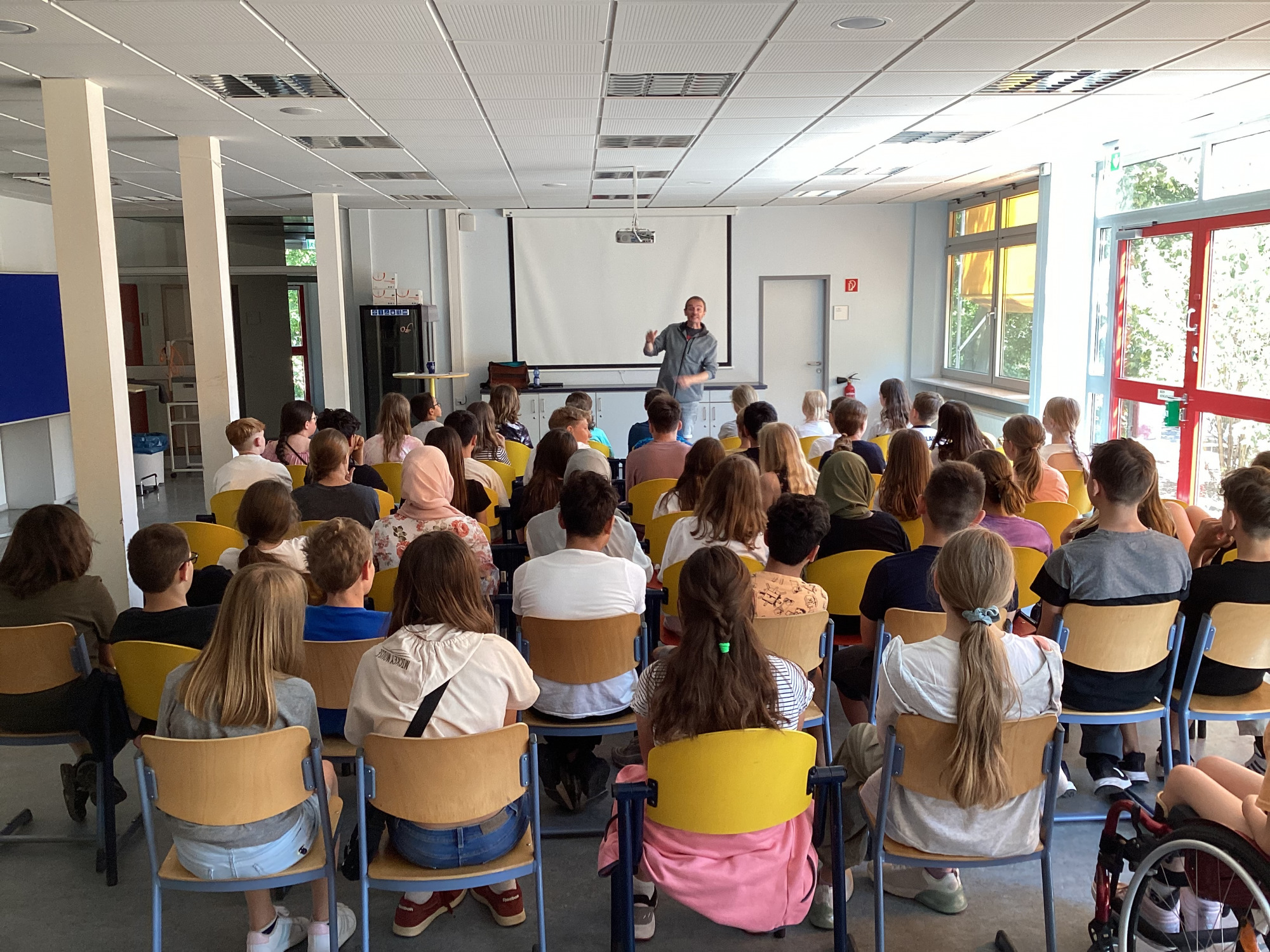 Heute reiste Herr Gemmel wieder exklusiv für unseren 6er Jahrgang aus Koblenz an und begeisterte wie schon die Jahre zuvor mit seiner energiegeladenen Lesung.