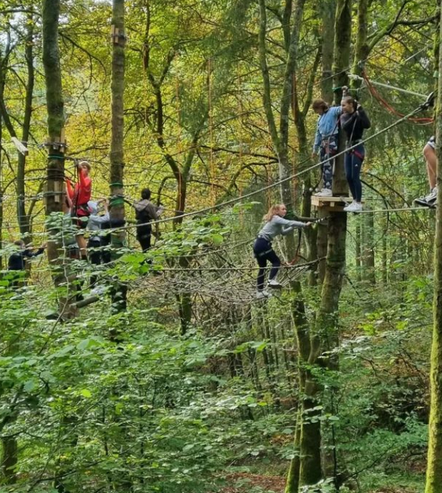 Die 7er testen ihre Fähigkeiten auf der Selbstversorger- bzw. Erlebnispädagogischen fünftägigen Klassenfahrt.