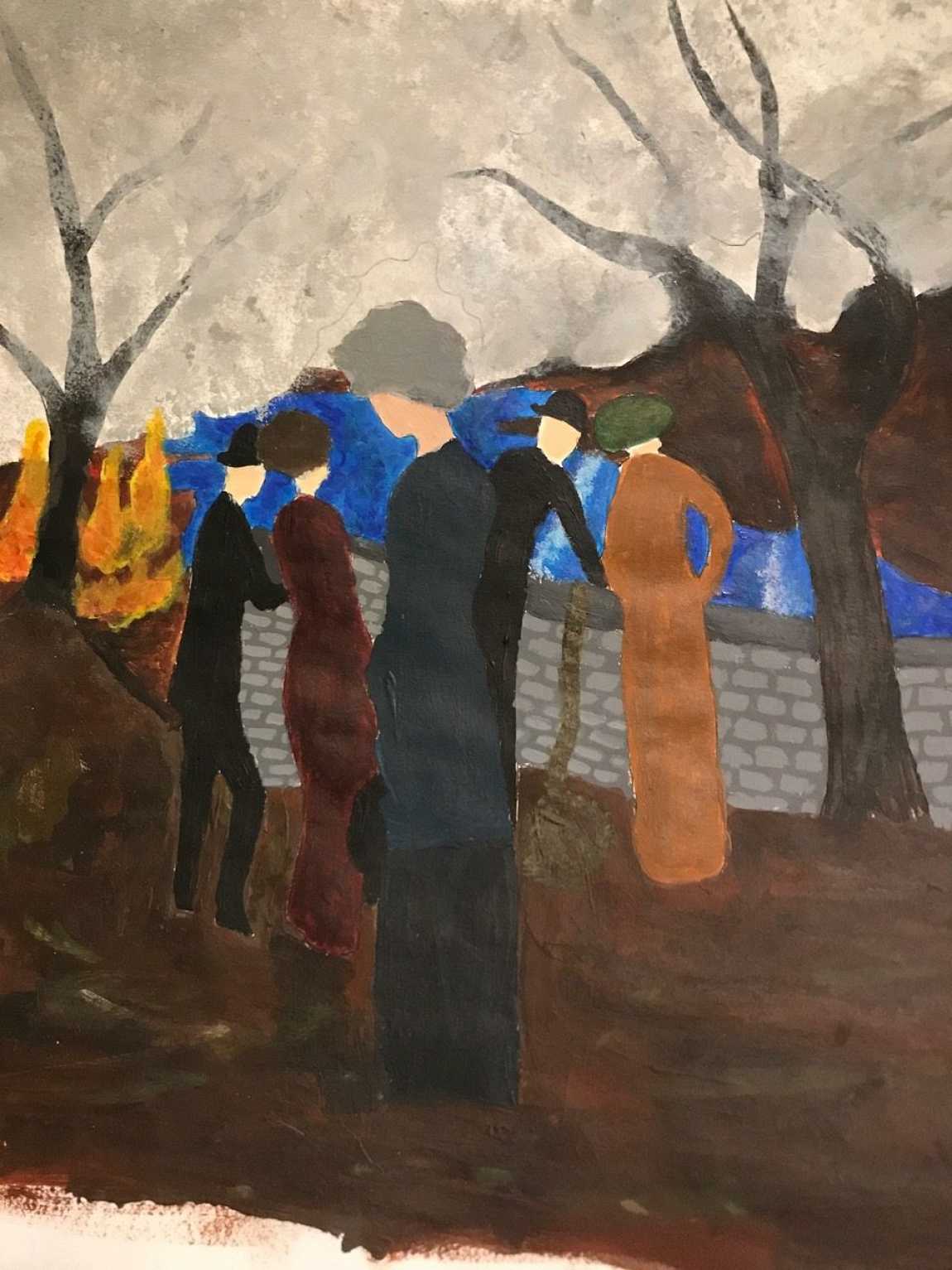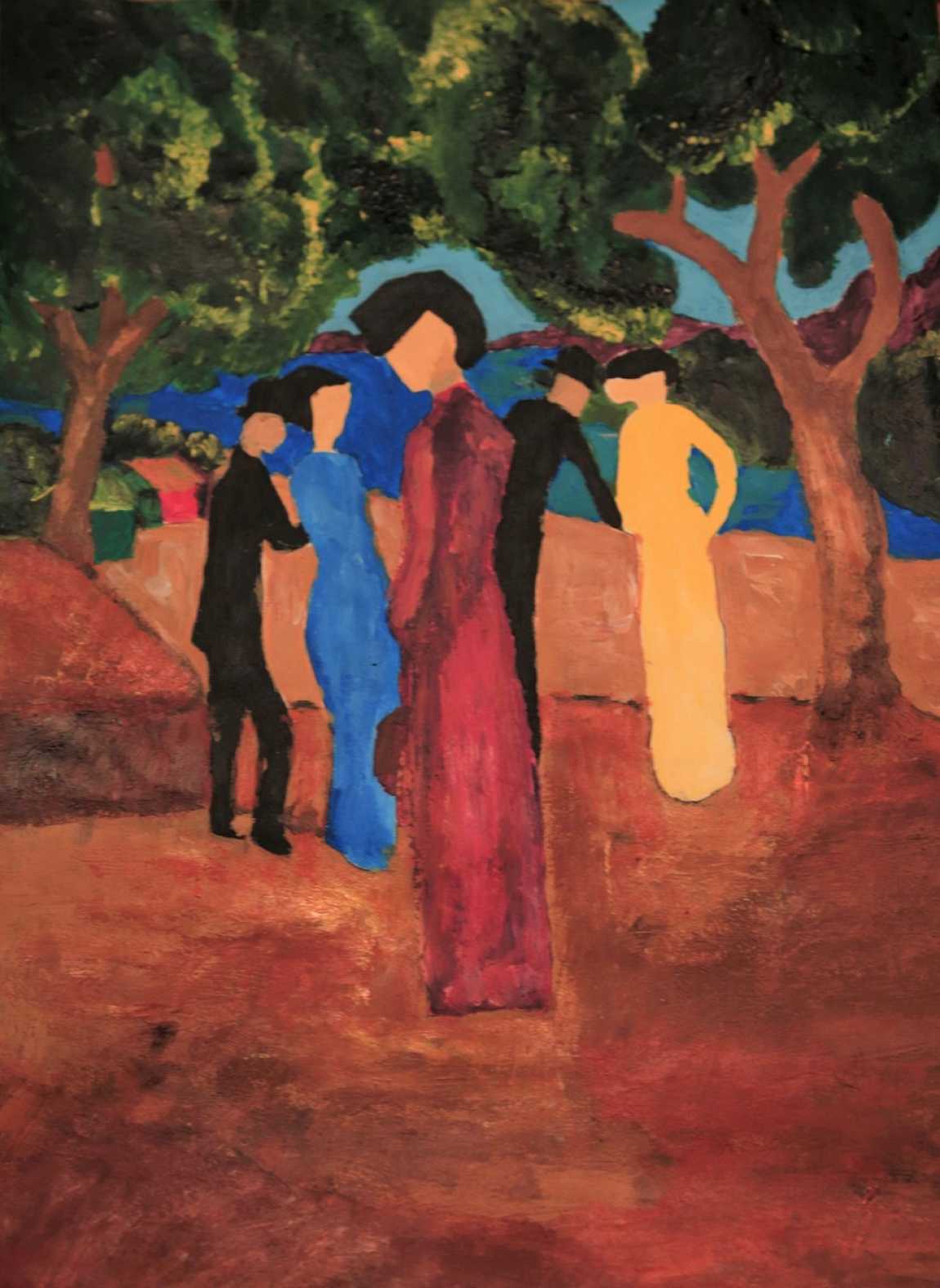 Die Künstler des Expressionismus versuchten mit ihren Farben und ihrem expressiven Farbauftrag ihre Gefühle zum Ausdruck zu bringen. Als Vorlage für die Arbeit diente ein Bild des Künstlers August Macke „Dame in grüner Jacke“. Nachdem jeder Mensch Dinge anders empfindet, kann bei ein und der selben Situation auch eine ganz andere Gefühlslage herrschen. Was glaubst du? Wie haben sich die Künstler hier gefühlt? Traurig, fröhlich, wütend, alleine?