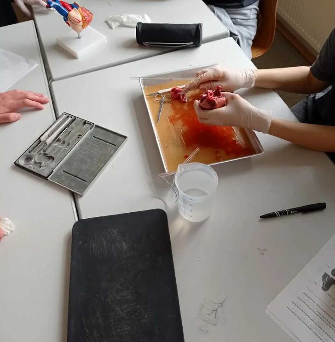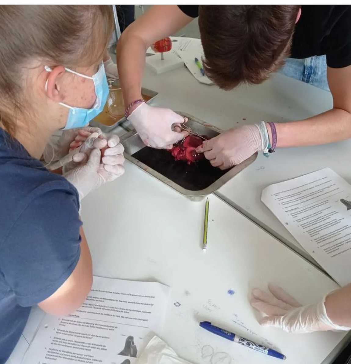 Der Bio LK 11 hat sich heute mit dem Bau und der Funktion von (Schweine-) Herzen beschäftigt. Anhand des Arbeitsplans war zu erledigen: Skizzen nach äußerer Betrachtung anzufertigen, Größe und Gewicht zu bestimmen, sowie Präparationsaufgaben zu Bestandteilen und Prüfung der Funktion mit Hilfe von Wasser und Trichtern. Die Modelle aus der Sammlung waren dabei eine große Hilfe. Die Schüler*innen haben in vier Gruppen gearbeitet. Einige Ergebnisse zeigen die Fotos!