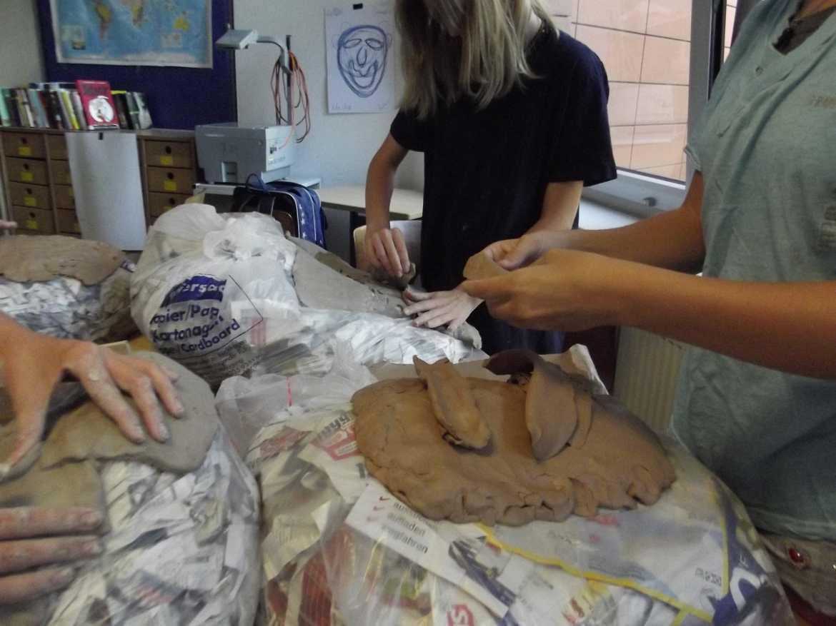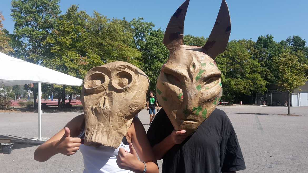 DS-(Darstellendes Spiel)-Lehrer wie Herr Otte, Frau Staenglen und weitere Helfer leiten das Projekt „Masken“ sehr hilfsbereit und freundlich. Die Schülerinnen und Schüler gehen begeistert, mit viel Fantasie und eigener Vorstellungskraft an die Masken heran. Mit Ton, Plastiktüten, Zeitungspapier, Tonschneidern und kaschiertem Papier bereiten sie eine Maskenausstellung und einen Maskenauftritt für den Festakt am Samstag, dem 25.08.2018, vor. Herr Otte, der so etwas gerne in seiner eigenen Freizeit macht, führt ein solches Projekt nicht zum ersten Mal durch.