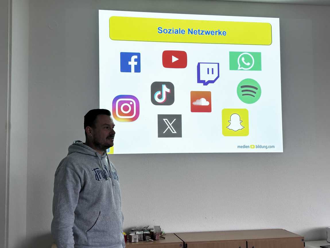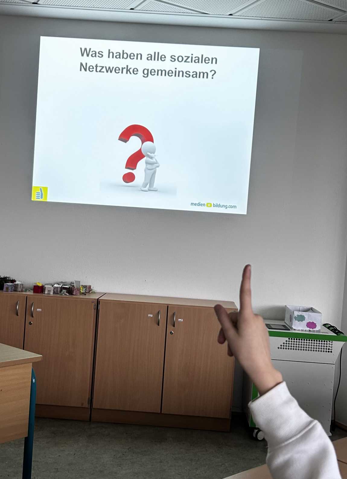 Mit den Kindern sprach Herr Kuhn über verschiedene soziale Netzwerke, deren Gemeinsamkeiten sowie über wichtige Aspekte des Datenschutzes. Ein besonderer Fokus lag auf möglichen Gefahren im Netz und der Frage, wer sich hinter Profilen verbergen kann. Durch einen offenen Austausch konnten die Schülerinnen und Schüler eigene Erfahrungen einbringen und Fragen stellen.