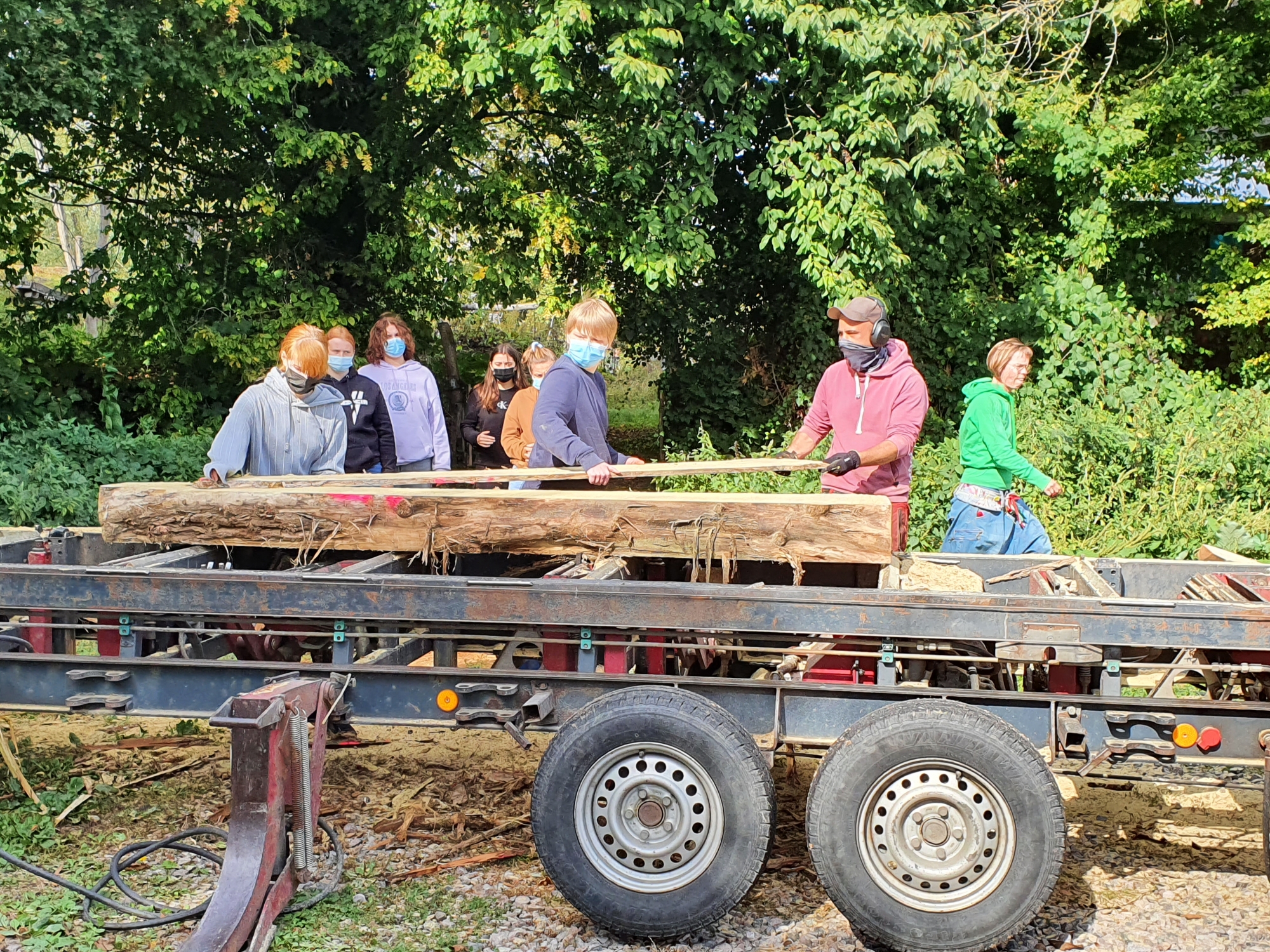 Die Schüler haben am mobilen Sägewerk geholfen, die Bretter für unser Gartenprojekt zu sägen. Ein weiterer Schritt auf dem Weg zum neuen Schulgarten.