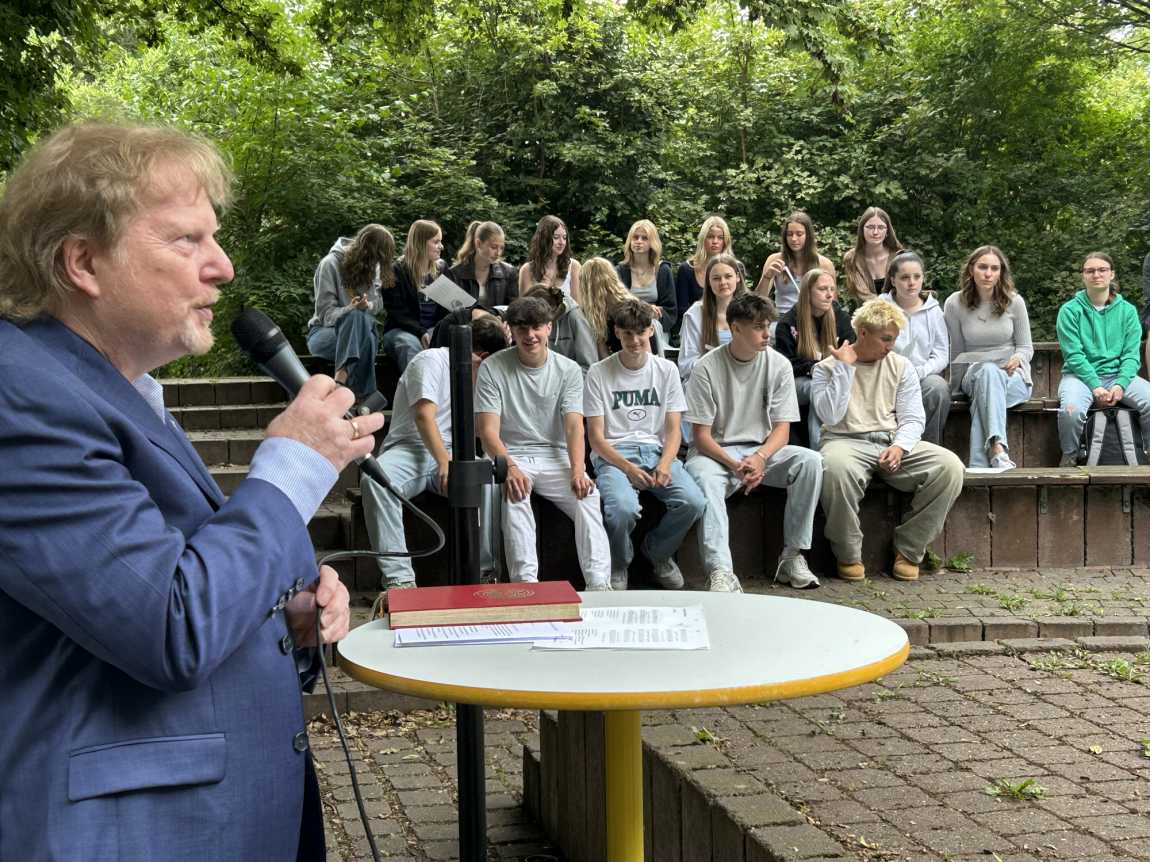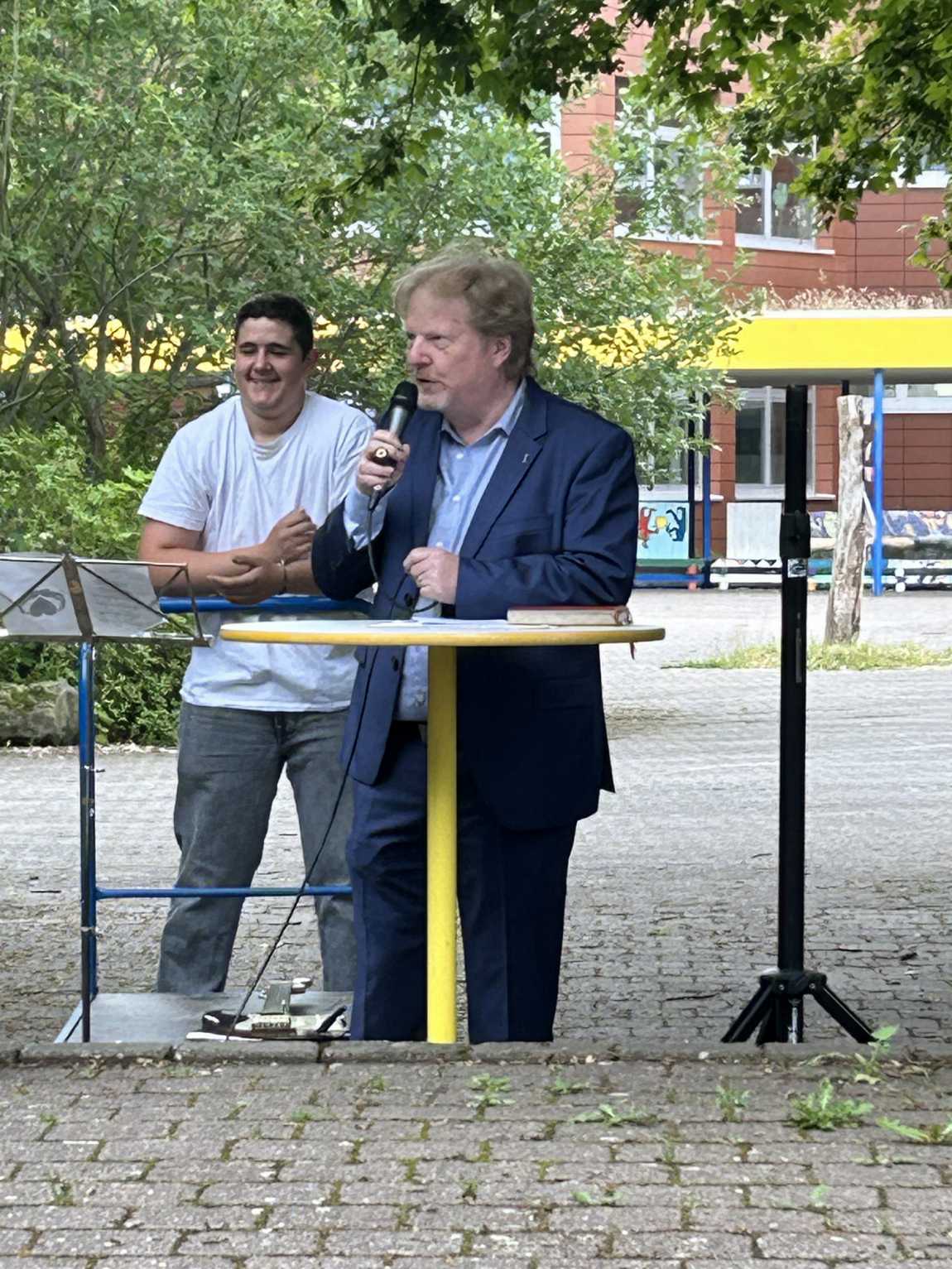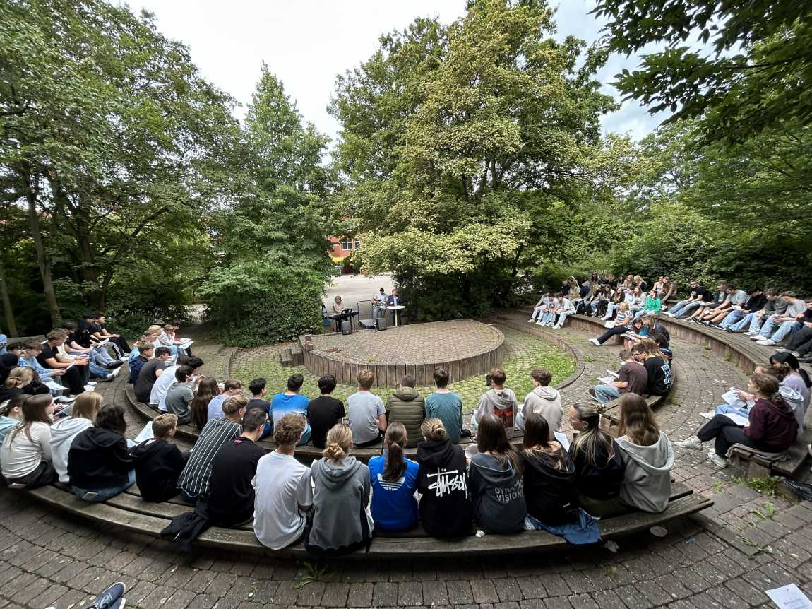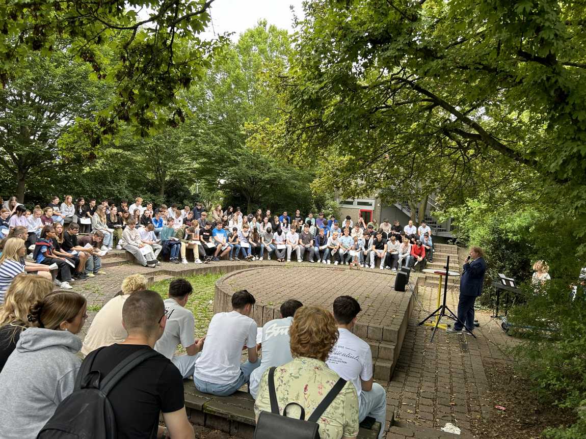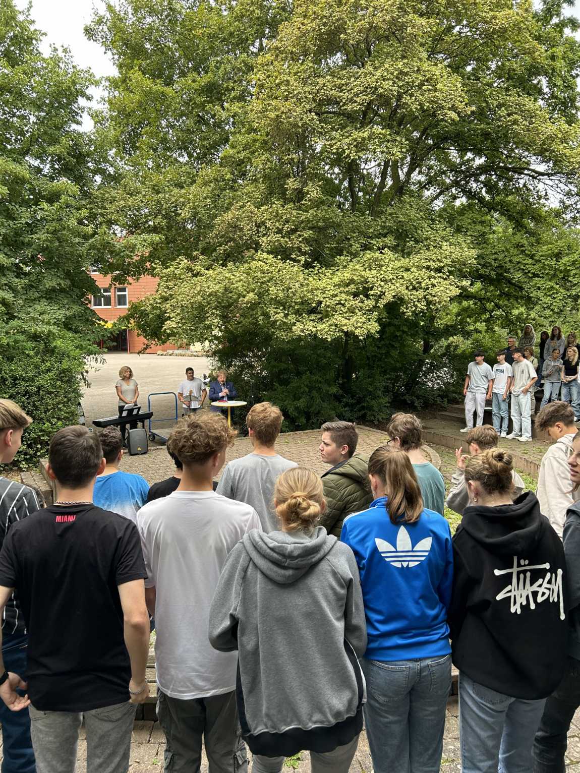 Vielen Dank an Kirchenrat Thomas Niederberger, der sich heute für unsere 9er und 10er die Zeit für einen Mundartgottesdienst genommen hat. Unter freiem Himmel sprach er zum Thema Barmherzigkeit, Krieg und Frieden und den Umgang miteinander.